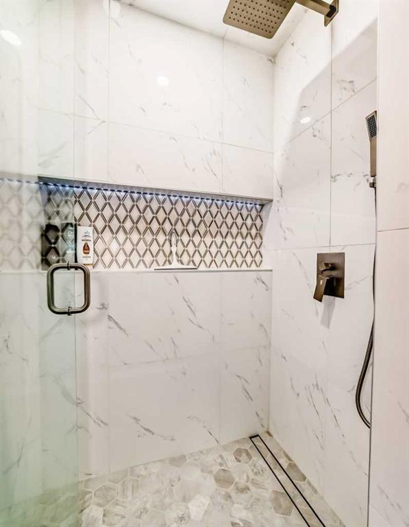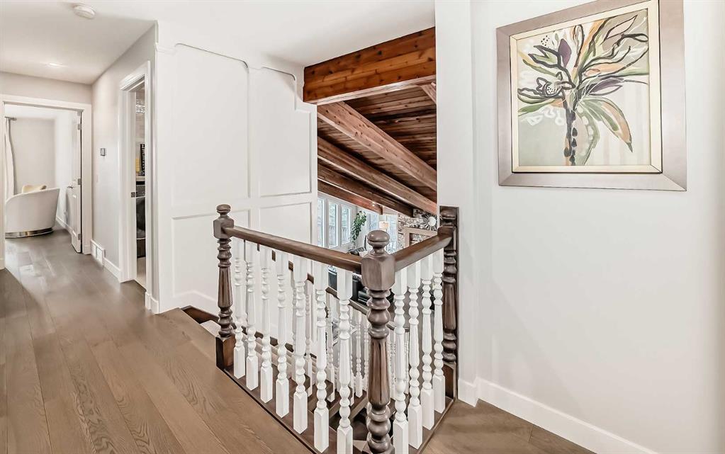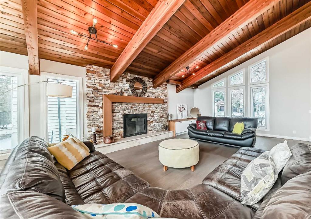 Fully renovated 3140sqft 2-storey split walkout in Patterson Estates - w triple attached garage on a 10,000sqft pie lot. This home is both elegant and majestic with large principal rooms: vaulted with exposed wood beams / circular staircase / flat finished ceilings / 3/4" engineered oak flooring / two wood burning fireplaces / white oak accents / and exquisite tile work throughout. The main floor alone is 2000sqft. There are a total of 5 bedrooms, 3 full and 1 half bath, 2 laundry rooms, and main floor den. This was a renovation down to the studs with all new plumbing, new electrical, new windows, new kitchen, new baths, new flooring, and new lighting. Spotless and impeccable. Kitchen and dining features gloss white cabinets, feature glass wall, 6 burner gas cooktop, 2 built in ovens, built-in microwave, and wine fridge. The walk-out basement is enormous with undending options for media and recreation plus ample storage and work space. Triple car garage, rubber tile roof, 3 furnaces (thermostats for each level), large yards, balcony/decks on all 3 levels. Well worth viewing! 56 Patterson Crescent SW.