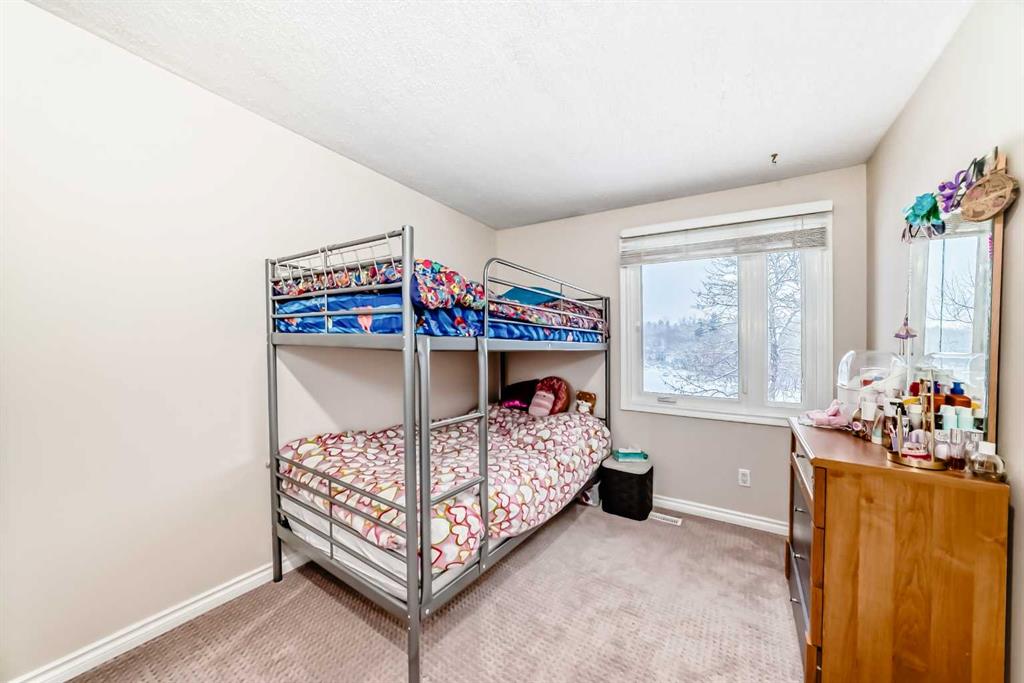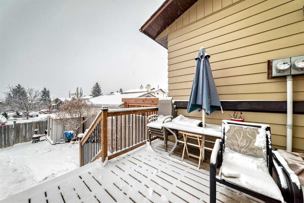 Situated in the heart of prestigious Strathcona Park, this inviting 2-storey home offers over 1,400 sq ft of developed living space and exceptional value for growing families. Ideally located in a playground zone and directly across from the Strathcona ravine and pathway system, as well as baseball diamonds and soccer fields, this home blends lifestyle and location. A large front veranda enhances the home’s curb appeal and warmly welcomes you inside. The bright and spacious main level features a functional open layout, highlighted by a kitchen complete with stainless steel appliances, full-height custom maple cabinetry, tile flooring, and a generous dining nook. The adjacent family room showcases bamboo flooring and a cozy wood-burning fireplace, framed by two large windows that flood the space with natural light. This level is finished with a 2-piece powder room and sliding patio doors leading to the rear deck and backyard, offering partial city views. Upstairs, you’ll find three well-sized bedrooms, including a primary retreat with a walk-in closet, along with a full 4-piece bathroom. The professionally developed lower level provides a comfortable media room and convenient laundry area, adding flexible living space. Walking distance to schools and transit, with a short commute to downtown, major amenities, and the mountains, this is an outstanding opportunity to live in one of Calgary’s most sought-after west-side communities.