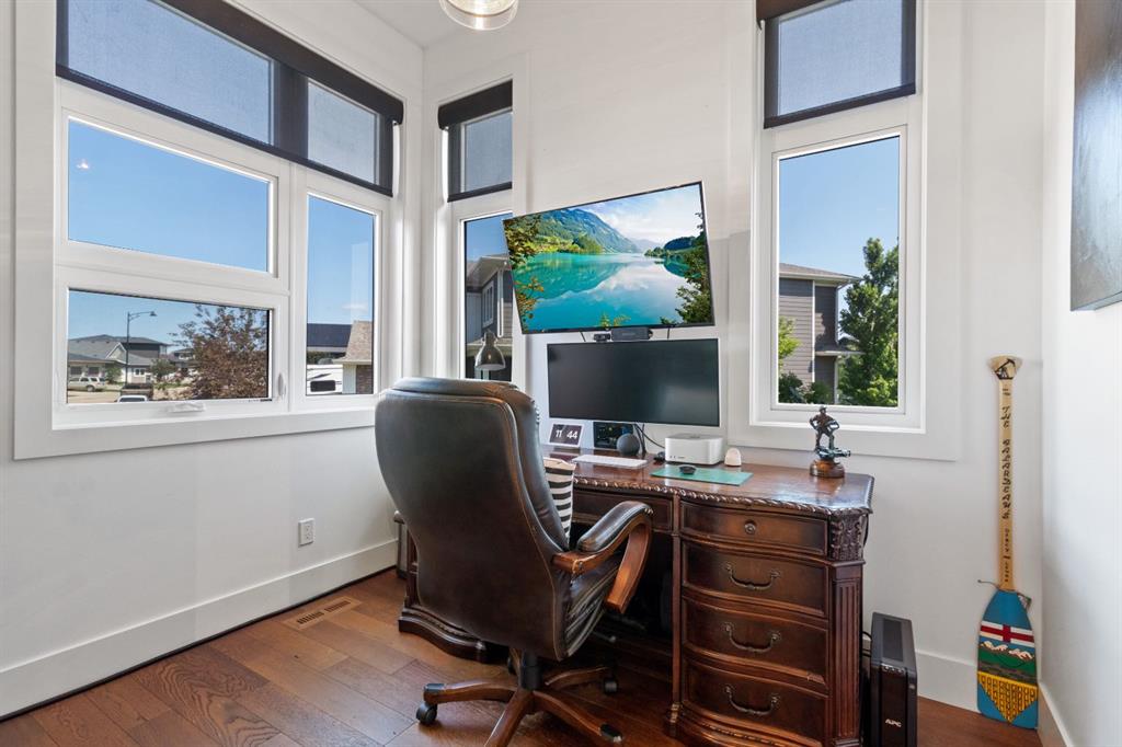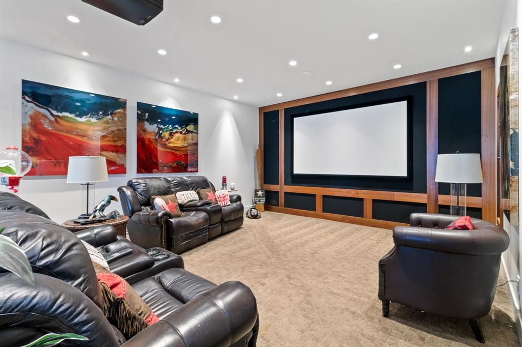 Step into this extraordinary award winning home located in beautiful Laredo. Meticulously designed and impeccably maintained, this home offers a lifestyle of unparalleled elegance and sophistication and grandeur with a grand foyer, soaring ceilings, expansive windows, and exquisite architectural details that redefine luxury living. A chef's dream awaits with a state-of-the-art kitchen equipped with top-of-the-line appliances, custom cabinetry (including all brand new custom cabinetry in butlers pantry and garage) and a large island for culinary creativity. Bask in natural light and scenic views from your elegant enclosed 3-season sunroom, an inviting space designed to be enjoyed from spring through fall, heated by gas fireplace and radiant heat. Whether savoring morning coffee or hosting afternoon gatherings, this sunroom provides a serene retreat. Expansive and serene, the master bedroom offers a retreat within your home, perfect for relaxation and unwinding after a long day. Enjoy the privacy and comfort of a beautifully appointed ensuite bathroom featuring double vanity, soaking tub, and double custom shower. Step into the walk-in closet of your dreams, meticulously designed to accommodate everything you need. Beyond traditional luxury, this home features a unique "super floor" design with a stunning catwalk, offering a lifestyle of sophistication and elegance and hosts two additional bedrooms, a full bath and a den. Experience the thrill of cinematic entertainment in your private home theatre, outfitted with premium audio-visual technology for movie nights like no other. The bar area seamlessly transitions into a versatile entertainment zone, ideal for a game room setup with pool tables, dart boards, or other gaming options, ensuring endless hours of fun and relaxation. Enjoy the excitement of multiple entertainment options with four strategically placed TV screens, allowing you to watch multiple games, movies, or shows simultaneously. Ideal for sports enthusiasts and movie buffs alike! Host unforgettable gatherings while enjoying the fresh air and beautiful surroundings, relax by the tranquil ponds, where the soothing sounds of water create a peaceful ambiance perfect for unwinding after a long day. Embrace luxury living with this exceptional property offering extensive landscaping with integrated landscape lighting, retaining walls, ponds, and entertain in style with a fully equipped custom outdoor kitchen featuring a built-in grill, sink, and ample counter space. Additions not to be missed ~ hobby room in basement with built in shelving ~ A/C ~ professionally built retaining wall at front of home ~ Motorized awnings for upper, lower deck as well as outdoor kitchen ~ Lutron Home Automation system - lights, blinds, water sensors and main water shut off ~ LED Roofline lighting ~ Upgraded rubber rock surfaces ~ RO drinking station ~ This property shows 10/10 in all aspects.