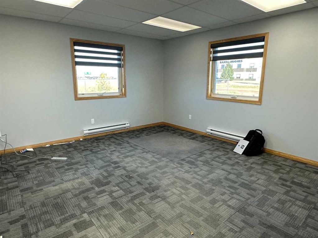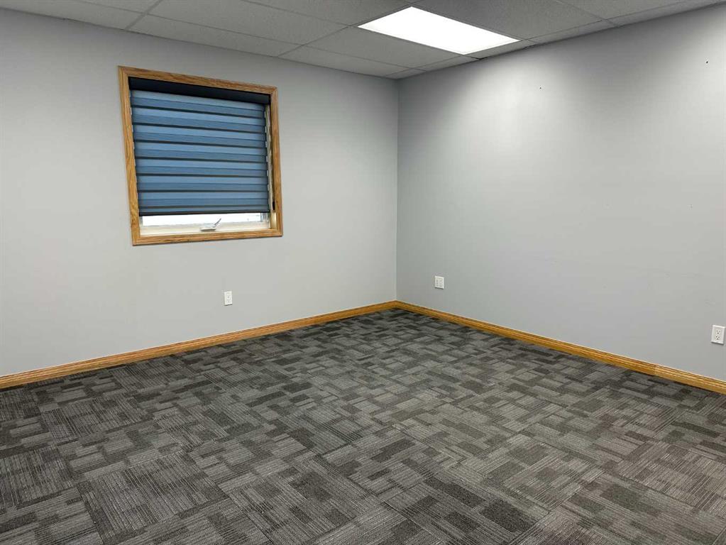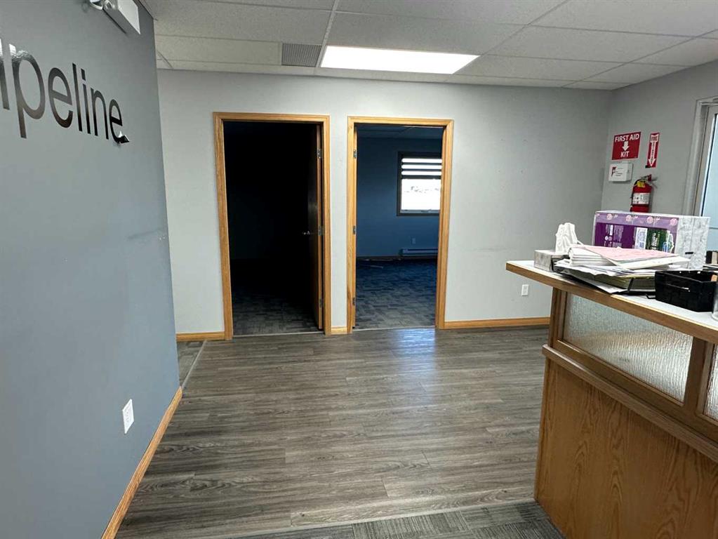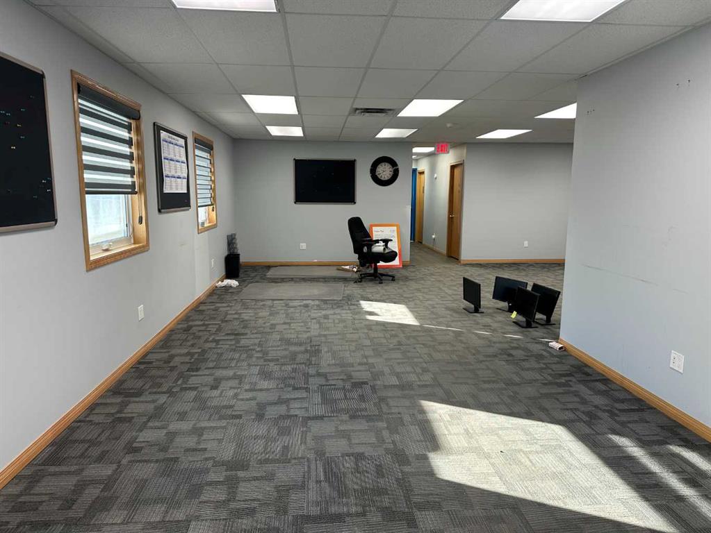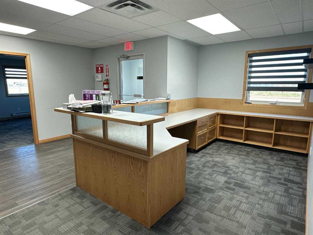 Set on a full acre in Taber’s Eureka Industrial Area, this 2015-built property is available for lease. Designed for businesses that want office space with just the right amount of shop capacity. The fenced lot offers secure yard storage and plenty of parking, while the low-maintenance metal-and-brick exterior and metal roof keep upkeep to a minimum. At the front, a reception area gives you a clean, professional place to welcome clients. Behind it, a storage room keeps supplies tucked out of sight. Two windowed offices face the hall, with two more enclosed rooms that can be set up as offices, records storage, or flex space depending on how you run your operation. Down the hall from there, a large open bullpen area is ready for cubicles, drafting tables, or workstations. Across the hall, a well-sized boardroom offers space for meetings, safety briefings, or client presentations. There’s also a kitchen/lunchroom that makes longer workdays a little more comfortable. Continue toward the back, where you’ll find two restrooms and then the shop area—about 1,357 sq. ft. of radiant-heated bay space with a 9’6” overhead door. If this space is for you, call your commercially licensed realtor today!