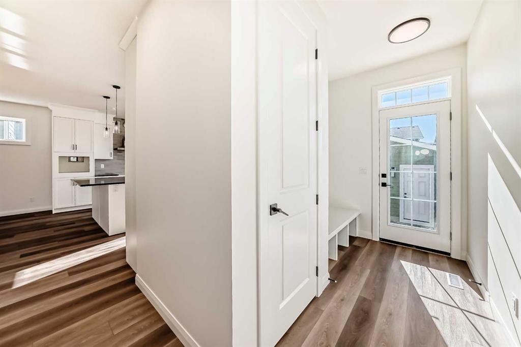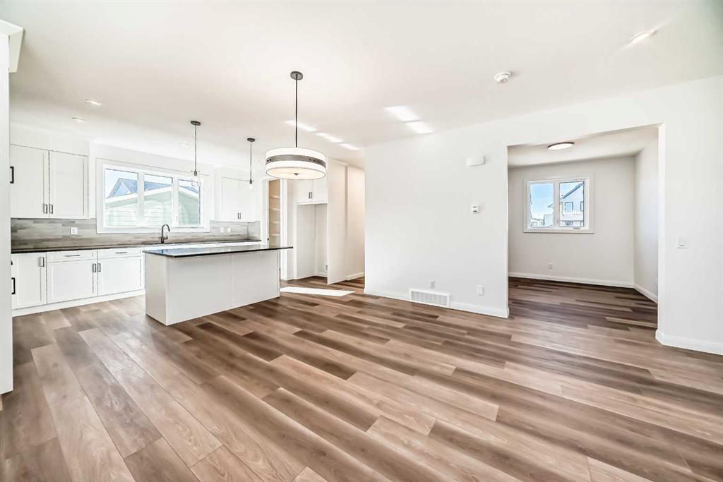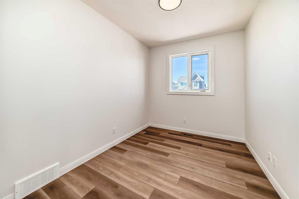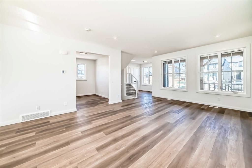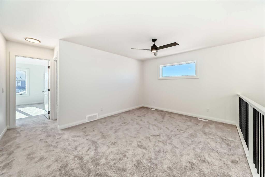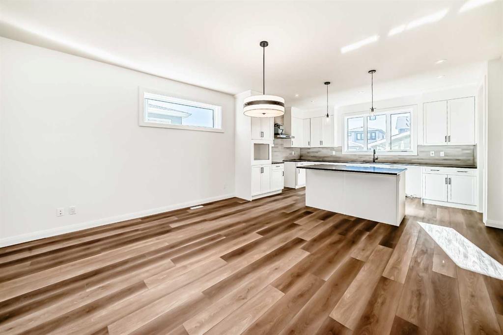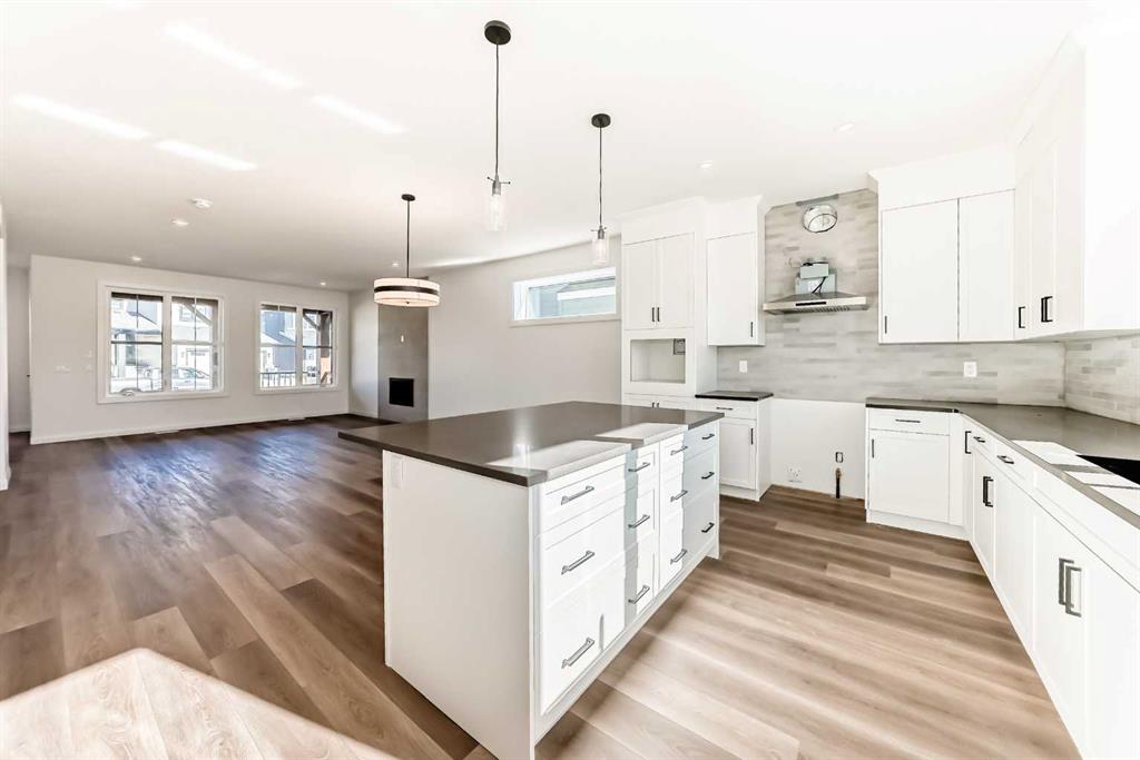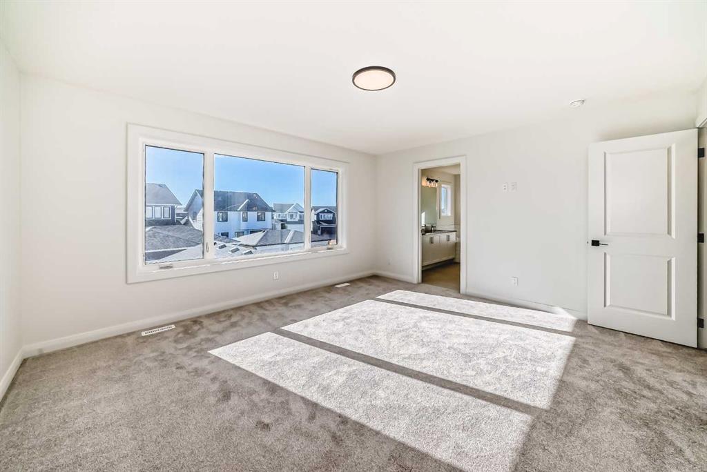 Contemporary sophistication meets everyday living in this 2,359 sq. ft. home in Harmony. The three-bedroom, two-and-a-half-bath layout is thoughtfully planned and finished with elevated interior selections. A generous main-floor office supports work-from-home days, while the living room is anchored by a stylish gas fireplace. The bright white kitchen and dining area flow together for effortless entertaining. Quality finishes run throughout, with a stainless-steel appliance package that includes a gas range, dishwasher, hood fan, and built-in microwave. Upstairs, a versatile bonus room makes a perfect media lounge or play area. The primary suite is a true retreat, complete with a spa-inspired ensuite featuring a beautiful walk-in shower and a large walk-in closet. Convenience continues in the dedicated laundry room with upper cabinetry and a folding counter above the washer and dryer. The unfinished basement is a blank canvas for additional living space and is roughed-in for a future bathroom. Outdoor details include an exposed-aggregate walkway and a stamped-concrete front entry. Parking and storage are easy with the oversized 24' x 22' double garage with large 18x8' door. Extras include: 200 AMP Service, 2 stage furnace, 9' basement ceiling height, Granite counters, and a fibre glass front door. Set within Harmony, one of the most sought-after lake communities, you are just minutes from parks, pathways, golf, lakes, and quick mountain access.