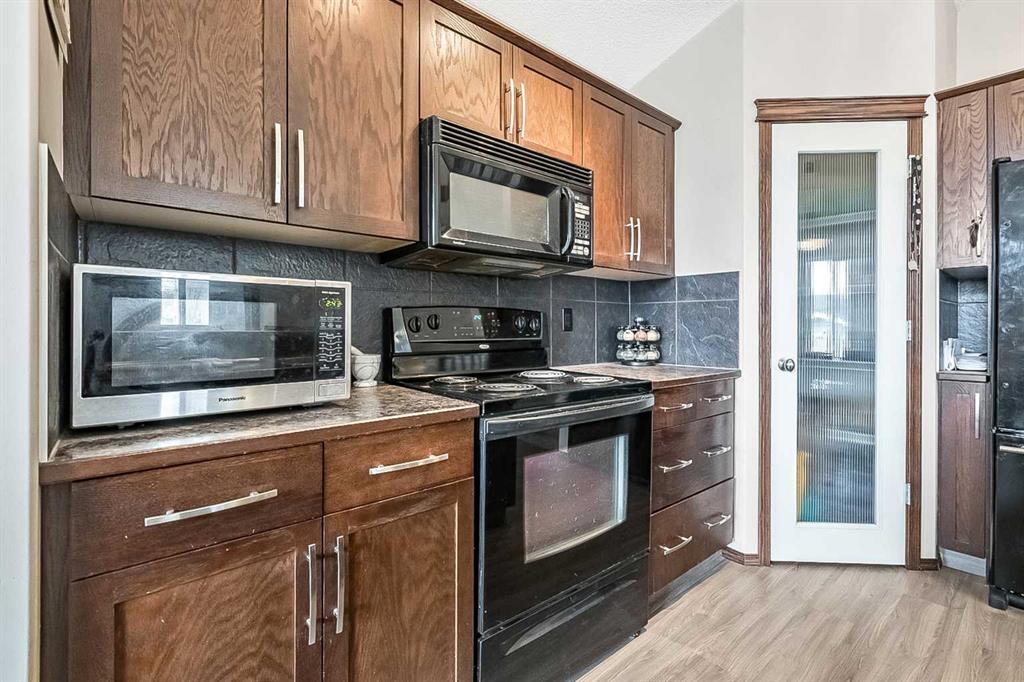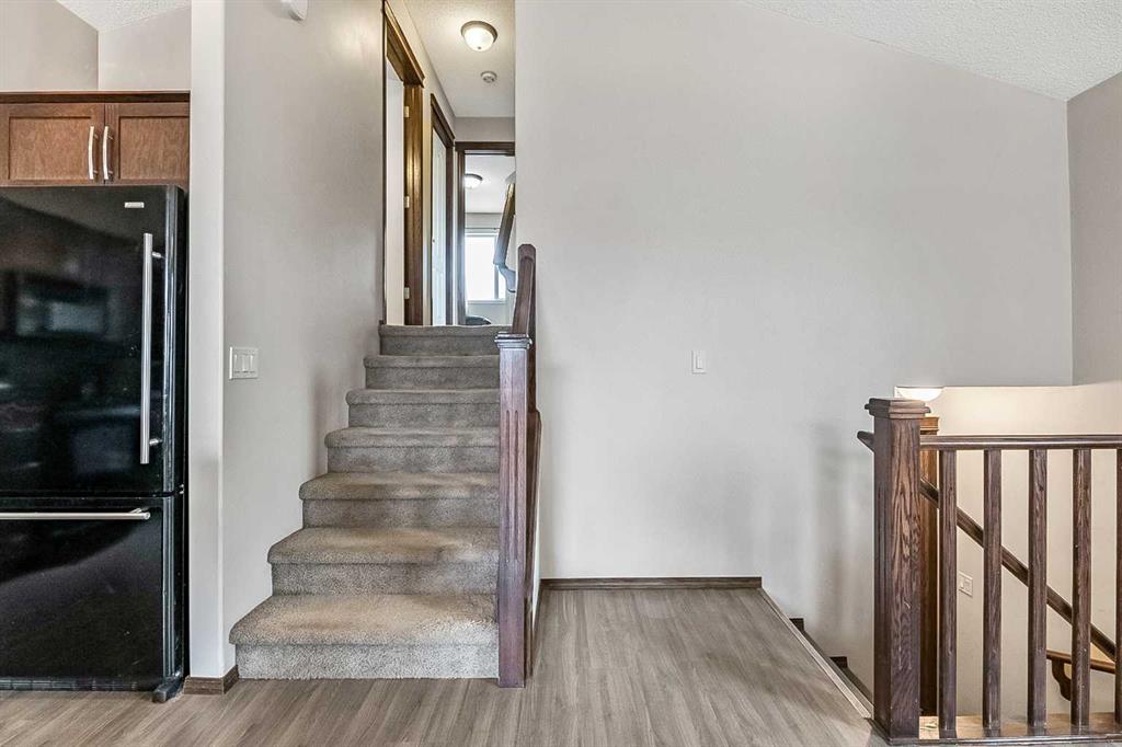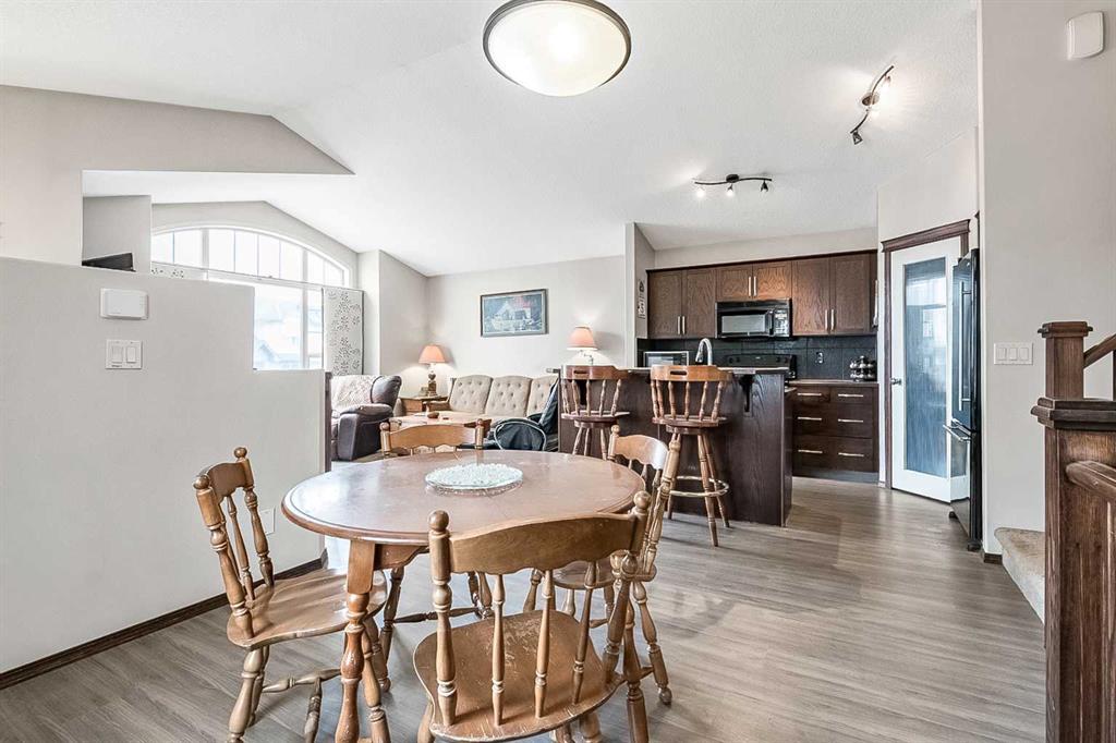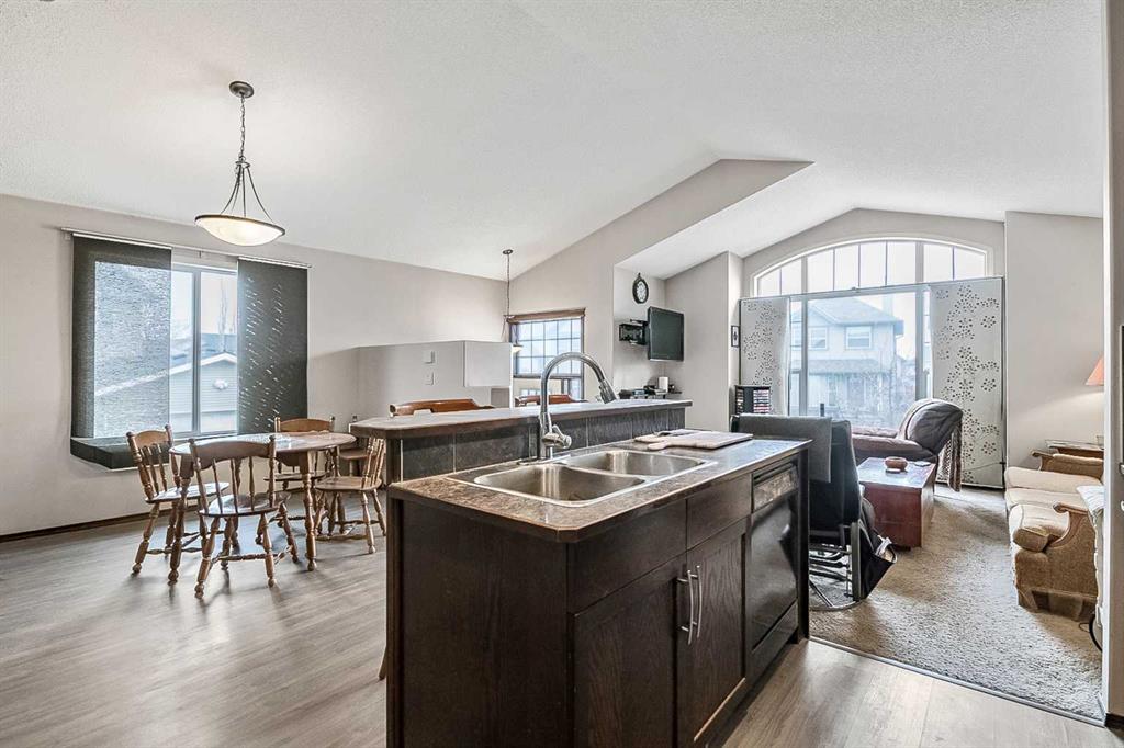Wonderful starter home in the sought-after Cranston community! This well-designed 4-level split offers a bright, open-concept main floor with vaulted ceilings that create an airy and inviting atmosphere. The kitchen features newer laminate flooring, a functional island, corner pantry, and rich mocha cabinetry, seamlessly flowing into the dining and living areas—perfect for everyday living and entertaining. Upstairs, you’ll find a spacious primary bedroom complete with a walk-in closet and private ensuite, along with a second bedroom and an additional full bathroom. The walk-out third level provides an excellent opportunity for future development, allowing you to customize the space to suit your needs. The basement level includes a partially completed bedroom and bathroom, offering even more potential. Outside, the backyard offers room for parking and is partially fenced. Conveniently located close to schools, parks, and all amenities, this home is an ideal opportunity for first-time buyers or investors alike.