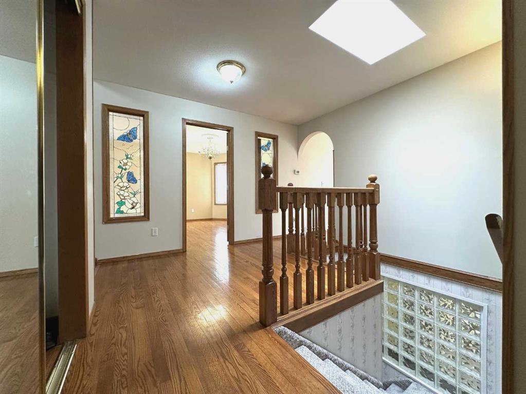 Walkout Bungalow in Edgemont with a Legal Secondary Suite! Welcome to this well-maintained, custom-built walkout bungalow, ideally situated on a quiet crescent in the highly desirable community of Edgemont. Offering over 2,700 sq. ft. of developed living space, this 5-bedroom home provides exceptional flexibility for families or multi-generational living. The bright main floor features extensive hardwood flooring, a formal living and dining area with bay windows, and elegant French doors. The spacious oak kitchen, complete with a central island, flows into a sun-filled breakfast nook with direct access to a south-facing balcony—perfect for enjoying your morning coffee. This level includes two bedrooms, highlighted by a generous primary suite featuring a walk-in closet and a jetted tub ensuite. The fully developed walkout basement is a legal suite, boasting 9-ft ceilings, in-floor heating, three additional bedrooms, a large living/recreation area with a pellet stove, a kitchen, and separate laundry—an excellent mortgage helper or private guest space. Set on a pie-shaped lot, the backyard offers a perfect blend of functionality and outdoor enjoyment with garden beds, a brick patio, and a playhouse. Additional Features: New Roof (2024), All Poly-B Replaced (2021), Oversized 24’ x 24’ double garage, Water filtration & underground sprinkler systems. Conveniently located just minutes from Nose Hill Park, top-rated schools, shopping, and transit. A rare opportunity to own a walkout bungalow with incredible income potential in one of NW Calgary’s most established communities!