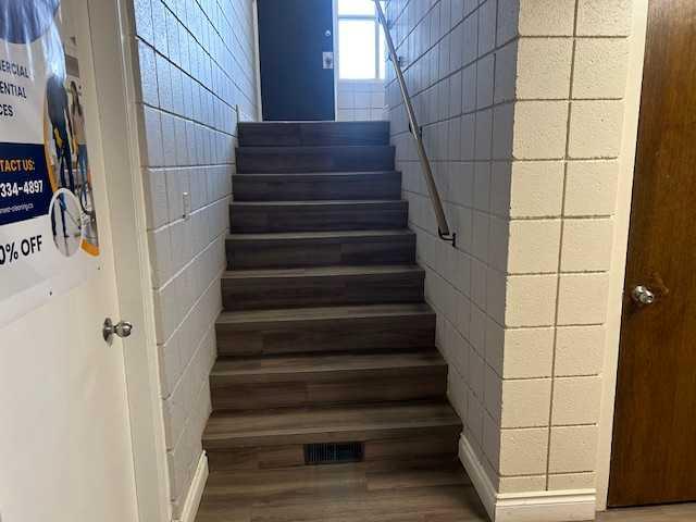 Comfortable office space or small business outlet. Friendly reception area with a built in reception desk and drawers etc. Corner kitchen with sink and bar fridge space. 3 separate offices have glass block windows. A storage room may be available to a longer term tenant. Ladies and mens bathrooms are in the common hallway area. Ample street and private parking areas for common tenat use.