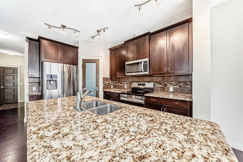 Welcome to this beautifully designed 4-bedroom, 3.5-bath with finished basement with no condo fees semi-detached home . The light-filled main floor boasts a den, an open-concept layout with a spacious living room, kitchen, dining area, and a half bath—ideal for both entertaining and daily living. All appliances are included (fridge, stove, dishwasher, microwave, washer, dryer). Curb appeal shines with a poured concrete driveway and an attached garage. Comfort and convenience continue with a fully fenced backyard leading to the back alley-perfect for summer gatherings. The upper level features a private master retreat with a walk-in closet and luxurious ensuite bath. Two additional bedrooms, a full bath, and a bonus room—perfect for kids or guests and the laundry room complete this floor. The fully finished basement includes a 1-bedroom, 1- full bathroom with a separate walkout entrance and a large recreational room—an ideal private space for extended family. You're just minutes from parks, schools, shopping, major roadways, YYC Airport, and CrossIron Mills, and surrounded by walking paths and natural green spaces, this home offers both convenience and a peaceful lifestyle. Call today!!