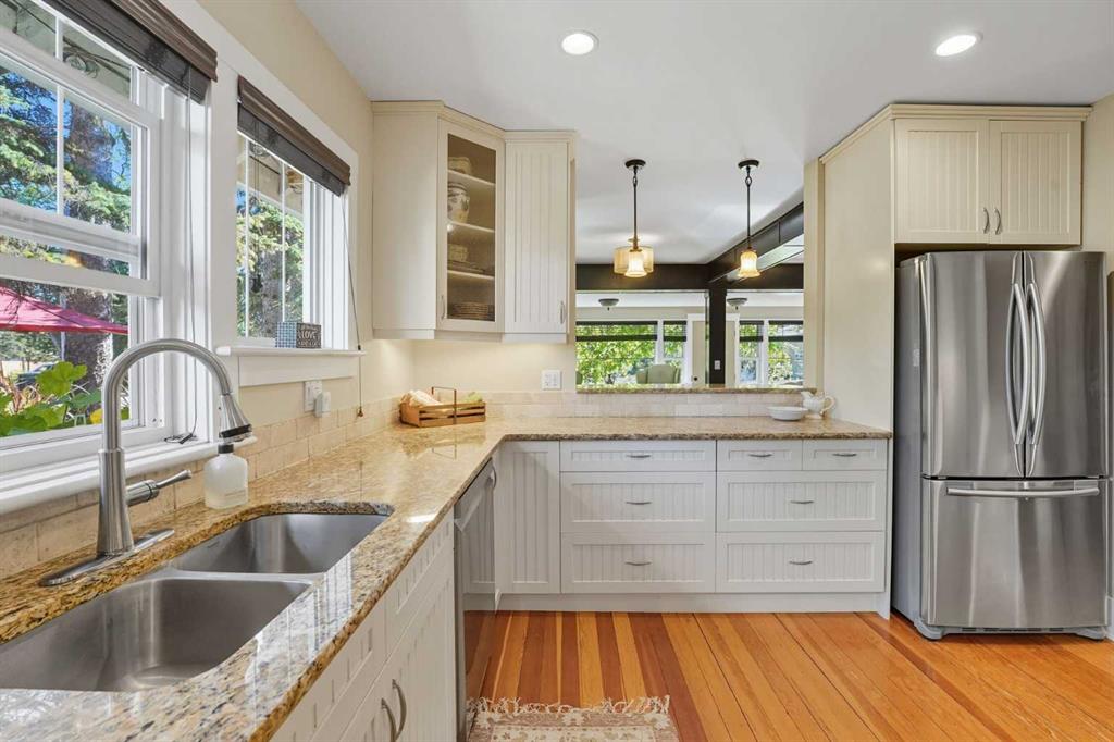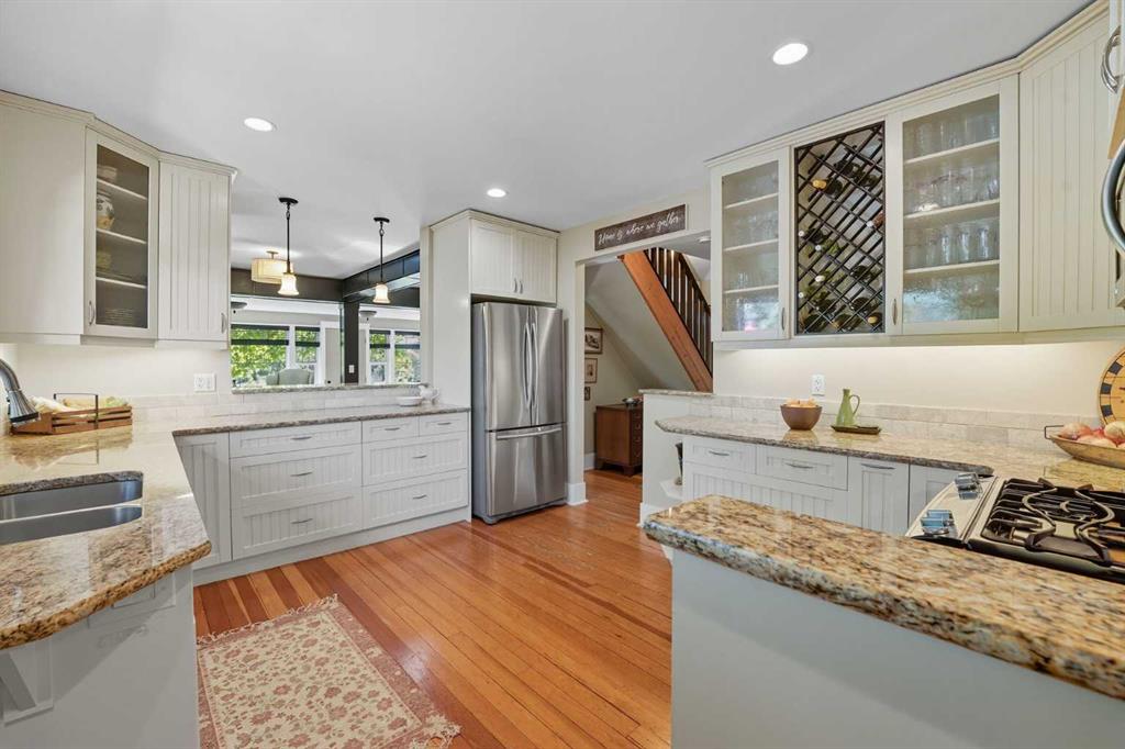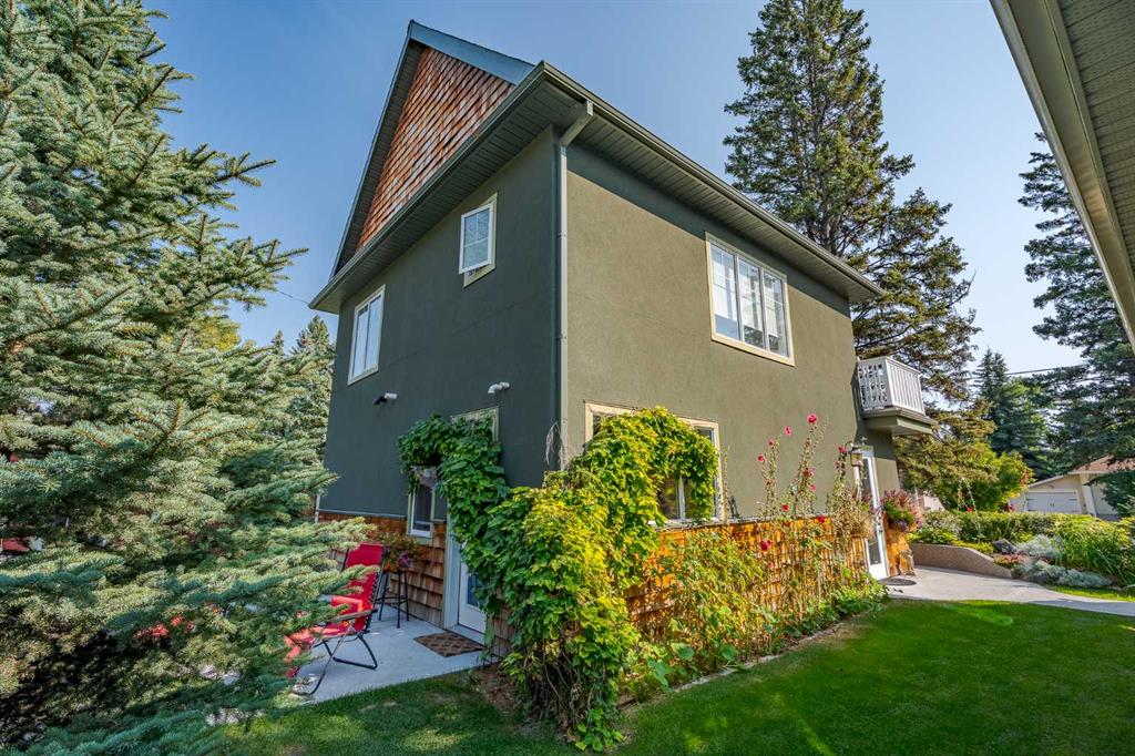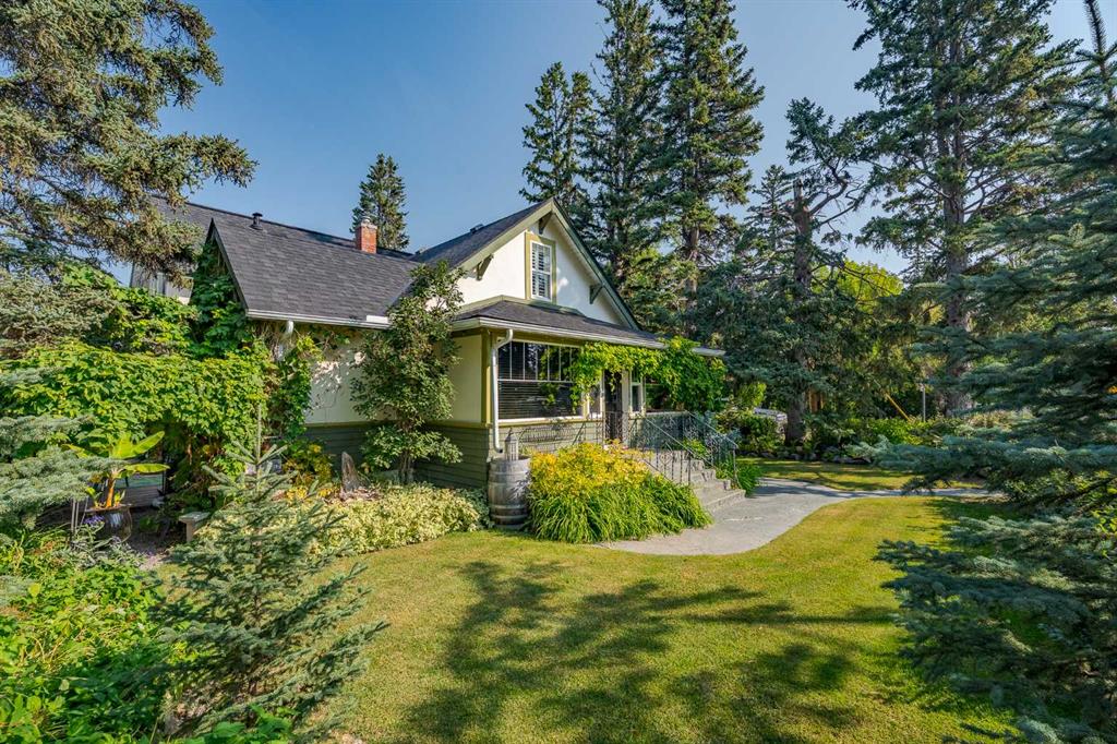 Welcome to one of High River’s most iconic homes-a timeless 1940 Craftsman-style beauty nestled on a rare double corner lot. Just a short stroll from the charming downtown, this heritage property has been THOUGHTFULLY & EXTENSIVELY RENOVATED, with a substantial addition completed in 2021 that blends seamlessly with the original architecture. With OVER 4,100 SQ FT OF DEVELOPED LIVING SPACE, this home offers the perfect balance of historic character & modern comfort. At the heart of the home, you’ll find a custom-designed kitchen surrounded by rich millwork, exposed brick, & sun-filled living spaces. The cozy living room, complete with a gas fireplace & period-inspired detailing, invites you to unwind & enjoy the character that only a home of this vintage can offer. One of the most remarkable features of the addition is the use of 120 year-old Douglas Fir hardwood flooring, sourced to blend perfectly with the original hardwood-a detail that speaks to the exceptional craftsmanship & care taken in every element of this renovation. The home features 3 bedrooms and 4.5 beautifully finished bathrooms. The primary bedroom is a true retreat, offering peaceful views & convenient access to the back of the property. The ensuite is luxurious & functional, with heated tile floors, a double vanity & a large tiled walk-in shower. Off the generous walk-in closet, you'll find a conveniently located laundry area. A standout feature is the expansive loft space, with soaring vaulted ceilings, offering endless potential—whether used as additional bedrooms, a home office, or private gym. The fully developed basement includes another inviting living area, a wet bar for entertaining, a second gas fireplace, & ample room to relax or host guests. NOTABLE UPGRADES: ALL NEW PLUMBING, ELECTRICAL, WINDOWS, INSULATION, ROOF, FURNACES AND HOT WATER TANKS. Outside, the property truly shines. Mature trees, lush gardens, & curated landscaping create a sense of privacy & peace, like your own private park. A heated koi pond adds a tranquil touch & the wrap around covered porch provides the perfect place to sit & enjoy the surrounding beauty.The saltwater hot tub provides a luxurious way to unwind, while the whimsical “She Shed” in the garden offers a quiet retreat. The stunning legal carriage suite is located above the TRIPLE detached garage. Just under 700 sq ft, cathedral ceilings, a full bathroom, huge balcony, & oversized windows that flood the space with light, this one-bedroom legal suite feels like a peaceful sanctuary-ideal for guests, extended family, or tenants. Schools & the hospital are nearby, making this home as practical as it is picturesque. Whether you're seeking a quiet lifestyle, small-town charm, space to grow, or a truly unique & character-rich place, this home offers something extraordinarily special.