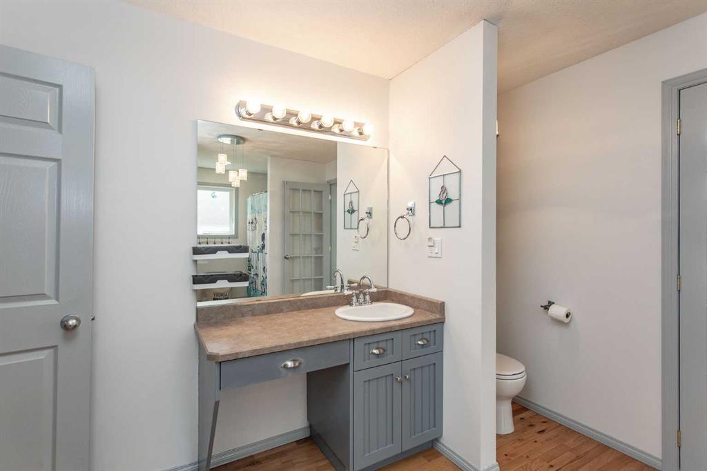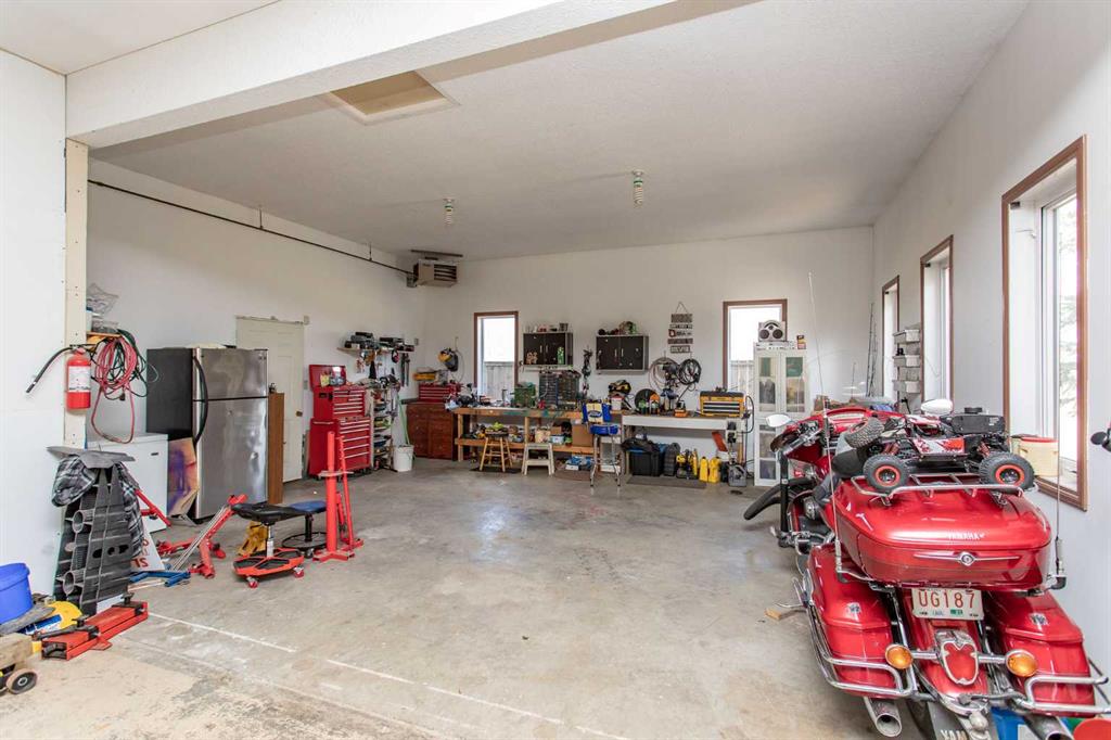 Experience the perfect balance of lakeside living and peaceful privacy in this exceptional property. 2944 square foot bungalow plus 1066 square feet of garage space! Set on a 0.68 acre lot away from city noise yet just minutes from the beach, this four-bedroom, three-bathroom home offers comfort, functionality, and room to grow. The open-concept main floor showcases a beautifully designed kitchen with rich cherrywood cabinetry, a large island with a built-in wine rack, and a gas burner stove—ideal for both everyday living and entertaining. A convenient main-floor laundry and a full bathroom with a luxurious soaker tub complete the space. The living and dining area is anchored by a striking stone-faced, wood-burning fireplace, while vaulted ceilings enhance the home’s bright, airy feel. The oversized 21' x 13'6" primary bedroom serves as a private retreat, featuring high ceilings, double doors, and a generous walk-through ensuite. The fully finished basement adds versatile living space with a family room, an additional bedroom, 3 piece bathroom and a den—perfect for guests, hobbies, or a home office. Additional features include air conditioning, a drilled water well, and a septic system with field. Plus for the person who loves spending time in the garage working on vehicles, tinkering on projects or wood working - this attached oversized four car garage is the perfect fit for the car enthusiast or hobbyist! Lots of room for vehicles with room to spare! Step outside to a spacious covered and screened-in deck (27' x 12'), extending your living space into the outdoors. The large, private yard is complete with a firepit, gazebo, and two storage sheds. Located near Buffalo Lake, a premier recreational destination, Pelican Point provides access to a public beach, campground, playground, and fully paved roads—making this an ideal year-round or seasonal retreat. Get ready to enjoy all the aspects of lake living - whether it being walking and cycling, lawn games, campfires, beach days or watersports - this exceptional property gives you an abundance of lake lifestyle and country-like living pleasures. Pelican Point is a welcoming neighborhood that has a community association that organizes community events to participate in and enjoy the comradery! Make your move -there is lots of time to enjoy winter activities still and be ready for summer at the lake!