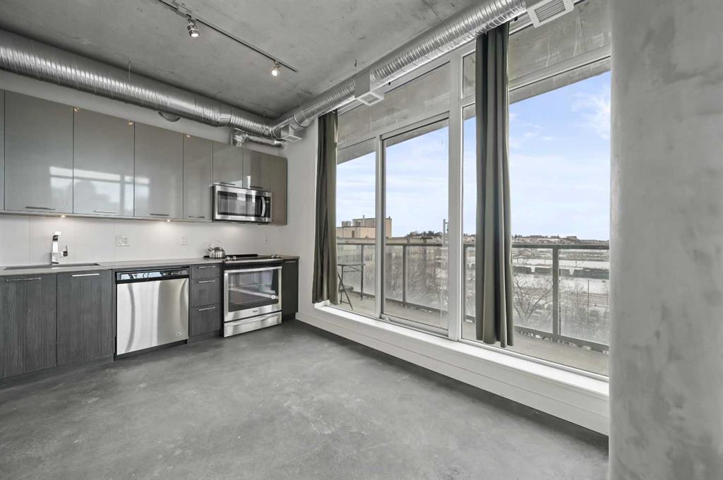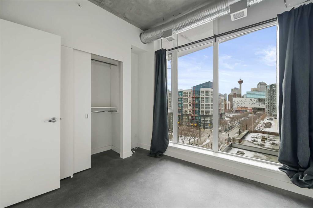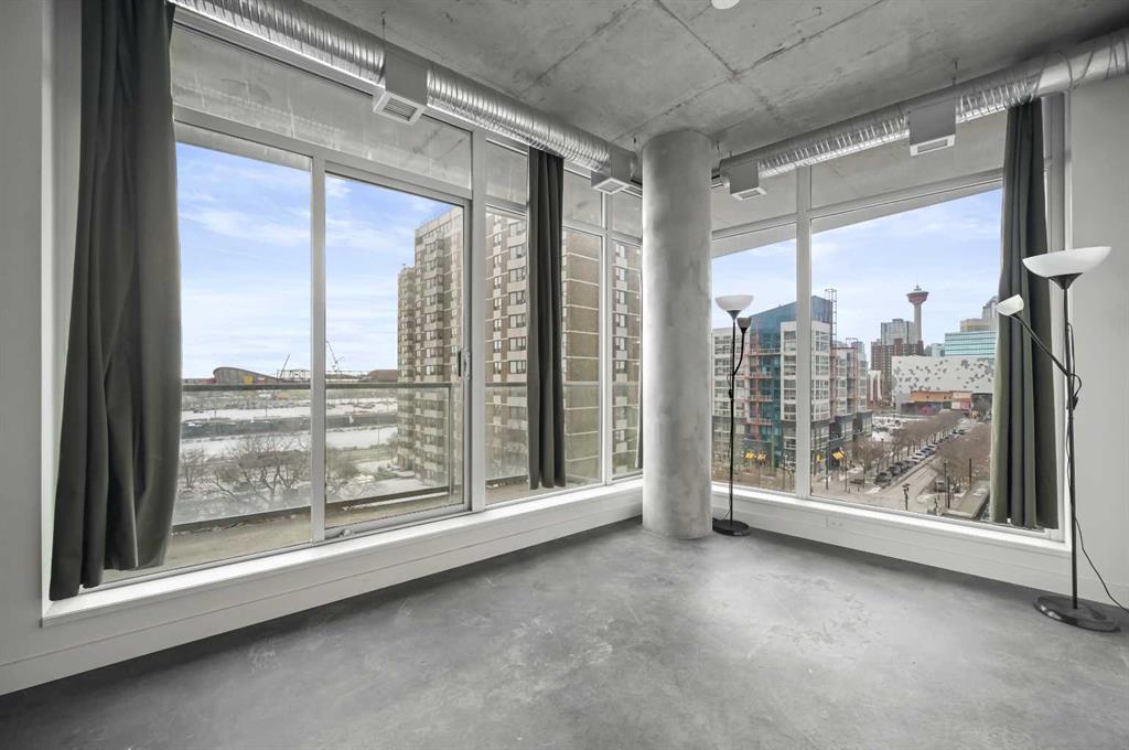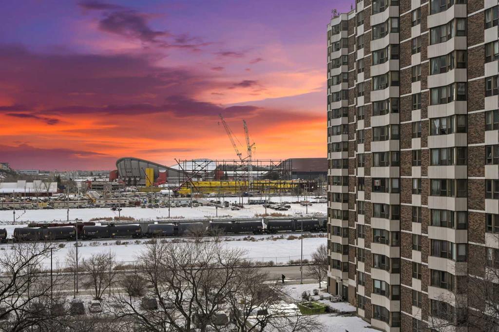 Welcome to this stunning 2-bedroom, ultra-modern corner condo offering breathtaking panoramic views and an unbeatable inner-city lifestyle. Designed with both style and functionality in mind, this bright and spacious home features 9-foot ceilings, floor-to-ceiling windows, and a spectacular balcony perfect for enjoying Calgary’s skyline and unforgettable sunsets. From the moment you enter, you’re greeted by unobstructed views of the Calgary Tower, Central Library, and Stampede Grounds, creating an instant wow factor. The open-concept layout is flooded with natural light and showcases contemporary finishes throughout, including a sleek kitchen, modern bathroom, and thoughtful design that maximizes both space and comfort. The southwest exposure enhances the airy feel, while the partially covered balcony allows for year-round enjoyment. Additional highlights include concrete construction for superior soundproofing, in-suite laundry, a spacious foyer, central storage closet, titled heated underground parking, and assigned storage. The building offers exceptional amenities, including a rooftop social lounge and patio ideal for watching Stampede fireworks or enjoying views of the Bow River and downtown skyline, as well as a bike storage room with repair station and a dedicated dog wash. Ideally located on a quiet, low-traffic street yet steps from downtown, transit, river pathways, shops, restaurants, and entertainment, this move-in-ready home delivers the perfect blend of modern living, walkability, and vibrant urban lifestyle.