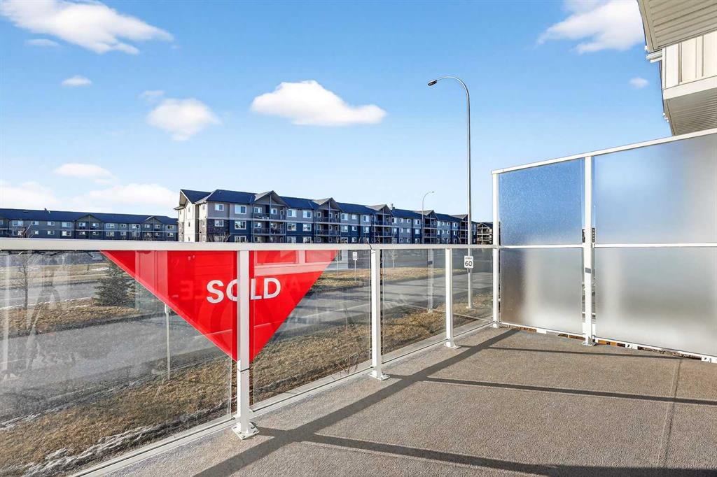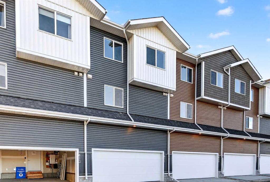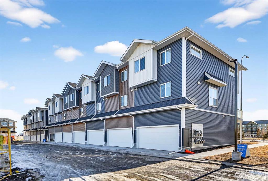 StreetSide proudly presents this exceptionally popular interior-unit townhome, where expansive living areas meet modern comforts and sophisticated finishes. The thoughtfully designed floorplan features three spacious upper-level bedrooms and two and a half well appointed bathrooms, complemented by a versatile lower-level den perfect for a home office or quiet retreat. The heart of the home is an inviting open-concept main floor, anchored by a large gourmet kitchen featuring a functional breakfast bar for casual dining. This bright living space transitions seamlessly to a private balcony, offering a perfect setting for outdoor relaxation. The interior showcases high end craftsmanship, including modern dark slab-style cabinetry with a full bank of drawers for maximum storage. The kitchen is further elevated by polished white quartz countertops and a full suite of premium stainless steel appliances. Durable luxury vinyl flooring runs throughout the primary living areas, while the stairs and upper level are finished with plush carpet over an 8lb underlay for superior comfort. Additional conveniences include an attached double car garage, professionally maintained landscaping, and a lifestyle defined by maintenance free living. Located within Red Embers Point East, this home places you at the heart of the dynamic Redstone neighborhood. Enjoy the ease of a convenient location with quick access to major routes, including Stoney Trail, ensuring you are never far from the city's best. The community is strategically positioned near future commercial developments, promising shops, services, dining, and entertainment options just moments from your doorstep.