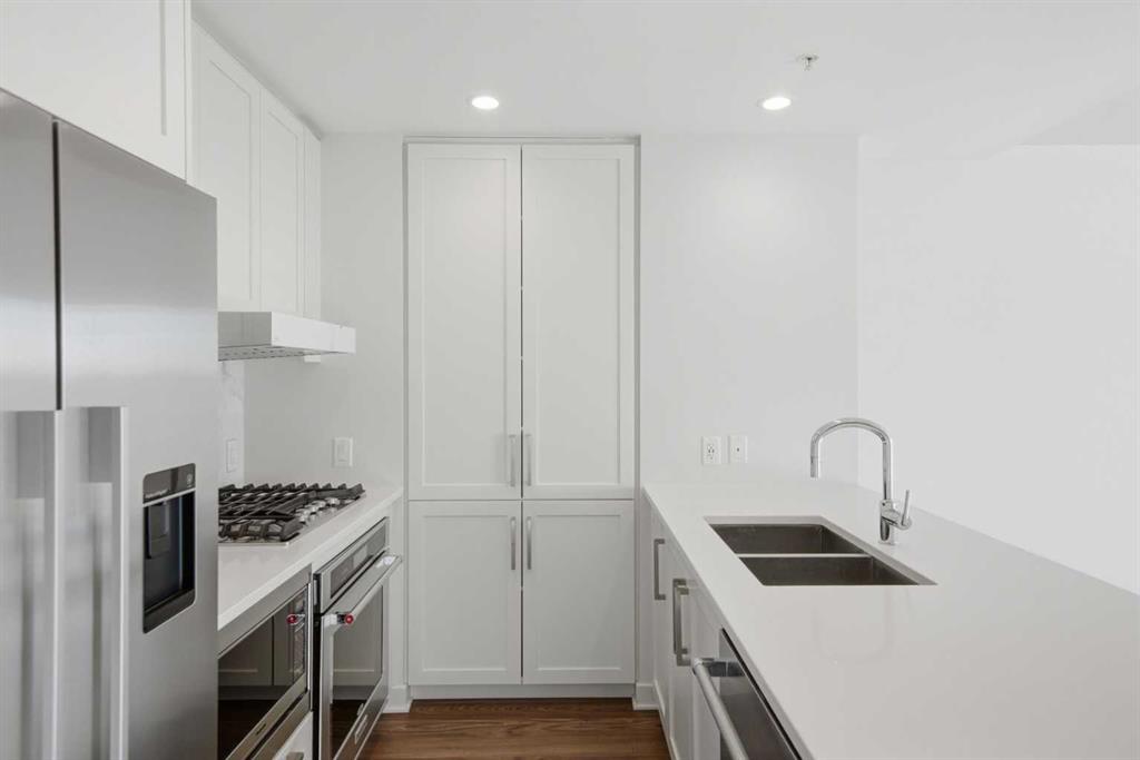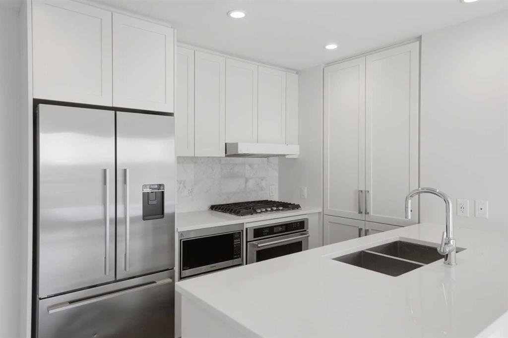 STUNNING INNER-CITY LIVING | MODERN UPSCALE DESIGN | PRIME BRIDGELAND LOCATION! Don’t miss out on this exceptional opportunity to own a gorgeous, move-in-ready condo in the heart of highly sought-after Bridgeland! This open-concept unit showcases upscale designer finishes throughout and offers an unbeatable lifestyle just steps away from local shops, cafes, restaurants, the Bow River, and extensive pathway systems. Highlights of this modern home include a MODERN KITCHEN with a tasteful, sleek design featuring beautiful QUARTZ COUNTERS | quality SS appliances | a GAS COOKTOP | and integrated cabinetry. This unit includes a TITLED PARKING stall, and a STORAGE LOCKER located on the same level! The smart and spacious layout is perfect for entertaining, featuring stylish laminate flooring and 2 large bedrooms positioned on opposite sides of the unit for ultimate privacy. Large living and dining areas separate the bedrooms, all while offering beautiful, serene views of the courtyard and nearby greenspaces. This complex offers an impressive array of AMENITIES, including: Two well-equipped Fitness Rooms, a Party Room with a Private Theatre, Guest Suite for visitors, Secure Bike Storage, a lush Courtyard with a patio/BBQ area and Garden Spaces, and more! This complex is also pet-friendly (with board approval). Enjoy the vibrant energy of Bridgeland with nearby parks right at your doorstep, featuring the Murdoch Park with its popular summer Farmers’ Market, and you are only minutes away from Inglewood, East Village, the Calgary Zoo, TELUS Spark, and LRT access for an easy commute. This home perfectly blends URBAN LUXURY and everyday convenience, making it ideal for any living scenario… come check it out before it’s gone!