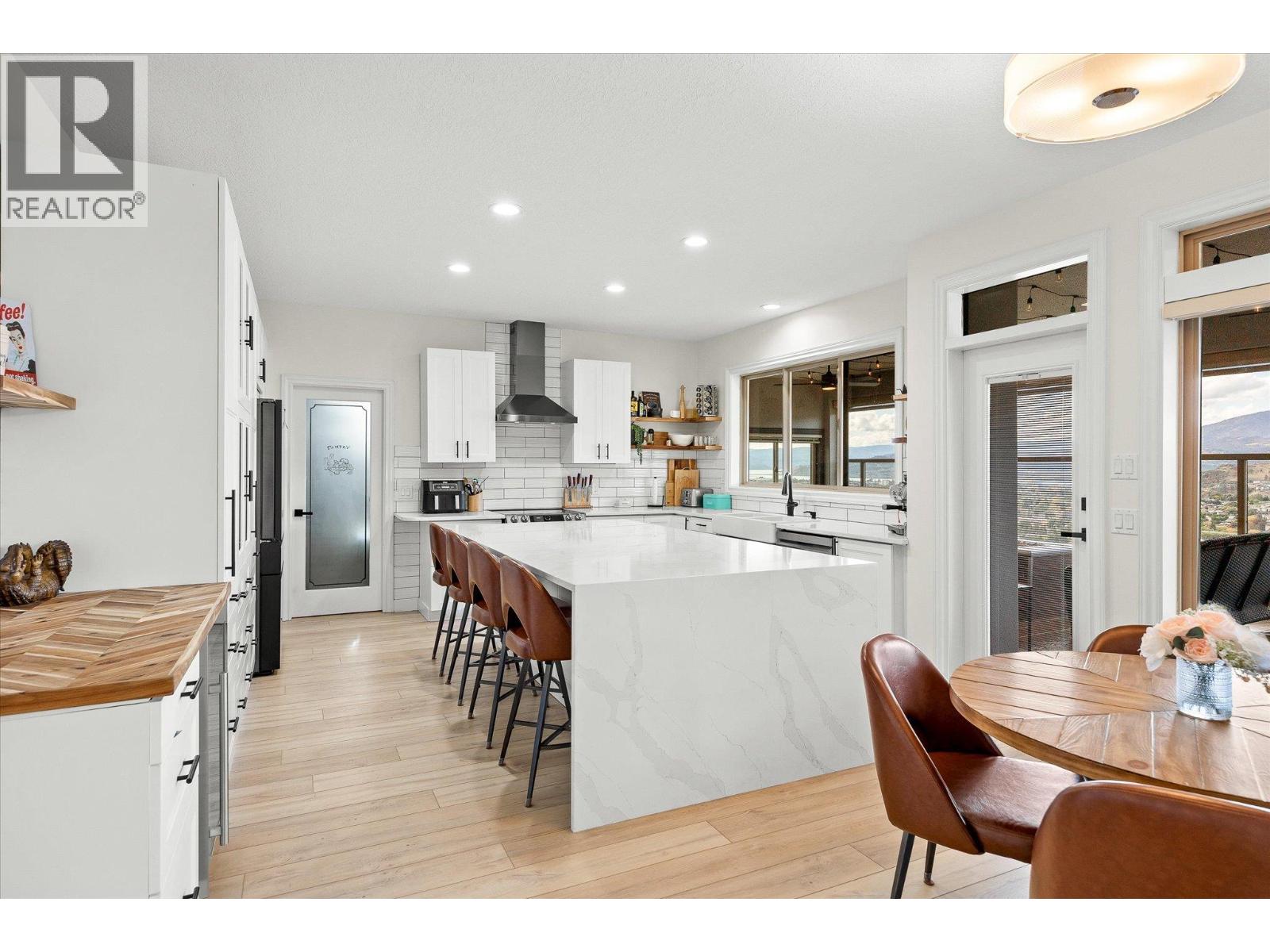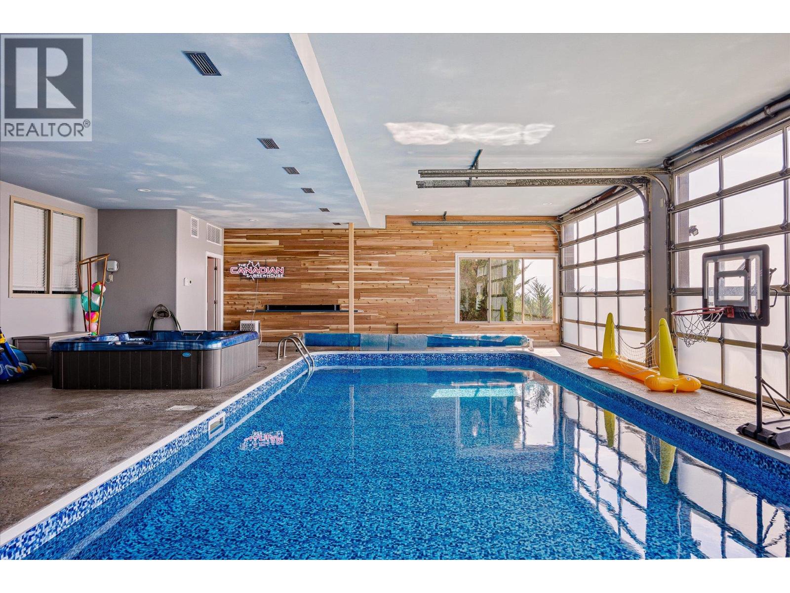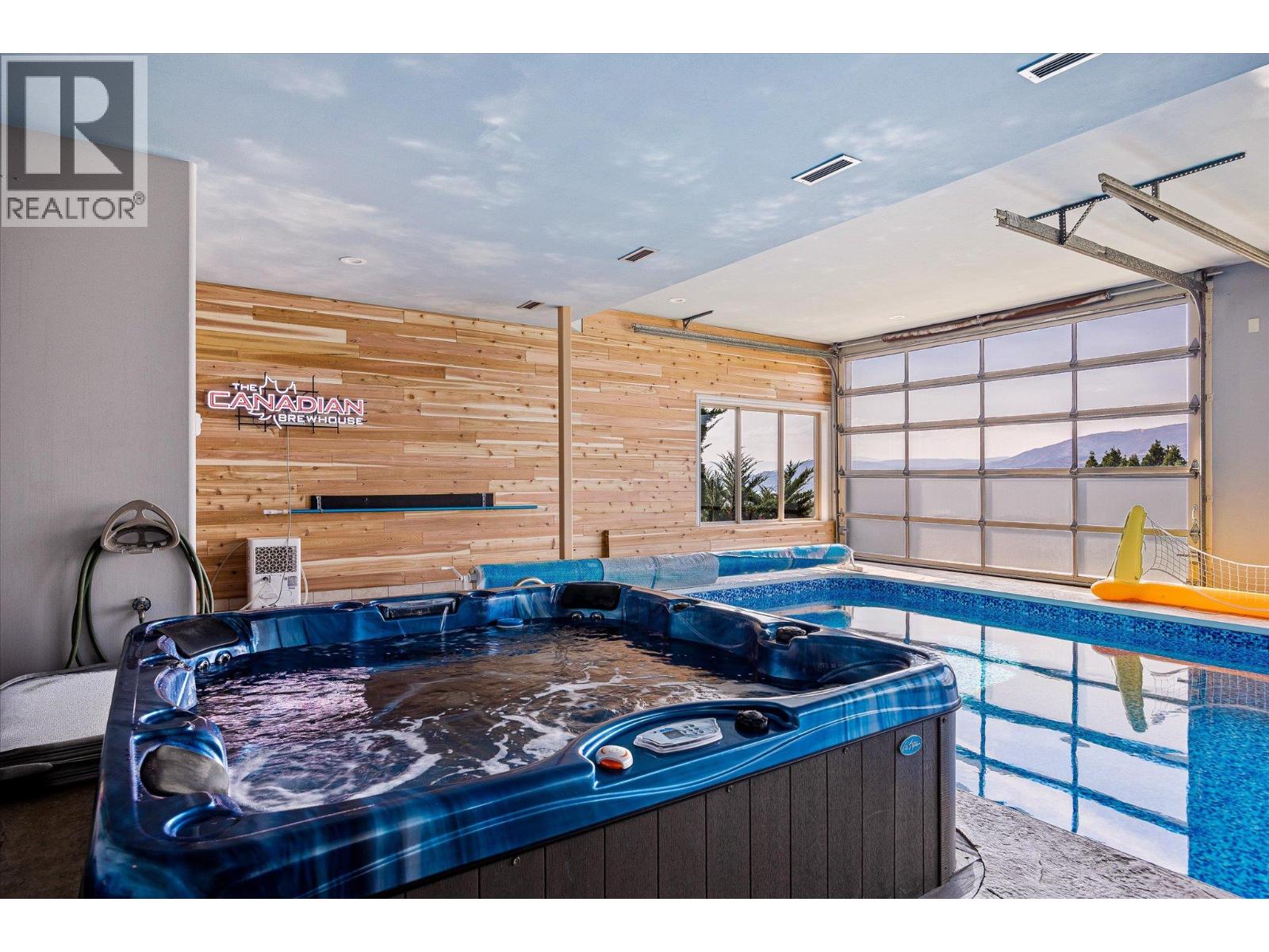 Elevate your lifestyle with this executive walkout rancher showcasing some of the best views in Kelowna. Perched in the sought-after Dilworth Mountain community of Denali Court, this residence offers over 5,200 sq. ft. of thoughtfully designed living space blending elegance with comfort. Inside, 12-foot ceilings, gleaming floors, and expansive windows frame the city skyline and shimmering lake. The gourmet kitchen features custom cabinetry, quartz countertops, perfect for entertaining and seamlessly connected to both indoor and outdoor living areas. A highlight is the unique indoor/outdoor pool. Low-maintenance and usable year-round, it provides endless enjoyment. Oversized bay doors open for sunny, open-air lounging. A steam shower completes this private wellness oasis—ideal for relaxation or fitness. The garage design is rare: an oversized two-car garage on the main level plus a single garage below, attached to a private office with separate entrance. Perfect for remote work, a studio, or quiet retreat. Situated on a 0.26-acre corner lot, the home offers more space and privacy than most nearby. Parking for up to nine vehicles, including RV space, adds convenience. Downtown Kelowna is only five minutes away for shopping, dining, and entertainment. Whether enjoying the panoramic views, retreating to the luxurious pool and steam room, this residence delivers the ultimate combination of luxury, nature, and convenience in one of the city’s most coveted locations.