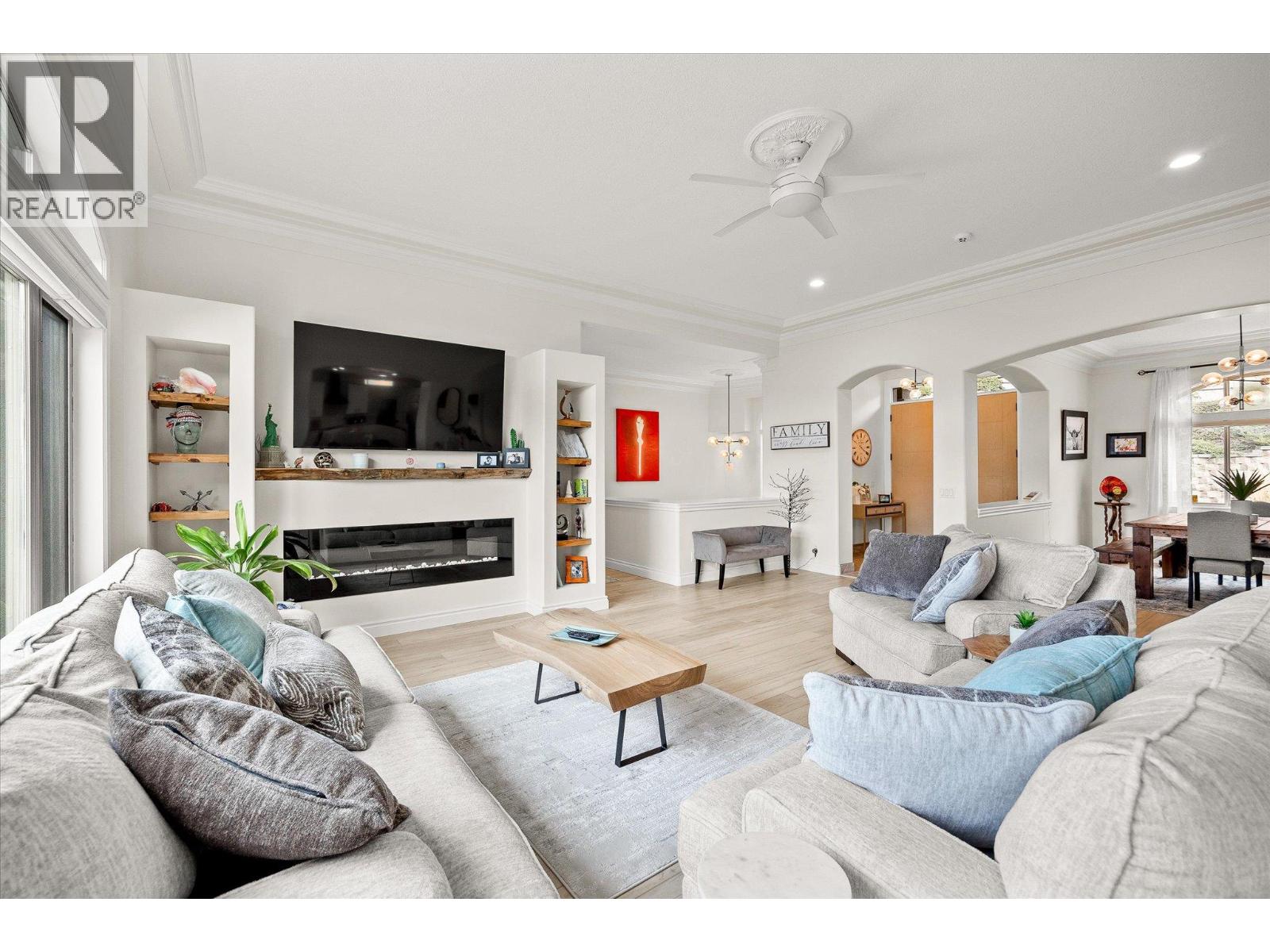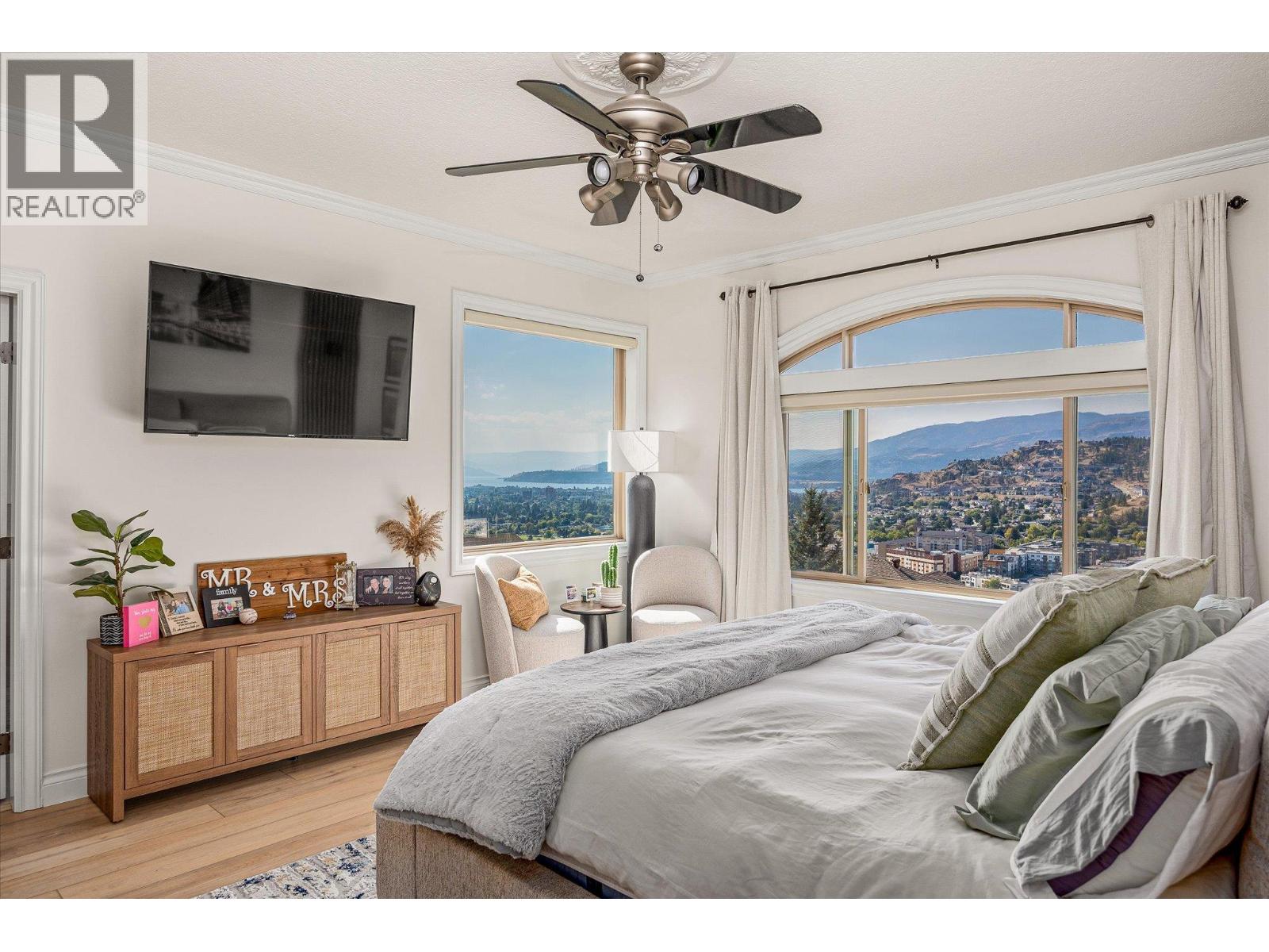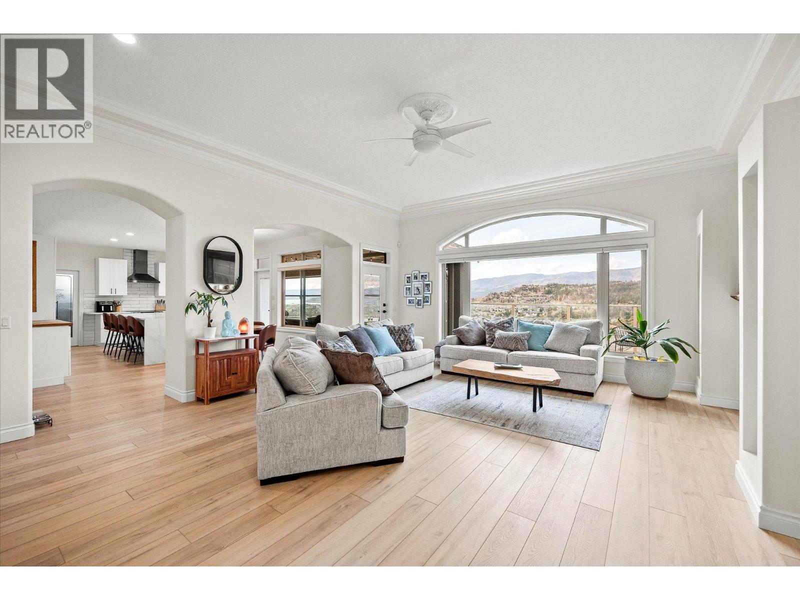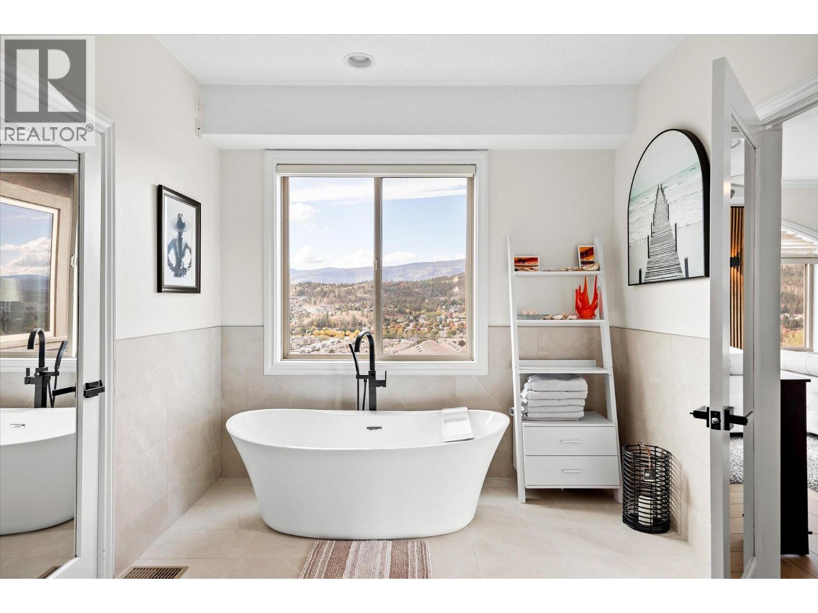 Elevate your lifestyle with this executive walkout rancher showcasing some of the best views in Kelowna. Perched in the sought-after Dilworth Mountain community of Denali Court, this residence offers over 5,200 sq. ft. of thoughtfully designed living space blending elegance with comfort. Inside, 12-foot ceilings, gleaming floors, and expansive windows frame the city skyline and shimmering lake. The gourmet kitchen features custom cabinetry, quartz countertops, perfect for entertaining and seamlessly connected to both indoor and outdoor living areas. A highlight is the unique indoor/outdoor pool. Low-maintenance and usable year-round, it provides endless enjoyment. Oversized bay doors open for sunny, open-air lounging. A steam shower completes this private wellness oasis—ideal for relaxation or fitness. The garage design is rare: an oversized two-car garage on the main level plus a single garage below, attached to a private office with separate entrance. Perfect for remote work, a studio, or quiet retreat. Situated on a 0.26-acre corner lot, the home offers more space and privacy than most nearby. Parking for up to nine vehicles, including RV space, adds convenience. Downtown Kelowna is only five minutes away for shopping, dining, and entertainment. Whether enjoying the panoramic views, retreating to the luxurious pool and steam room, this residence delivers the ultimate combination of luxury, nature, and convenience in one of the city’s most coveted locations.