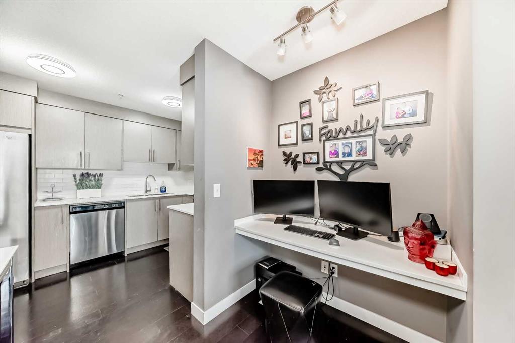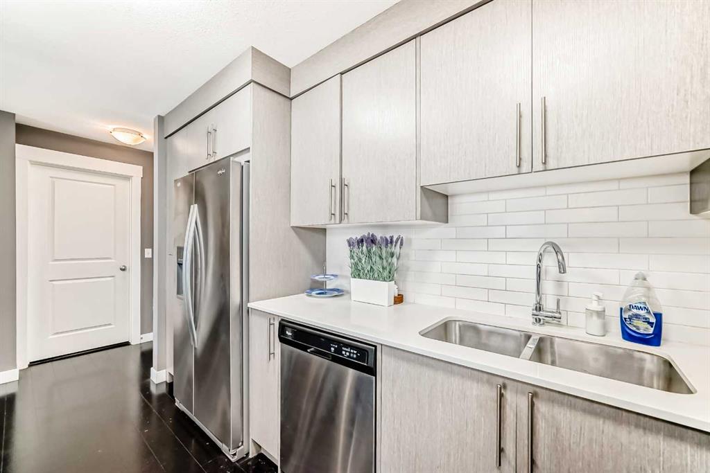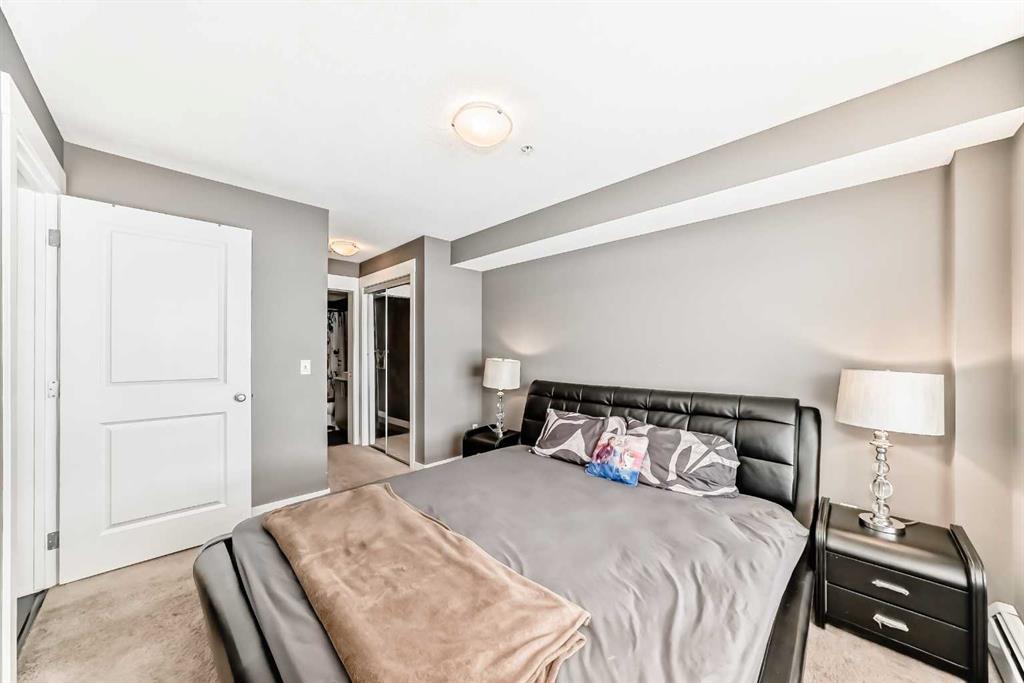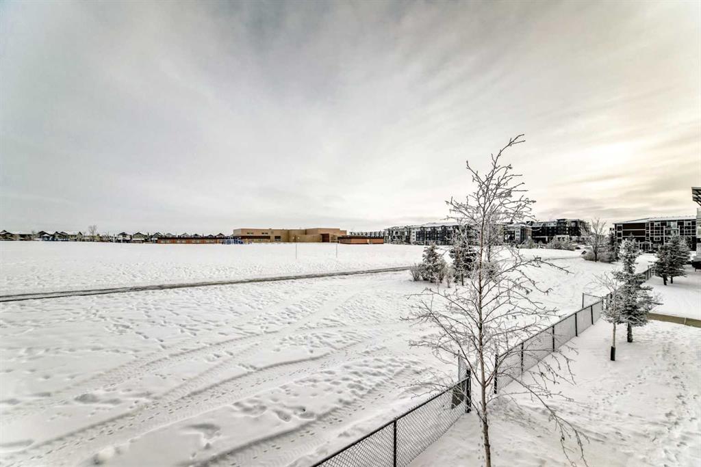 Welcome to this modern, beautifully appointed 2-bedroom, 2-bathroom condo backing onto green space in the vibrant community of Skyview Ranch. Perfect for first-time buyers, young professionals, or investors, this stylish home offers a bright open-concept layout filled with natural light. The spacious living room provides a comfortable place to unwind and opens onto a private balcony overlooking the peaceful green space—ideal for enjoying morning sunrises or relaxing evenings. The corner, chef-inspired kitchen features stainless steel appliances, ample cabinetry, and plenty of storage. The thoughtfully designed floor plan includes a generous primary bedroom with double closets and a sleek ensuite bathroom. A second well-sized bedroom is perfect for guests, a home office, or a growing family. Additional features include a second 4-piece bathroom, in-suite laundry, an open office area, titled underground parking, and convenient visitor parking. Enjoy quick access to major roadways such as Deerfoot Trail and Stoney Trail, along with nearby public transit for an easy commute to downtown Calgary. The International Airport is just minutes away. Skyview Ranch is a family-friendly community offering schools, parks, and shopping within walking distance, plus close proximity to Costco, CrossIron Mills, Chalo FreshCo, Shoppers Drug Mart, and many other everyday amenities. Don’t miss this fantastic opportunity to own a contemporary home in one of Calgary’s fastest-growing communities