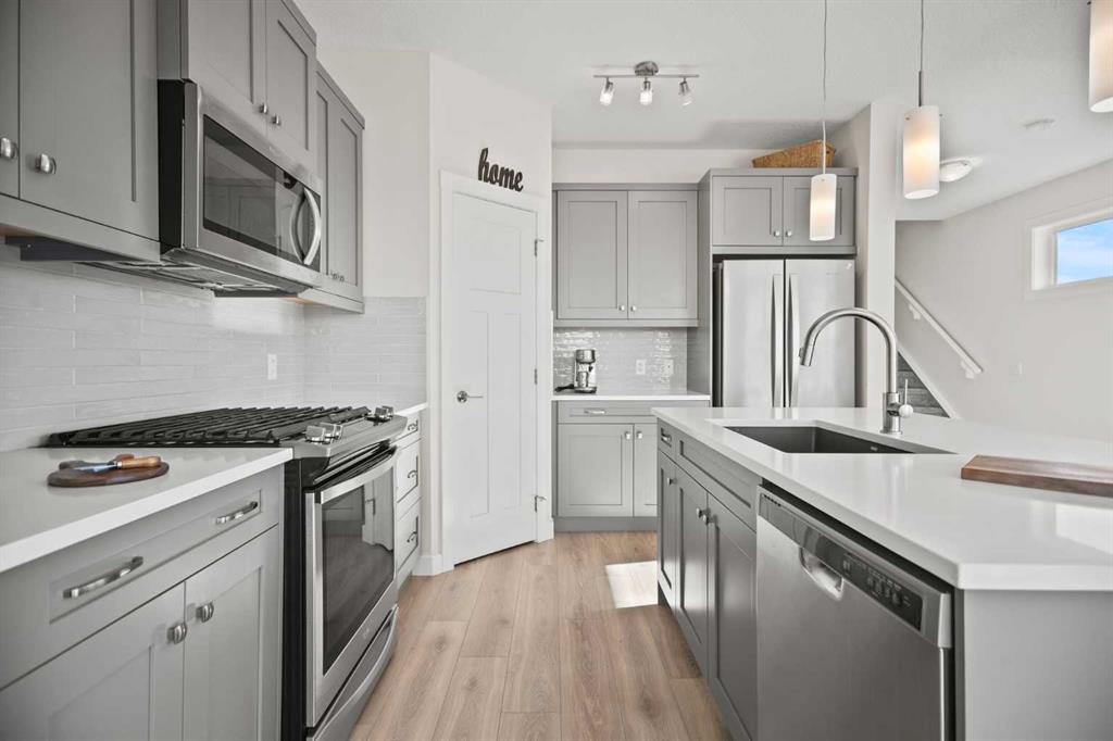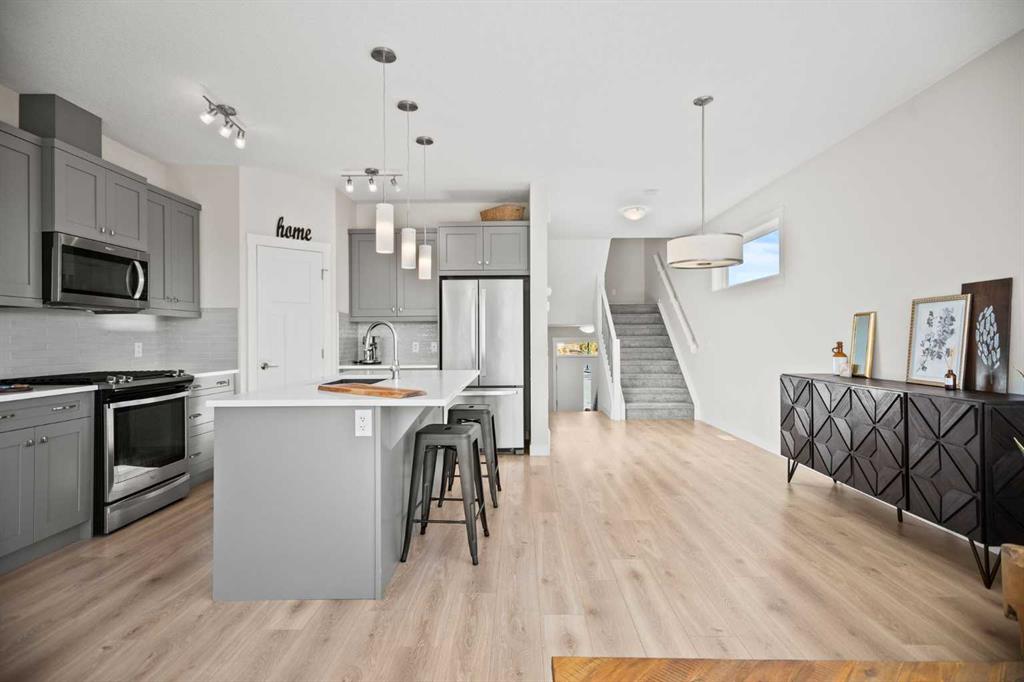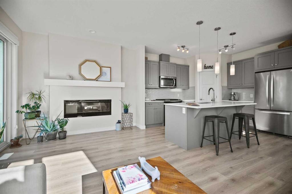 **OPEN HOUSE SAT JAN 31st 2pm-4pm** Welcome to this exceptional detached two-storey home in the prestigious community of Cranston Riverstone — where nature, privacy, and modern design come together beautifully. Backing west with breathtaking open views and no neighbours to the left, this home offers a rare sense of space and serenity, with scenic pathways just steps from your door. Inside, the open-concept main floor is finished with wide VINYL PLANK flooring, a striking electric FIREPLACE, and a chef-inspired kitchen featuring QUARTZ COUNTERTOPS, GAS RANGE, STAINLESS STEEL appliances, and a generous ISLAND perfect for gathering. Step out onto the WEST-FACING 20x10 REAR DECK with BBQ GAS line. Take in unforgettable sunsets over the natural landscape — a view that truly sets this home apart. Upstairs, the thoughtfully designed layout places the primary bedroom with VAULTED CIELING and huge SOAKER TUB just six steps above the main level, creating a private retreat separated from the two rear children’s bedrooms — ideal for both family living and quiet relaxation. The fully developed walkout basement extends your living space beautifully, perfect for entertaining, a home gym, or media room. Fully landscaped yard with FIREPIT and FENCED YARD. Complete with an EPOXY FINISHED FLOOR in garage and meticulous attention to detail throughout, this home is truly one of a kind. A rare opportunity to own a showstopper property with unmatched views in one of Calgary’s most desirable riverfront communities.