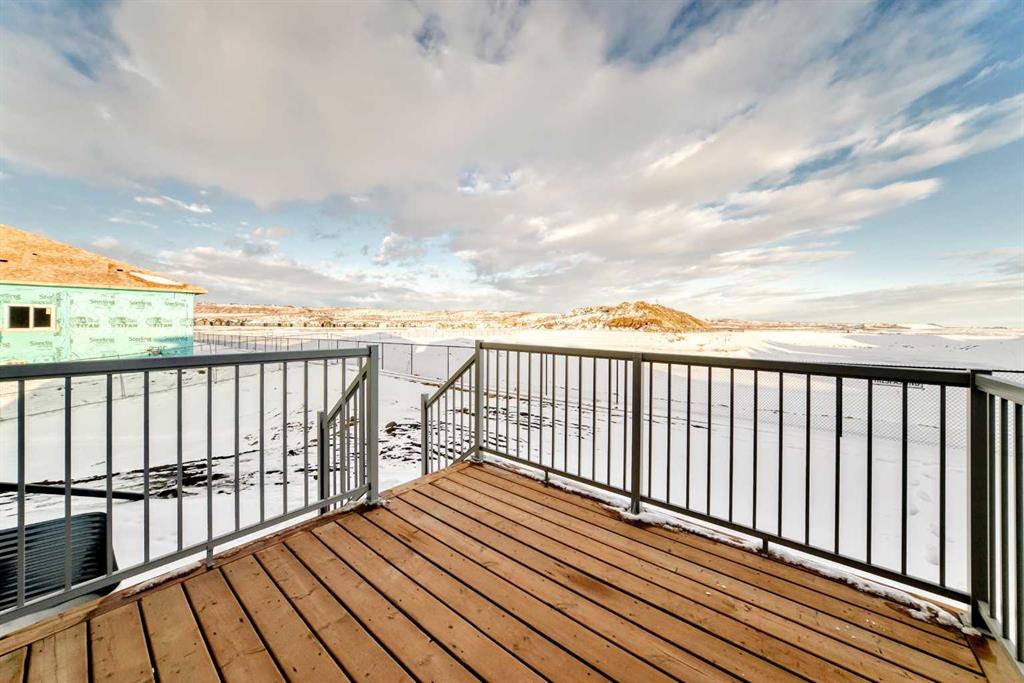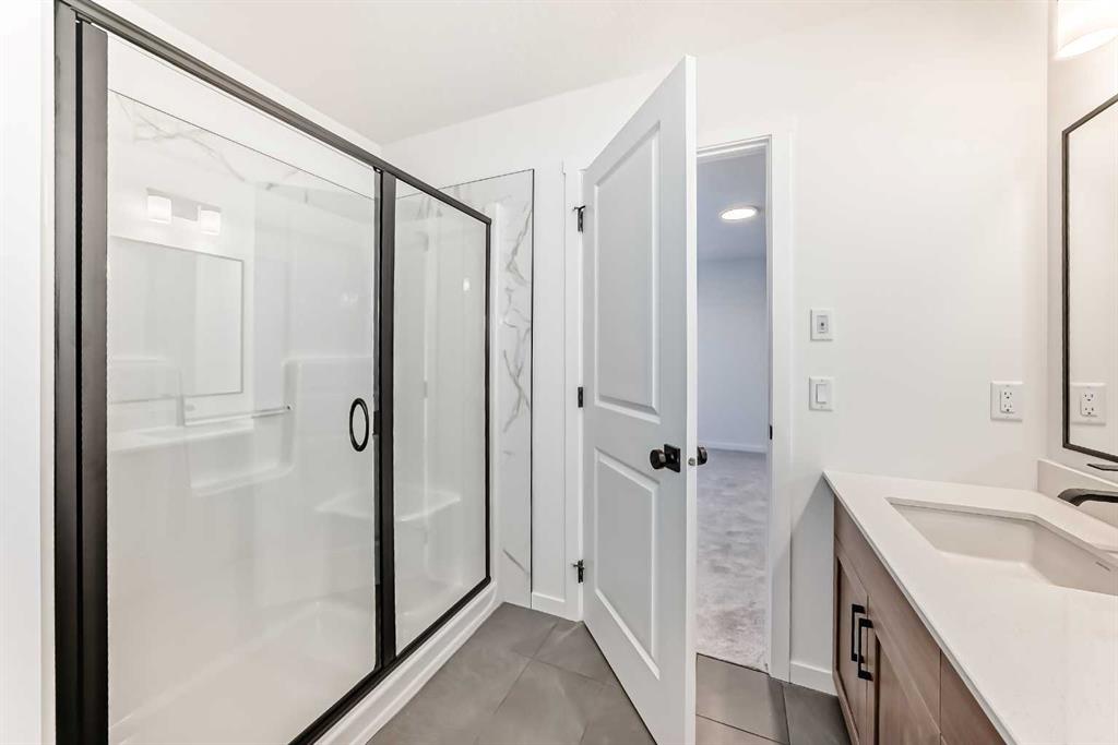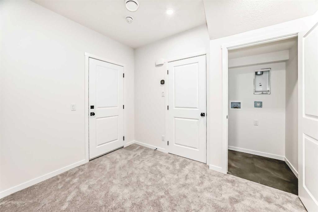 This brand-new half duplex in Cochrane’s Southbow Landing is fully completed and move-in ready, offering a spacious layout that’s built for real life and a built in mortgage helper in the form of a fully developed LEGAL suite ! The main floor delivers an open, bright footprint, a large foyer leads straight into a clean, modern kitchen with a functional island, plenty of prep space, and an easy flow into the dining nook and great room. The living area is anchored by a sleek electric fireplace and framed by oversized windows that pull in natural light all day. Direct access to the rear deck gives you smooth indoor-outdoor living without hassle. Upstairs, the layout is dialed in. A versatile loft sits at the center and works as a second living space, home office, kids zone, or media room. The primary bedroom is generous in size and includes a well-finished ensuite with a walk-in shower and double vanity. Two additional bedrooms and another full bathroom complete the upper floor, giving families or shared living setups exactly what they need. The basement is designed with a separate side entry and is already planned for a one bedroom suite layout, offering massive potential for future income, multi-generational living, or added flexibility. With the 9 foot foundation height, proper bathroom rough-ins, dedicated living room, full kitchen area, and bedroom placement already mapped out, the heavy lifting is done. A double attached garage adds the convenience buyers expect while the exterior shows clean, modern farmhouse lines that give the home strong curb appeal. Because this property is brand new, you get untouched systems, fresh materials, and zero renovation headaches. Southbow Landing is shaping up fast and is one of Cochrane’s most promising new communities. Walkable pathways, planned parks, and future amenities makes this location ideal for anyone wanting both convenience and long-term upside. This home delivers serious value.
