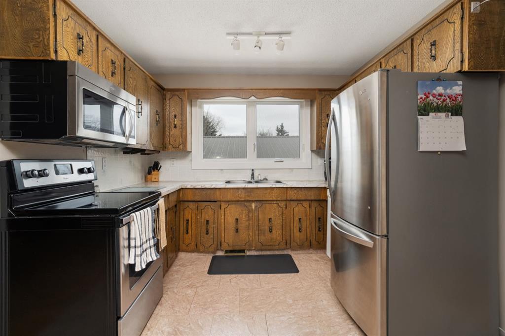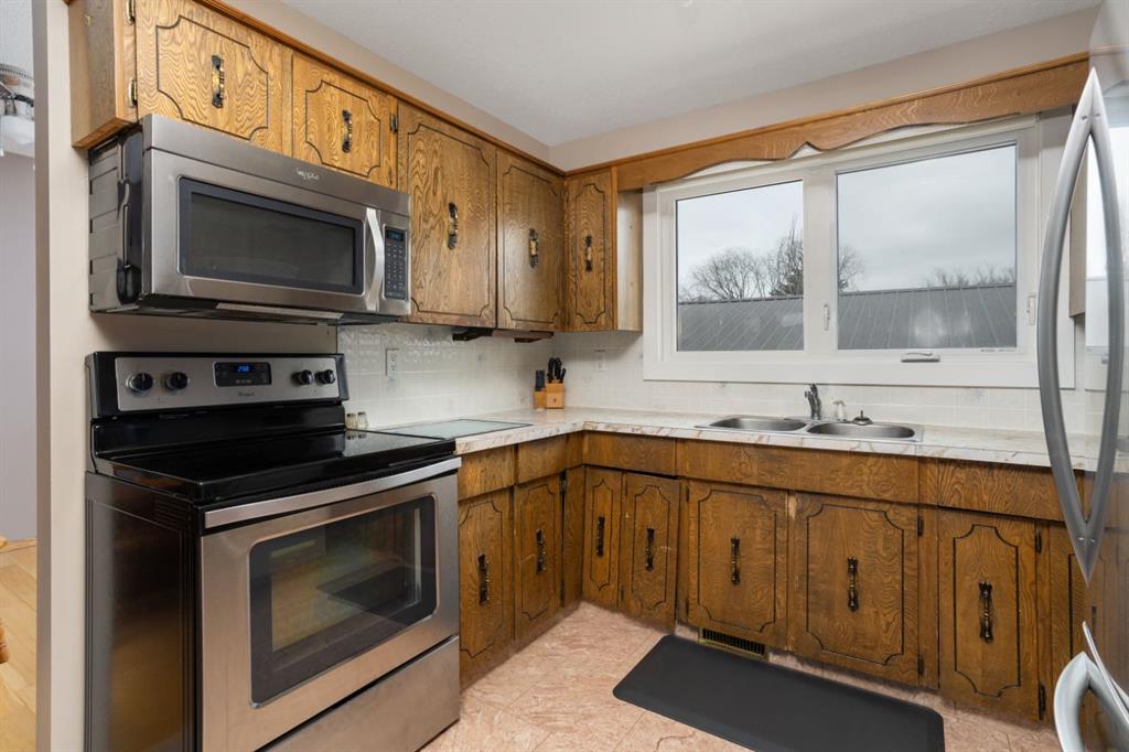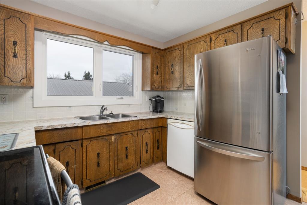 Quality Bilevel in a Quiet Area - Close to Green Space with a DREAM GARAGE - 26x30 with 2 doors and lots of parking at the rear. All new Vinyl Windows/Exterior Doors throughout make this home bright and so efficient. Coming in at 1160sqft this is a larger Bilevel than you normally see and it shows with large living and dining options that feature hardwood floors and a central kitchen that's been opened up for great flow and presentation. Huge Primary Bedroom has plenty of room for a King bed and has access to the shared 5pc bathroom. A second bedroom rounds out the main floor. Basement comes fully finished and bright with updated windows. Cozy family room for entertaining plus a flex room for hobbies. Two additional bedrooms and a 3pc bath plus huge utility room with laundry complete this lower level. Outside you'll enjoy a raised 9'9 x 22'5 South facing deck, fully fenced yard, shed with power and Trailer parking options. The real showstopper is the 26x30 Heated Garage with 2 insulated doors, 3x 220 plugs and upgrade sub panel. Finally a property with the kind of garage you deserve!