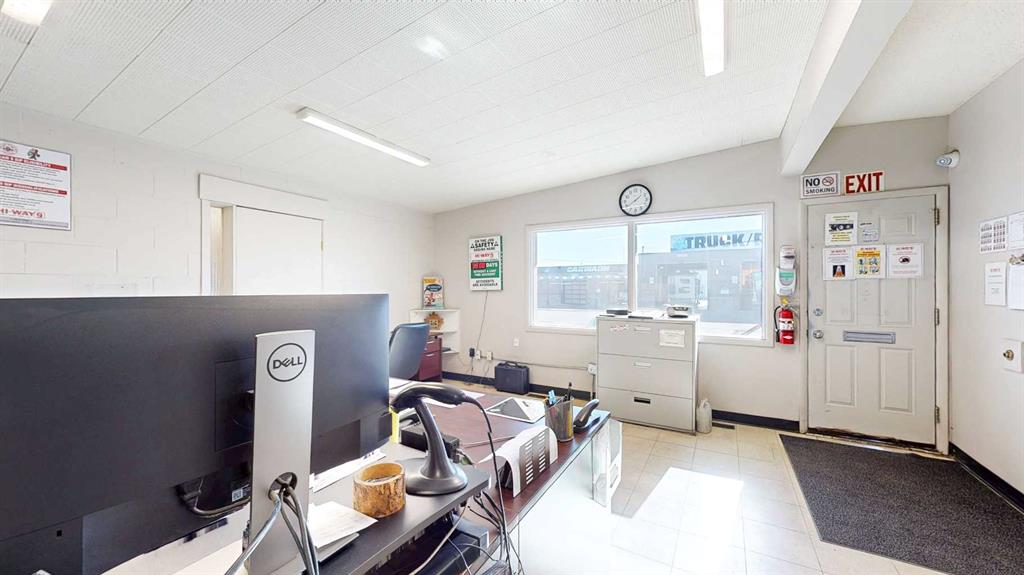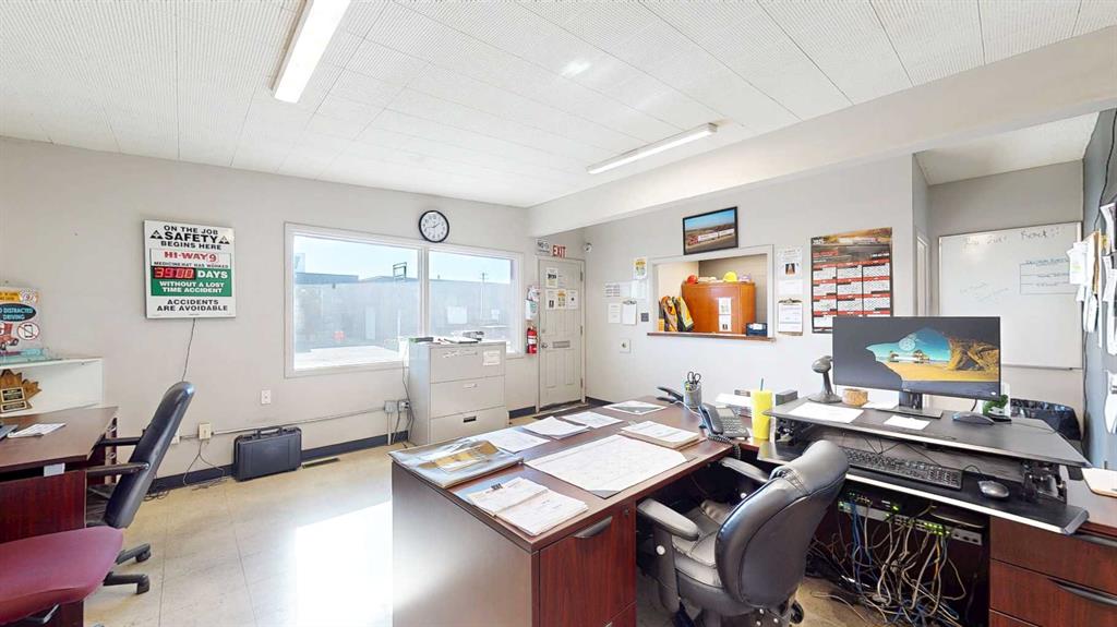 Exceptional opportunity to purchase a well-maintained commercial property in Medicine Hat. Situated on multiple city lots, this 4,954 sq ft building offers a functional mix of office, storage, and warehouse space to suit a variety of business needs. The office area features 8' ceilings and includes a reception area, private office, staff room, and two washrooms. The shop and warehouse area provides 12' wall height with four 8'x9' overhead doors and two 8'x8' overhead doors for convenient access. The property is serviced with 200-amp power and offers ample exterior space for parking or yard use. Ideal for trades, service, or light industrial operations—ready for immediate ownership and use in a prime Medicine Hat location. Property will be vacated before possession date.
