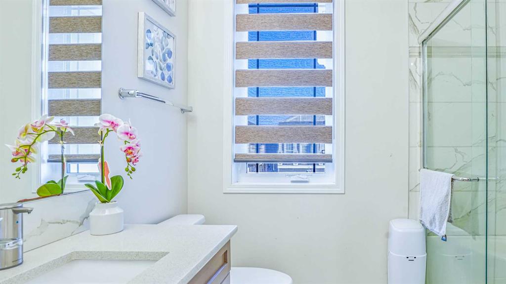 Welcome to this beautifully upgraded 3 bedroom, 3.5 bathroom detached home in the desirable community of Carrington. The seller invested over $100,000 in upgrades, creating a home that truly stands out. This home features 9-foot ceilings on the main and upper floors, extensive pot lighting throughout, upgraded flooring, 8-foot interior doors, and quartz countertops in the kitchen and bathrooms. The chef-inspired kitchen offers full-height cabinetry, premium built-in stainless steel appliances, and an extended layout ideal for entertaining. The living area is highlighted by a full-height stone gas fireplace, modern railings, and an open, elegant design. Upstairs includes a spacious primary suite with a luxurious ensuite and walk-in closets, while secondary bedrooms offer excellent natural light and smart storage. The fully finished basement includes a large recreation room and full bathroom, perfect for guests or additional living space. Additional features include central air conditioning, a water softener system, and a new hot water tank (2025). Enjoy the outdoors with a full rear deck, extended patio space, upgraded exterior elevation, and hail-resistant siding. A move-in-ready home offering exceptional value in NW Calgary.