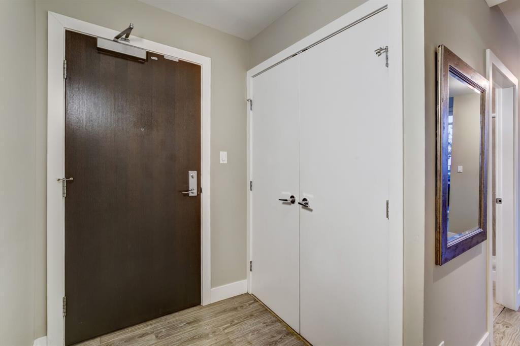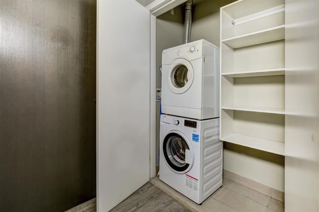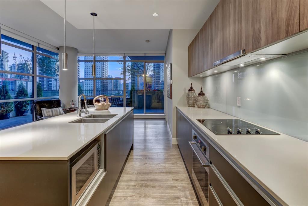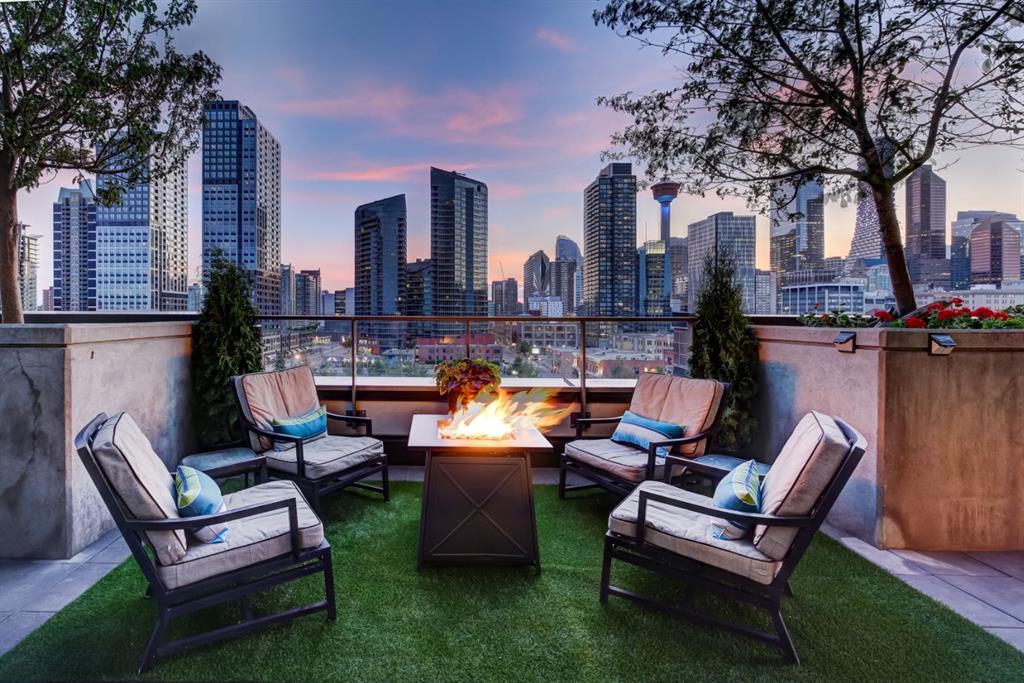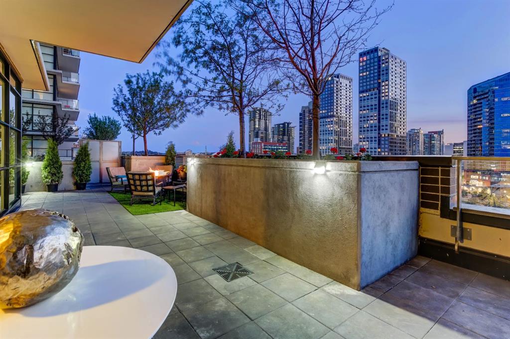 Love downtown living but craving outdoor space? This stunning SW corner terrace unit offers the best of both worlds - a rare, wrap-around 685 sqft terrace with breathtaking views of the city skyline. Located on the 7th floor, this bright and spacious corner layout features 10’ ceilings and expansive floor-to-ceiling windows that flood this unit with natural light and truly bring the outdoors in. The sleek modern kitchen is thoughtfully designed with built-in appliances, quartz countertops, and a convenient microwave shelf to keep your counters clear and functional. The primary bedroom includes upgraded custom closet built-ins to maximize storage, along with a 4-piece ensuite for added comfort. A true bonus: titled indoor tandem parking, rarely found in the building, ideally situated on the 4th level above ground right next to the elevator doors (and only 3 floors down the stairs), with natural light streaming into the parkade through shaded windows. Perfect for the urban professional, you’re just steps from the Saddledome, downtown, C-Train, river pathways, shops, restaurants, and all amenities. Residents of The Guardian enjoy premium amenities including concierge service, a fully equipped fitness centre (directly below unit), social lounge, workshop, visitor parking, and a beautifully landscaped garden terrace with BBQs. With stairs conveniently nearby, you’ll never have to wait long for an elevator. Don’t miss this rare opportunity to enjoy downtown living with exceptional outdoor space!