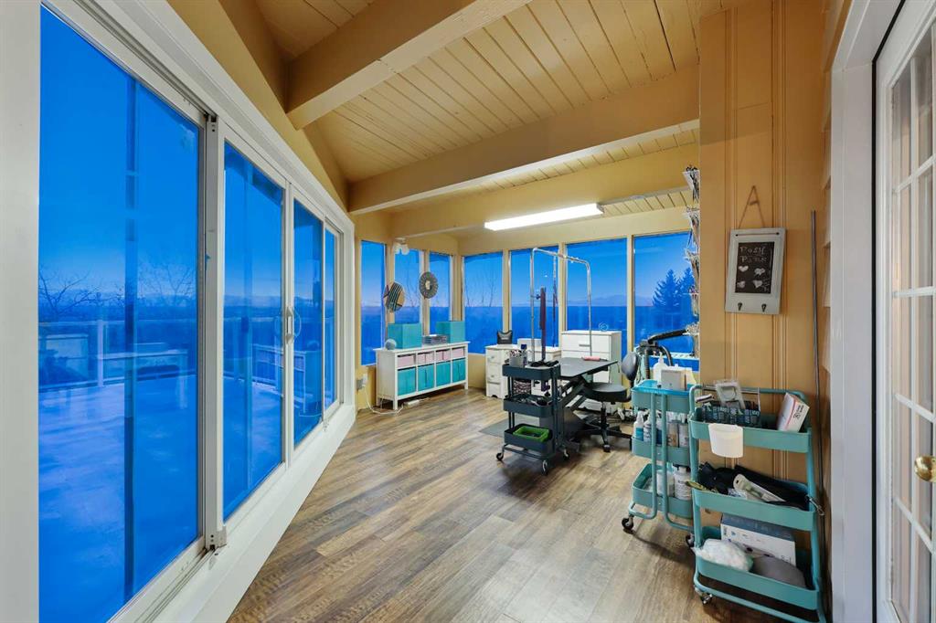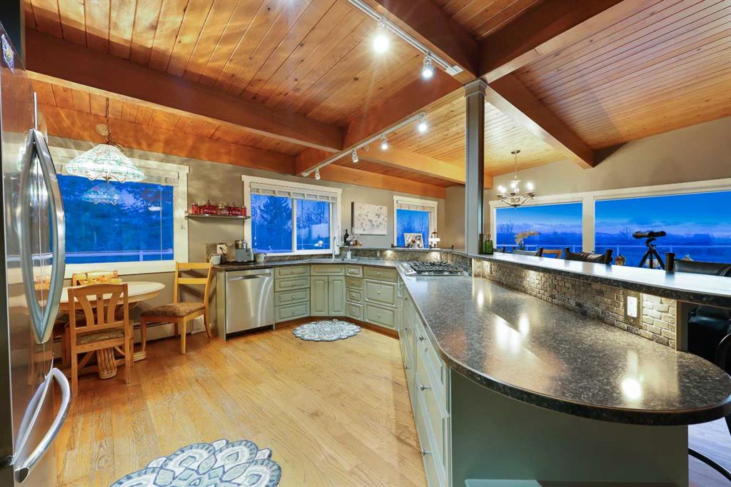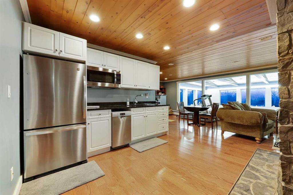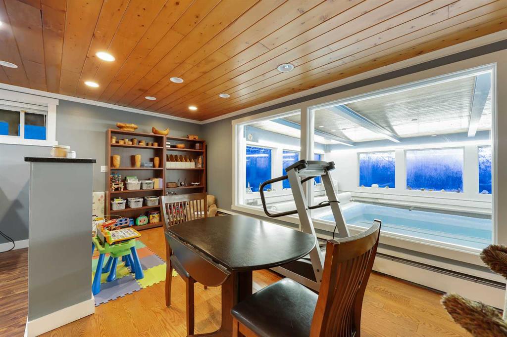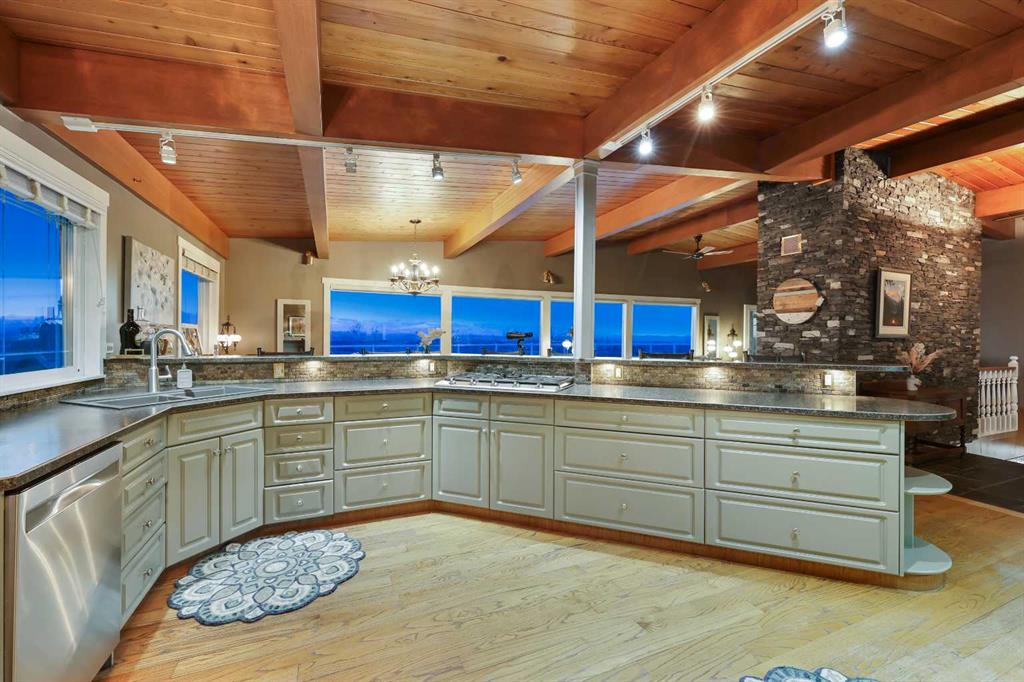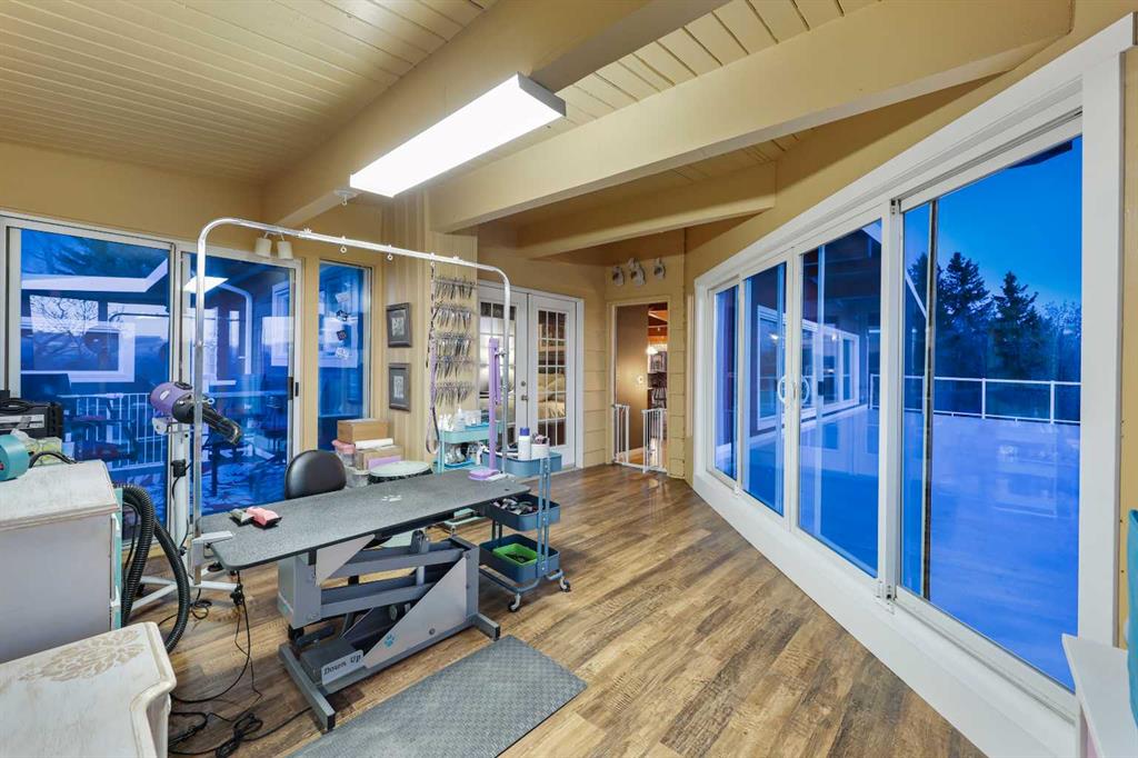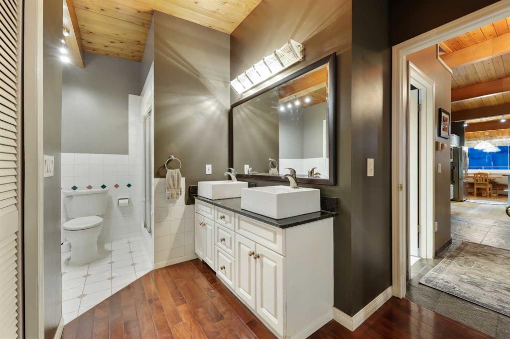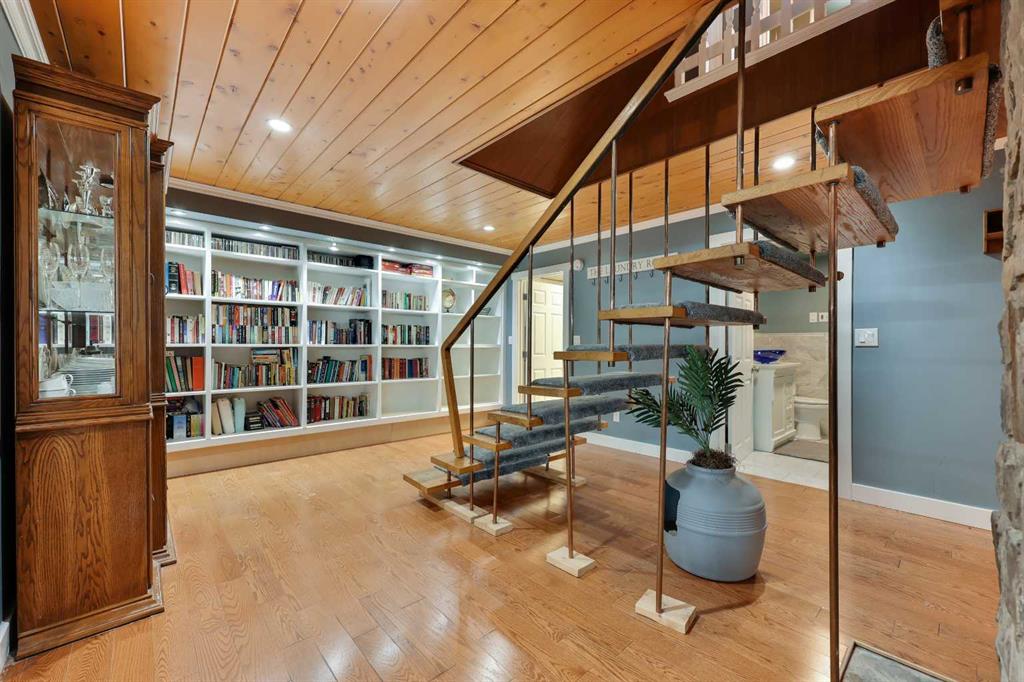 Set on a serene, private lot with unobstructed mountain views, this exceptional walkout bungalow offers timeless design, generous space, and the opportunity to make it your own—all within one of Springbank’s most sought-after communities, just minutes from West Springs, Aspen Landing, top schools, and recreation. Offering nearly 5,000 sq ft of living space, the home features 4 bedrooms, 3 bathrooms, and a separate-entry illegal suite, ideal for extended family or added flexibility. The main level showcases slate and oak hardwood flooring, soaring ceilings with exposed mahogany-wrapped beams, and a dramatic floor-to-ceiling, two-sided wood-burning stone fireplace framed by expansive triple-pane windows. The chef’s kitchen includes stainless steel appliances, ample seating, a breakfast nook, and formal dining, with easy access to a spacious composite BBQ deck—perfect for entertaining while enjoying the mountain backdrop. The primary suite is a private retreat with a 5-piece ensuite, walk-in closet, cedar storage, and a sunroom opening to multiple outdoor decks—ideal for morning coffee or evening sunsets. The walkout lower level offers excellent versatility with a guest bedroom, office, second kitchen, inviting living room with a matching stone fireplace, and a recreation wing featuring a refinished indoor pool and hot tub, surrounded by windows for year-round enjoyment. Additional highlights include a heated triple oversized garage, custom matching shed, firepit area, and a charming two-story playhouse nestled among the trees. A rare offering combining privacy, views, and the flexibility to personalize a truly timeless home in one of Springbank’s most prestigious enclaves.
