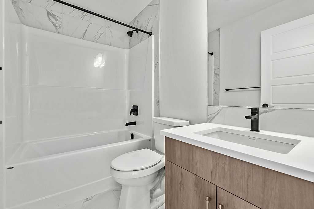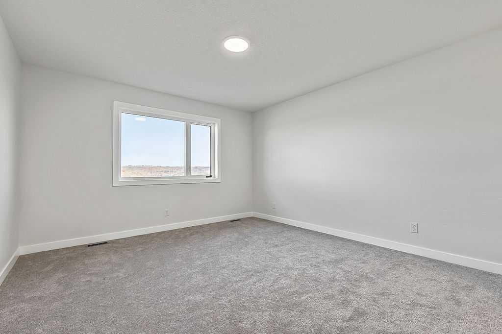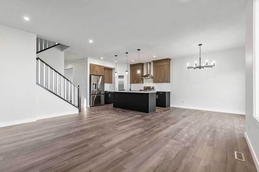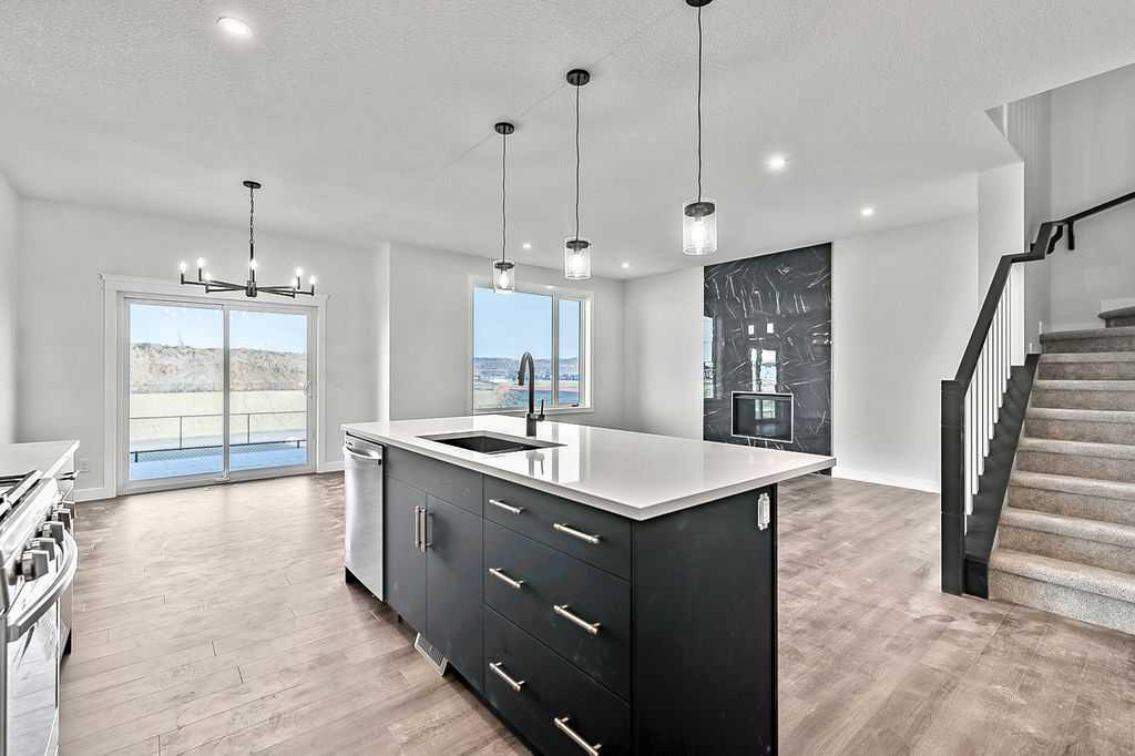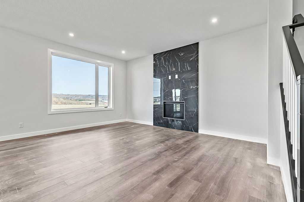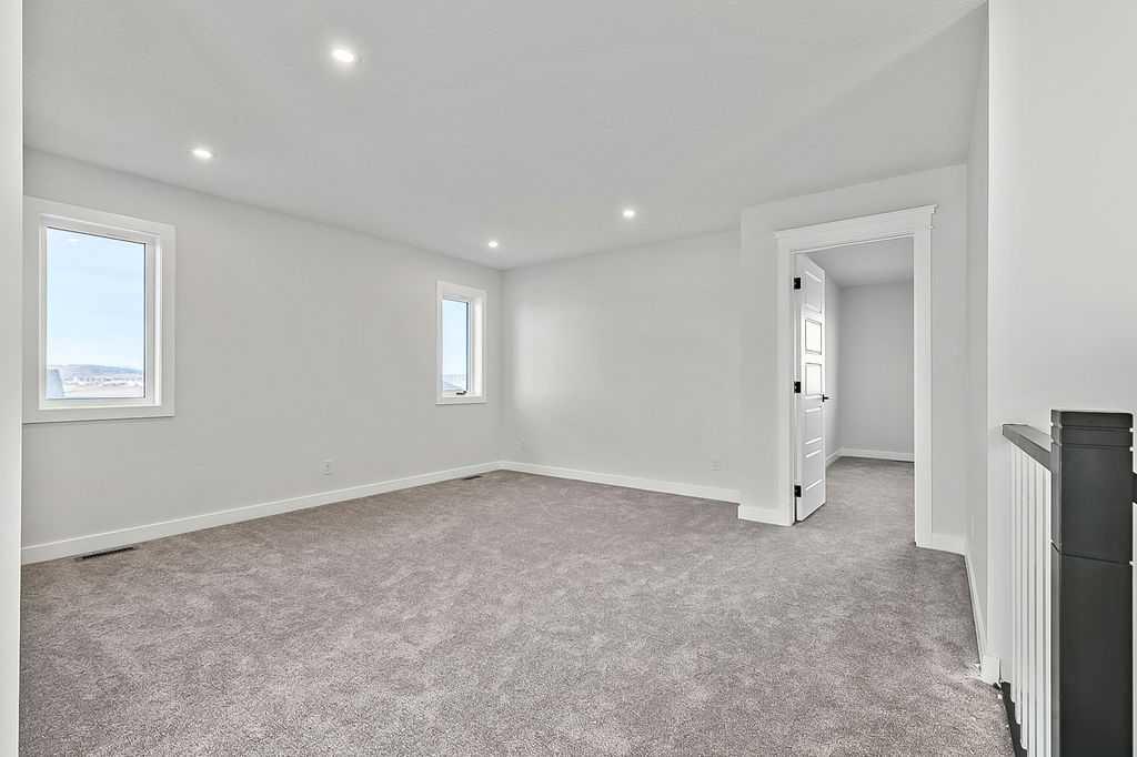 Purchase this home in January 2026 and Nuvista Homes will pay your first three mortgage payments, or on any spec home and you will receive a cheque for $10,000 after possession. Located in the vibrant new community of Southbow Landing in South Cochrane, this exquisite brand new residence provides over 2,000 square feet of living space, embracing modern comfort with classic elegance. The THOUGHTFULLY DESIGNED floor plan offers three spacious bedrooms and two and a half baths, perfect for families or anyone seeking refined living. The 9' ceilings on the main floor create a sense of openness and airiness. The kitchen features gorgeous cabinetry featuring extended upper cabinets for ample storage. Quartz countertops offer both functionality and sophistication, while the gas fireplace in the living room adds warmth and an inviting ambiance. The main floor showcases luxury vinyl plank flooring, chosen for both its beauty and durability. Whether you're entertaining guests or enjoying a quiet evening, the seamless flow of this level makes it perfect for any lifestyle. Upstairs has a central bonus room that offers privacy by separating the serene primary suite from the secondary bedrooms. This area is ideal for a family playroom or a cozy retreat. The convenience of an upstairs laundry room enhances the livability of the space. There is a rear deck that extends off the eating area, perfect for summer barbecues and relaxing evenings. The home includes an EXTRA WIDE DOUBLE ATTACHED GARAGE, providing both security and convenience for your vehicles and storage needs. The allure of this property extends beyond its walls, as it is situated in the burgeoning community of Southbow Landing. Exciting plans for the neighbourhood include ample green spaces, schools, and scenic pathways. Quick and easy access to downtown Calgary and the majestic Rocky Mountains. This home is not just a place to live—it’s a lifestyle, offering exceptional quality, space, and location. Welcome to your new Southbow Landing home BUILT BY NUVISTA HOMES, ONE OF CALGARY'S PREMIER BUILDERS known for top rated customer service.