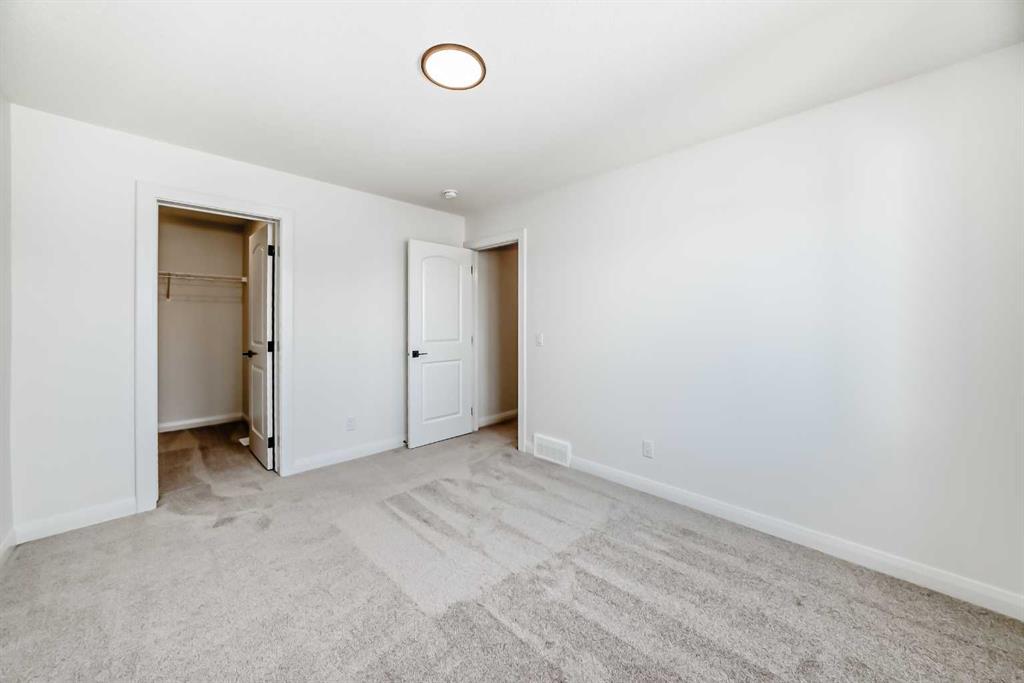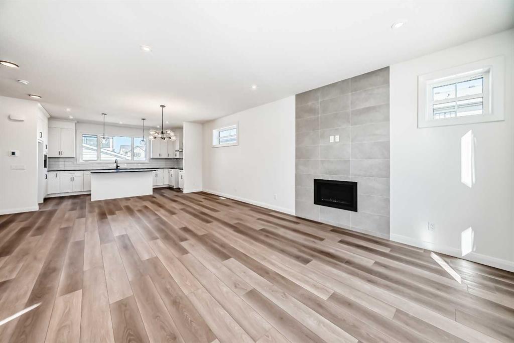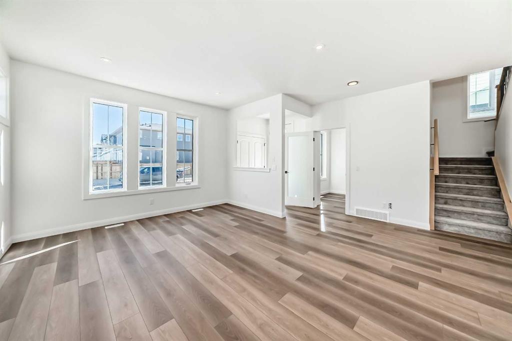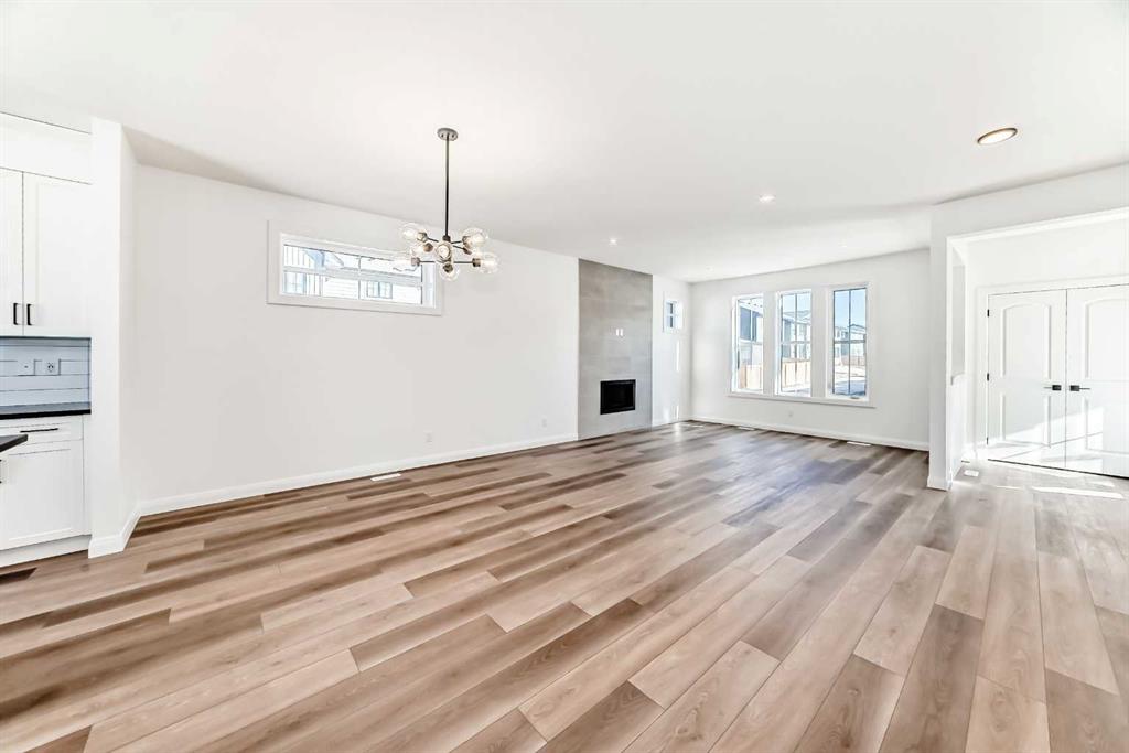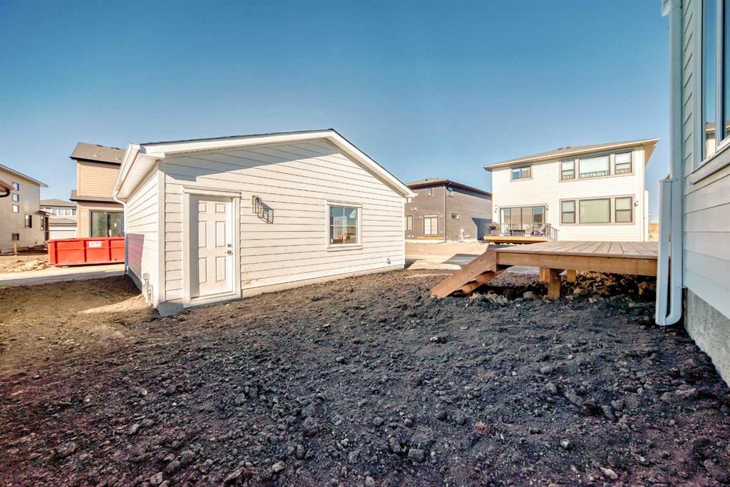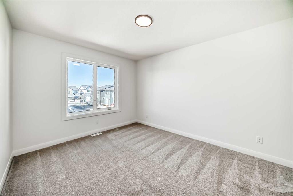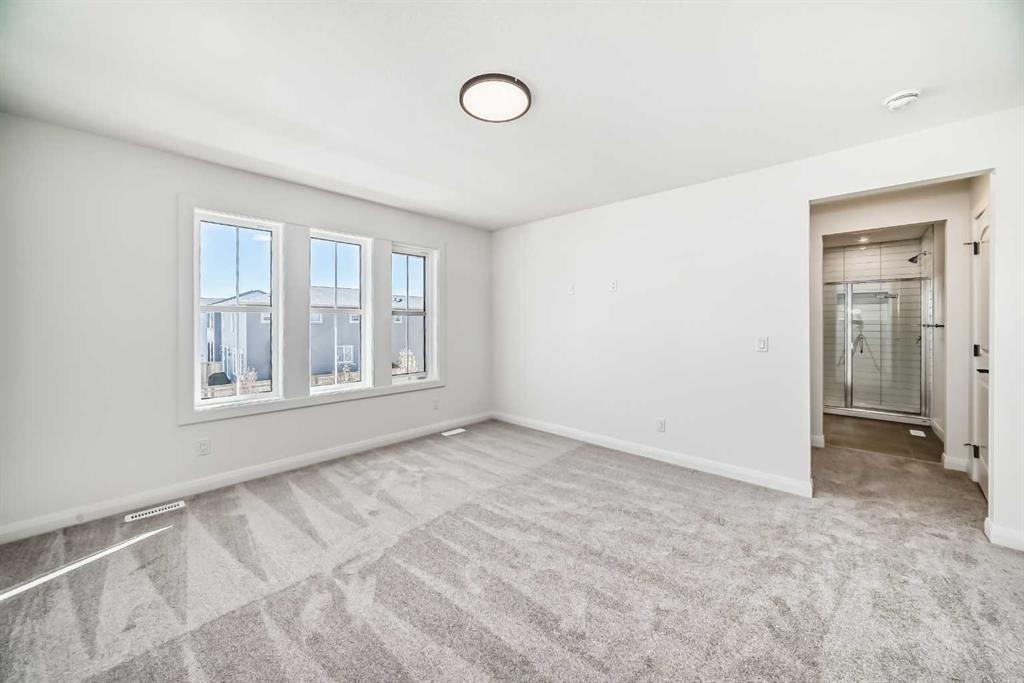Brand new and move-in ready! This 2,082 sq. ft. Broadview Homes build blends timeless style with thoughtful upgrades. The main floor offers a flexible front room ideal for an office and a sunlit living room with a stylish gas fireplace. The bright white kitchen features quartz counters and 42" upper cabinets finished to the ceiling with crown moulding. The stainless-steel appliance package includes a gas range, dishwasher, hood fan, and built-in microwave. A large walk-in pantry keeps everyday essentials organized. Upstairs you’ll find three bedrooms and two baths, including a primary retreat with a walk-in closet with a window and a luxurious 5-piece ensuite with double vanity, soaker tub, and roomy tiled shower. The lower level features 9' ceilings and is unfinished, ready for your design, with rough-in for a future bathroom. The west-facing backyard offers a 10' x 18' deck and a concrete sidewalk to the oversized double garage, providing ample parking and storage. Additional perks include rough-in for central vacuum. Set within Harmony, a sought-after lake community and bedroom community of Calgary, you are moments from parks, pathways, golf, and everyday amenities.