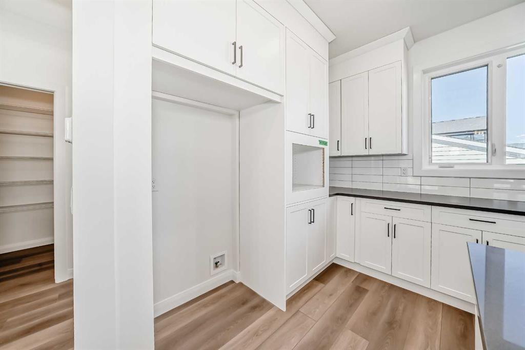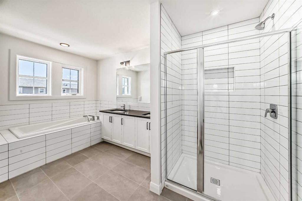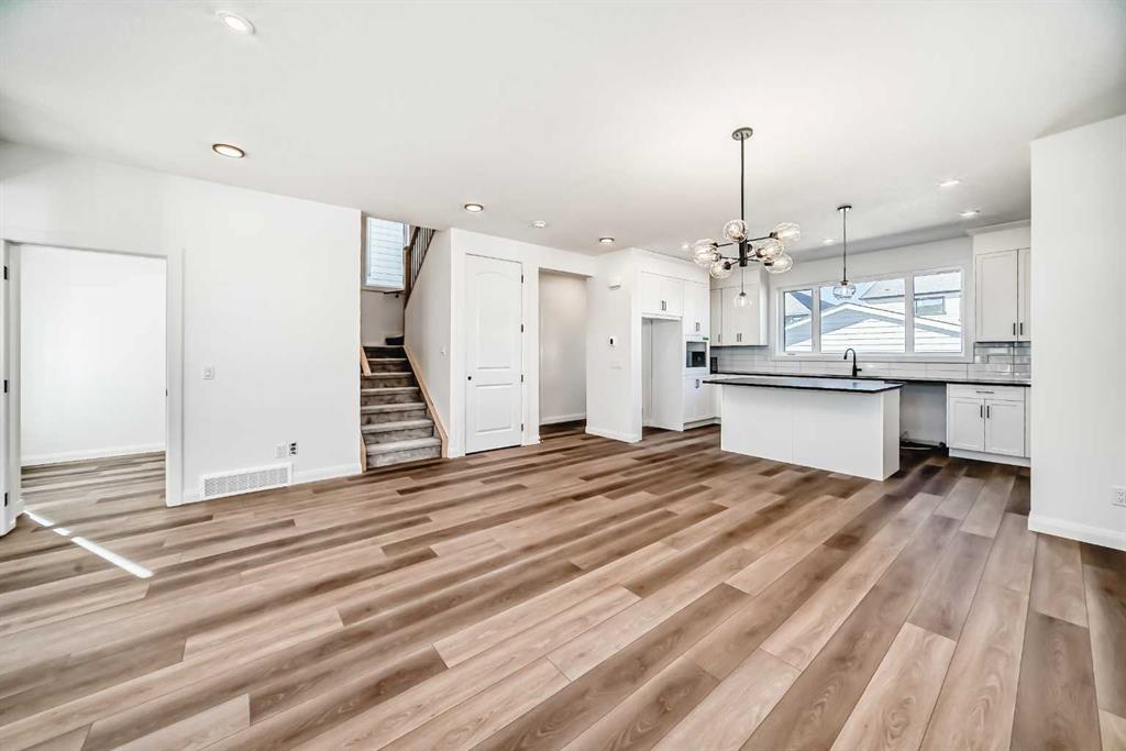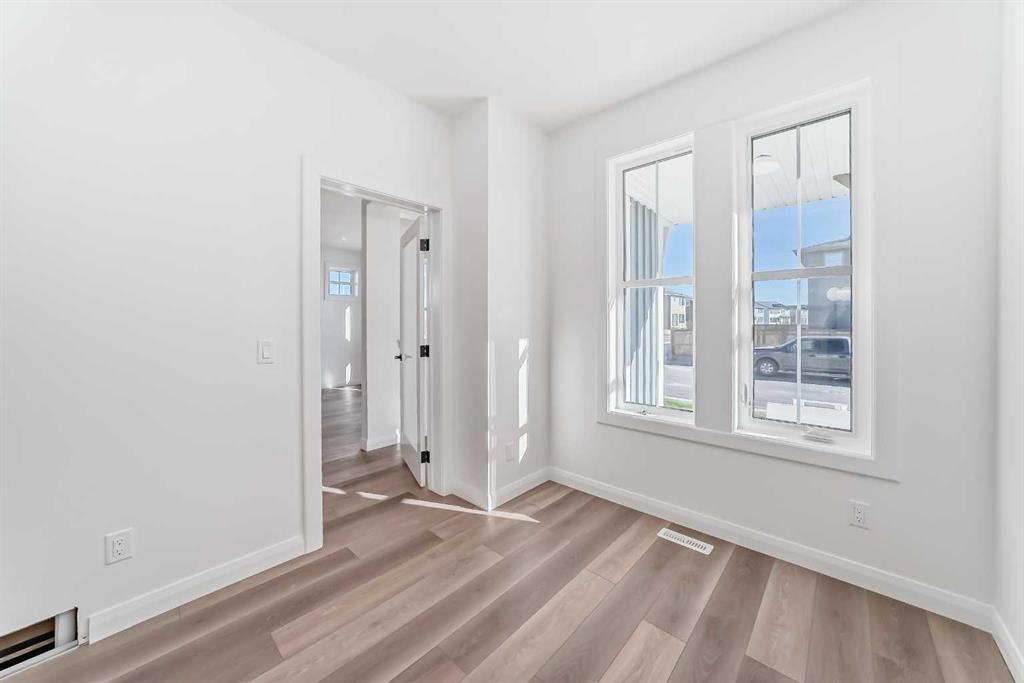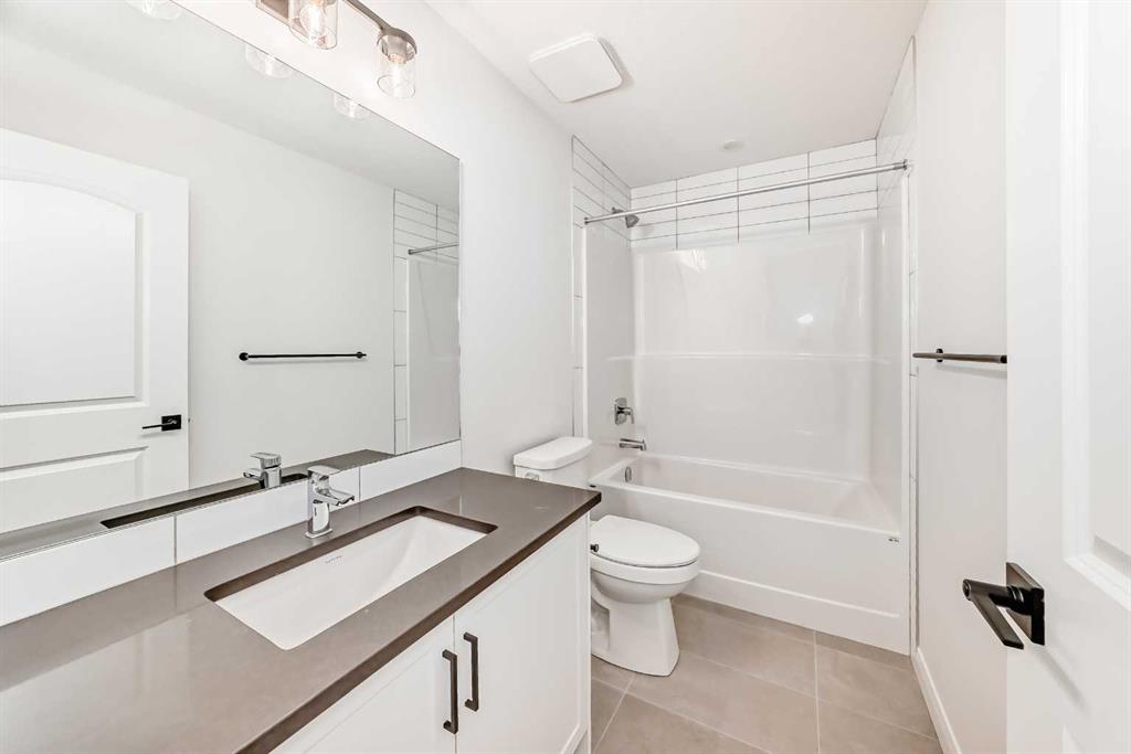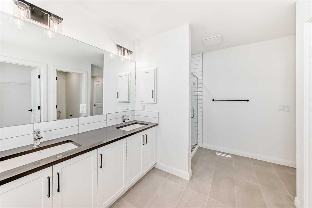 Brand new and move-in ready! This 2,082 sq. ft. Broadview Homes build blends timeless style with thoughtful upgrades. The main floor offers a flexible front room ideal for an office and a sunlit living room with a stylish gas fireplace. The bright white kitchen features quartz counters and 42" upper cabinets finished to the ceiling with crown moulding. The stainless-steel appliance package includes a gas range, dishwasher, hood fan, and built-in microwave. A large walk-in pantry keeps everyday essentials organized. Upstairs you’ll find three bedrooms and two baths, including a primary retreat with a walk-in closet with a window and a luxurious 5-piece ensuite with double vanity, soaker tub, and roomy tiled shower. The lower level features 9' ceilings and is unfinished, ready for your design, with rough-in for a future bathroom. The west-facing backyard offers a 10' x 18' deck and a concrete sidewalk to the oversized double garage, providing ample parking and storage. Additional perks include rough-in for central vacuum. Set within Harmony, a sought-after lake community and bedroom community of Calgary, you are moments from parks, pathways, golf, and everyday amenities.