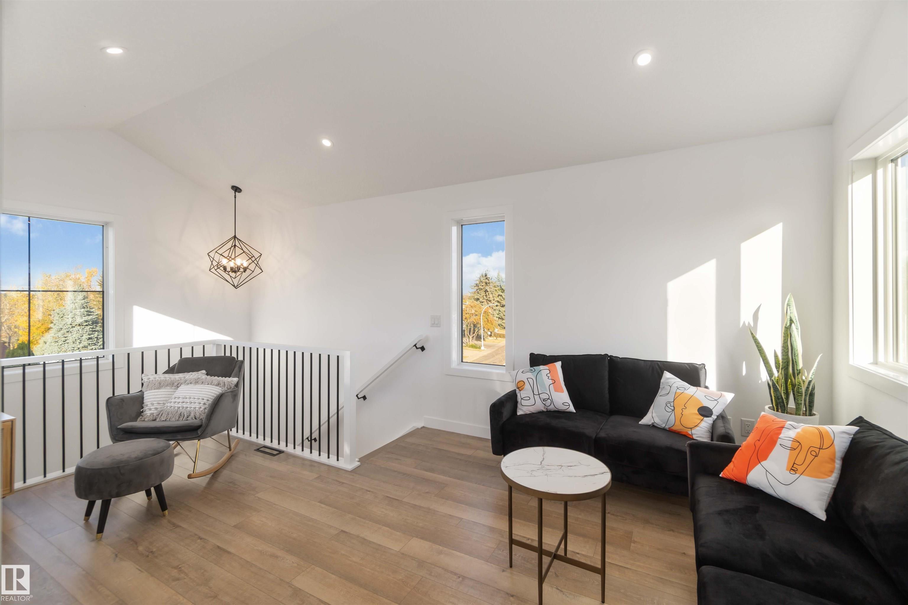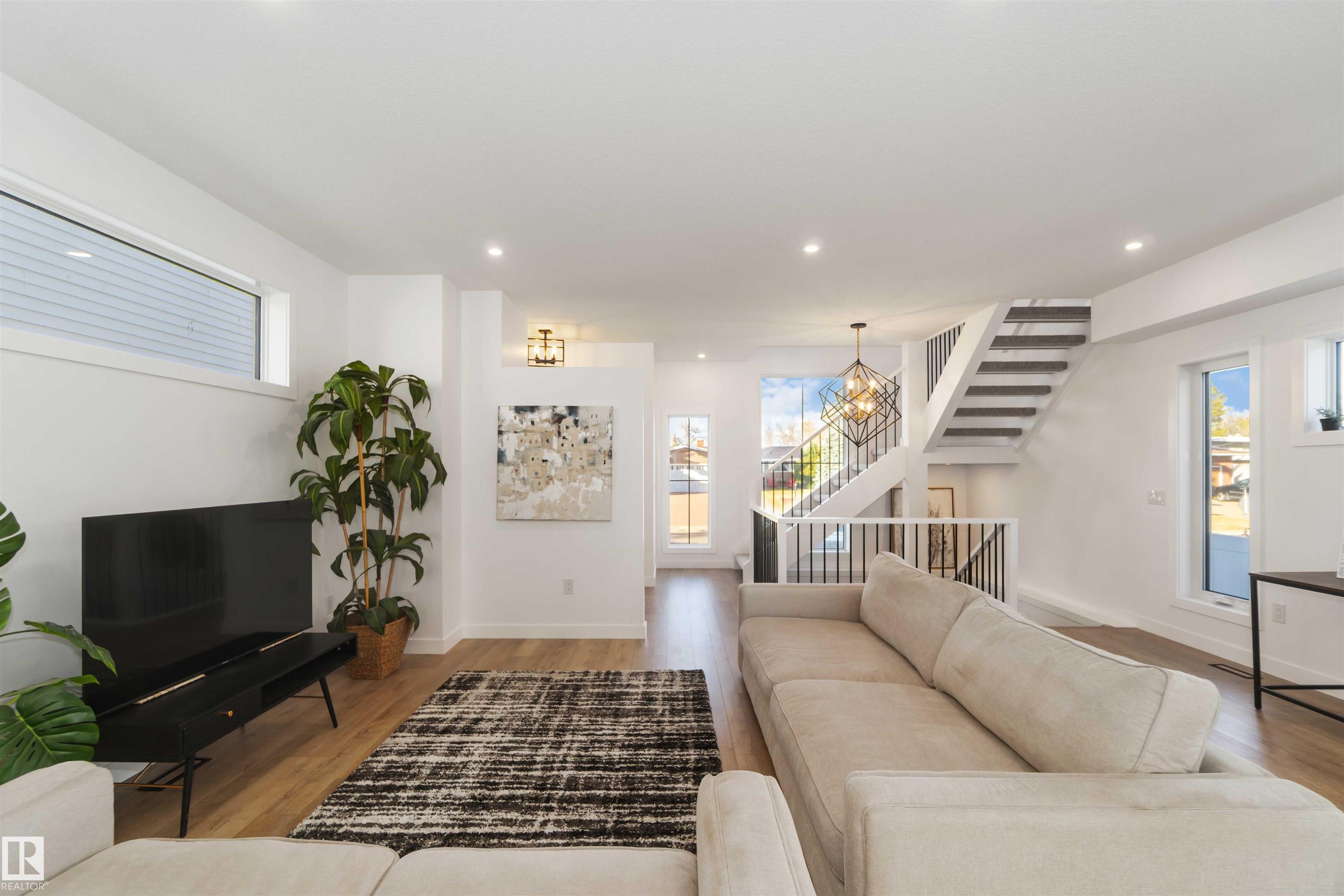 PRICED PERFECTLY. This is one of Edmonton's finest locations in the best part of Forest heights. With 5 beds, 5 baths, and nearly 3,281 sq ft of finished living space, including a FULLY FINISHED BASEMENT. Enjoy downtown views from your ROOFTOP PATIO and immediate access to scenic walking trails right outside your door. With PREMIUM FINISHES throughout, The chef’s kitchen boasts a large island, gas range, stainless steel appliances, and a walk-in pantry, flowing seamlessly into the spacious living room. Up a floor, the primary suite features a spa-inspired ensuite and walk-in closet, along with two additional bedrooms. The showstopping third floor offers a private entertainment space with wet bar and bathroom. The basement adds two more bedrooms, a full bath, and a generous bonus room. There is also an oversized double garage, rear patio and 843 square foot yard! Home is certified green built and under Alberta New Home Warranty. A/C included.
