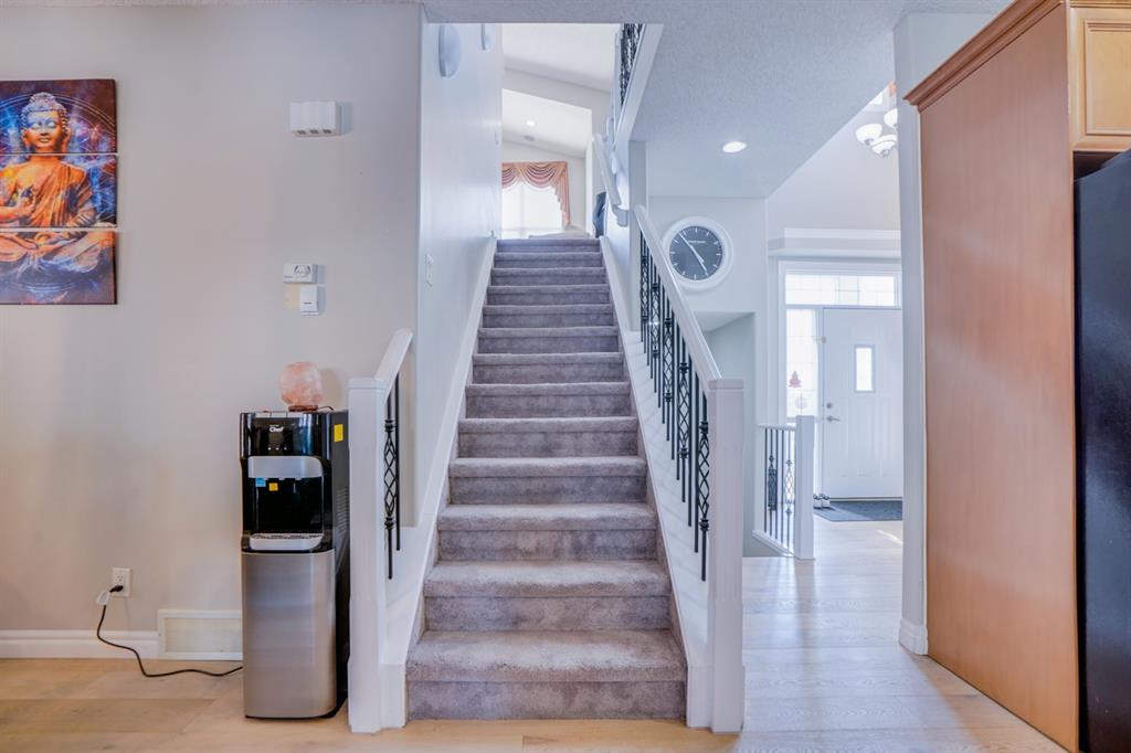Welcome to 77 Saddleland Drive NE! This beautifully appointed, fully developed home featuring timeless design and exceptional functionality. From the moment you step inside, you’ll appreciate the open-concept floorplan, soaring 9 ft ceilings, and an abundance of natural light throughout. The main level showcases a gorgeous maple kitchen with premium granite countertops, a bright and inviting living room, and a charming dining area. A double-sided fireplace with custom built-ins adds warmth and elegance to the space. Iron spindle railings lead you upstairs to an impressive open-to-below foyer and a bright, vaulted bonus room complete with a built-in desk and integrated speakers—perfect for work or relaxation. The spacious primary bedroom offers a well-appointed ensuite, complemented by two additional generously sized bedrooms and a full 4-piece bathroom. The lower level features a well-designed one-bedroom illegal suite, ideal for extended family or potential rental income. Outside, the home is fully landscaped and fenced, with a great deck for summer BBQs. A double front-attached garage completes the package. Located within walking distance to Saddletowne Circle, C-Train access, shopping, and schools, this home offers outstanding convenience in a family-friendly community. Don’t miss this fantastic opportunity!