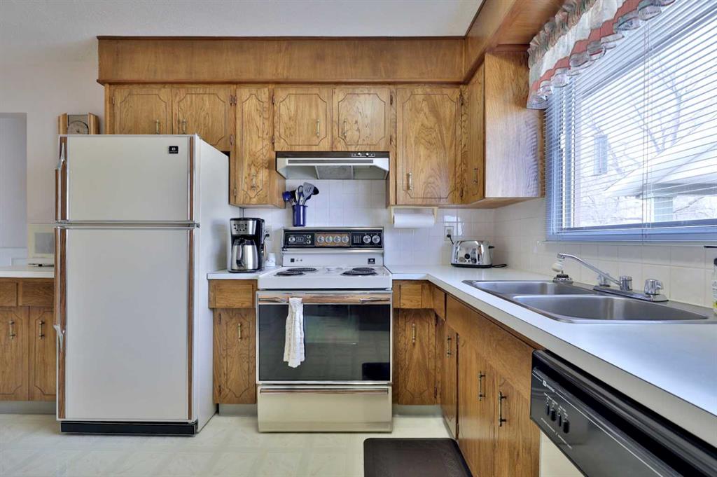 COME ... make this home your own! This tudor style Century Meadows home has 1220 sq ft, a double attached (& insulated) garage and ready for the next family to claim it. When you enter this home, you'll find a generous living room with wood-burning corner fireplace, a designated dining area and then a spacious kitchen. There are 3 bedrooms (the primary bedroom has double closets and a 2 pc. washroom) as well as the main bath. Downstairs you'll find a wet bar area, family room, a craft or work-out room, 3 pc. washroom (shower needs some TLC) and the utility/laundry room. Out back, you'll find a concrete patio area and then a side yard to the north. There's also an extra parking spot too. Come and see how you can make it your own, just like this family did for the last 37 years.