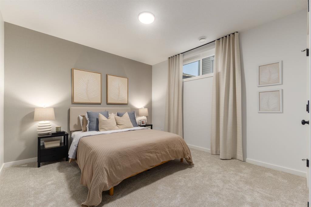 This former Show Home exudes grandeur in every detail, with meticulously chosen materials curated to create an atmosphere that captivates from the moment you enter. Inspired by modern Scandinavian design, it embraces cozy hygge vibes while offering the space and functionality families desire today. The main floor welcomes you with soaring 10-foot ceilings and an airy, open layout that feels both warm and impressive. At its heart is a beautifully upgraded kitchen, finished to the ceiling with crisp white cabinetry, quartz countertops, a brand-new stainless steel appliance package, and a spacious walk-in pantry. The open-concept design flows seamlessly into the living room, where a modern fireplace creates both a stylish focal point and a sense of comfort. A large dining area overlooks the private backyard, with glimpses of the rolling hills beyond. Completing this level is a flexible room that can adapt to your needs — whether as a home office, guest bedroom, mudroom, or playroom. Upstairs, 9-foot ceilings and expansive windows flood the home with natural light. Double doors lead to the serene primary bedroom, a true retreat featuring a spa-inspired ensuite with dual vanities, a soaker tub, and a generous walk-in closet. In the opposite wing, two additional bedrooms — each with their own walk-in closet — share a well-appointed family bath. A convenient laundry room is thoughtfully designed to keep life organized. At the center of it all sits a dramatic bonus room with a vaulted ceiling and striking blue feature wall, perfectly suited for movie nights, games, or quiet relaxation while also offering a natural separation between the primary suite and secondary bedrooms. The lower level continues the sense of openness with 9-foot ceilings and a beautifully executed side entrance, providing the a space for in-laws. A dedicated wellness room and a spacious recreation area enhance the lifestyle appeal, while an additional bedroom and full bathroom make this level ideal for guests, older children, or extended family. Outside, mountain-inspired architecture with timber accents blends seamlessly into the surroundings. With full landscaping and a finished deck already complete, this turnkey home is ready to be enjoyed from the moment you arrive. Nestled in Southwest Calgary, the community of Sirocco offers everything from scenic golf course views to vibrant local amenities and over 5 km of connected pathways. Honoring its heritage while embracing modern convenience, Sirocco is a place where rolling foothills and nearby trails bring the peace of country living within easy reach of the city. Don't miss on experiencing this spectacular well thought out home.