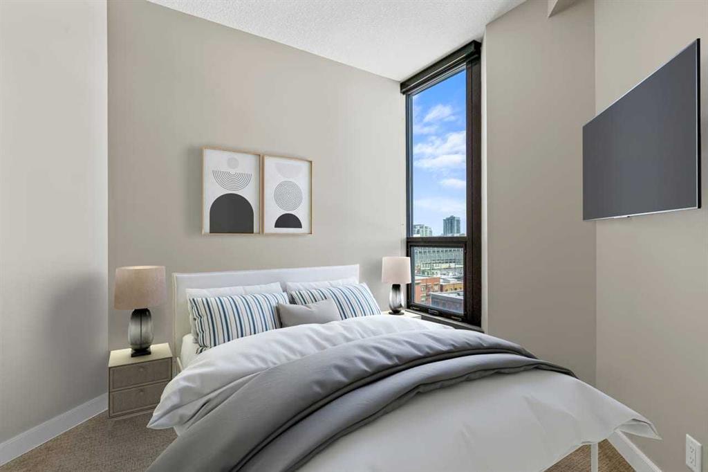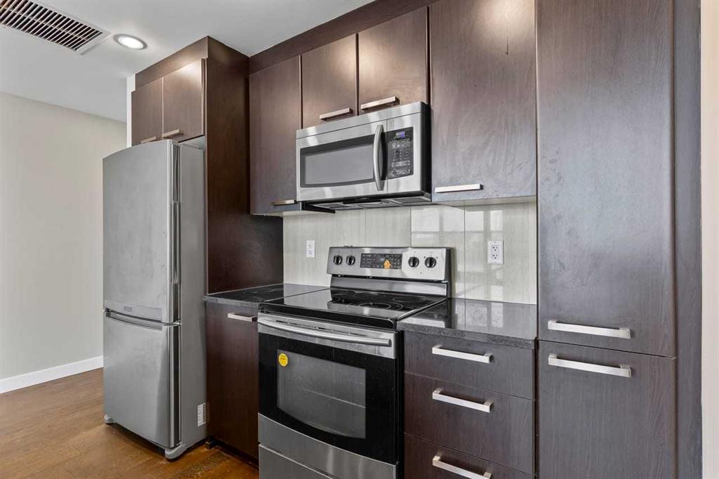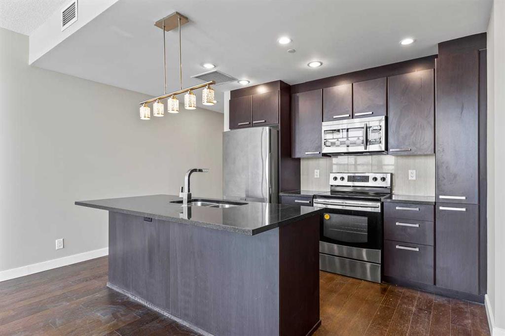 INVESTOR ALERT!!!! Great location, steps away from Stampede LRT, 17 Ave, Saddledome, Sunterra, Downtown and more. This is a low-maintenance unit, and it's been rented from day 1. Modern style open concept with large windows. Cozy unit with engineered hardwood floors, granite countertops and stainless steel appliances. Private access to Sunterra Market, great amenities with complete and high-end exercise machines and weights, hot tub, party room and guest suite. Underground parking and roof patio. Book your private showing.