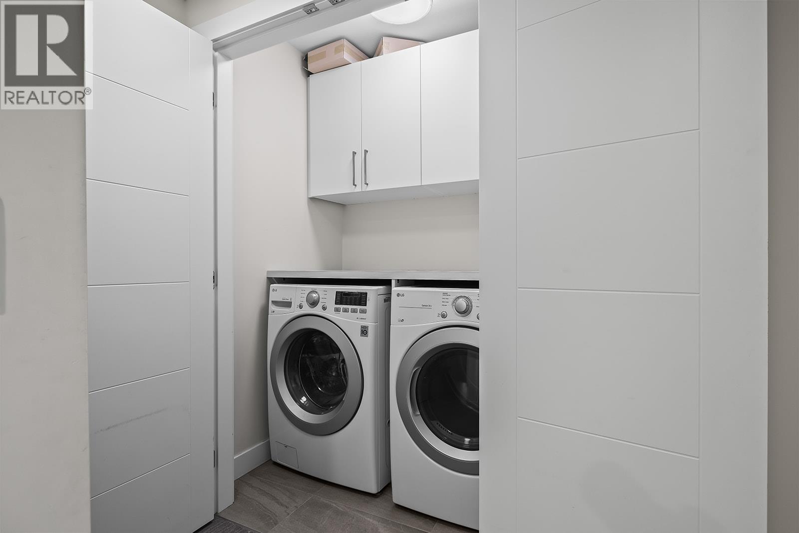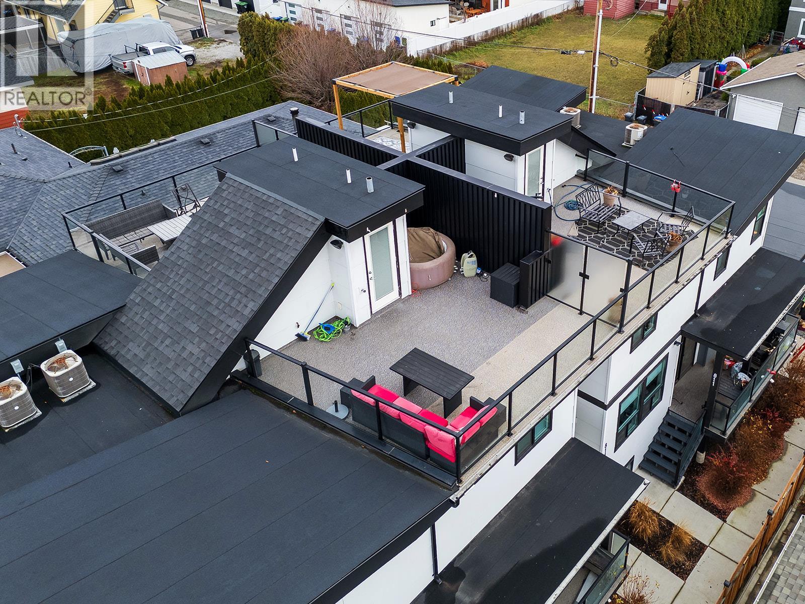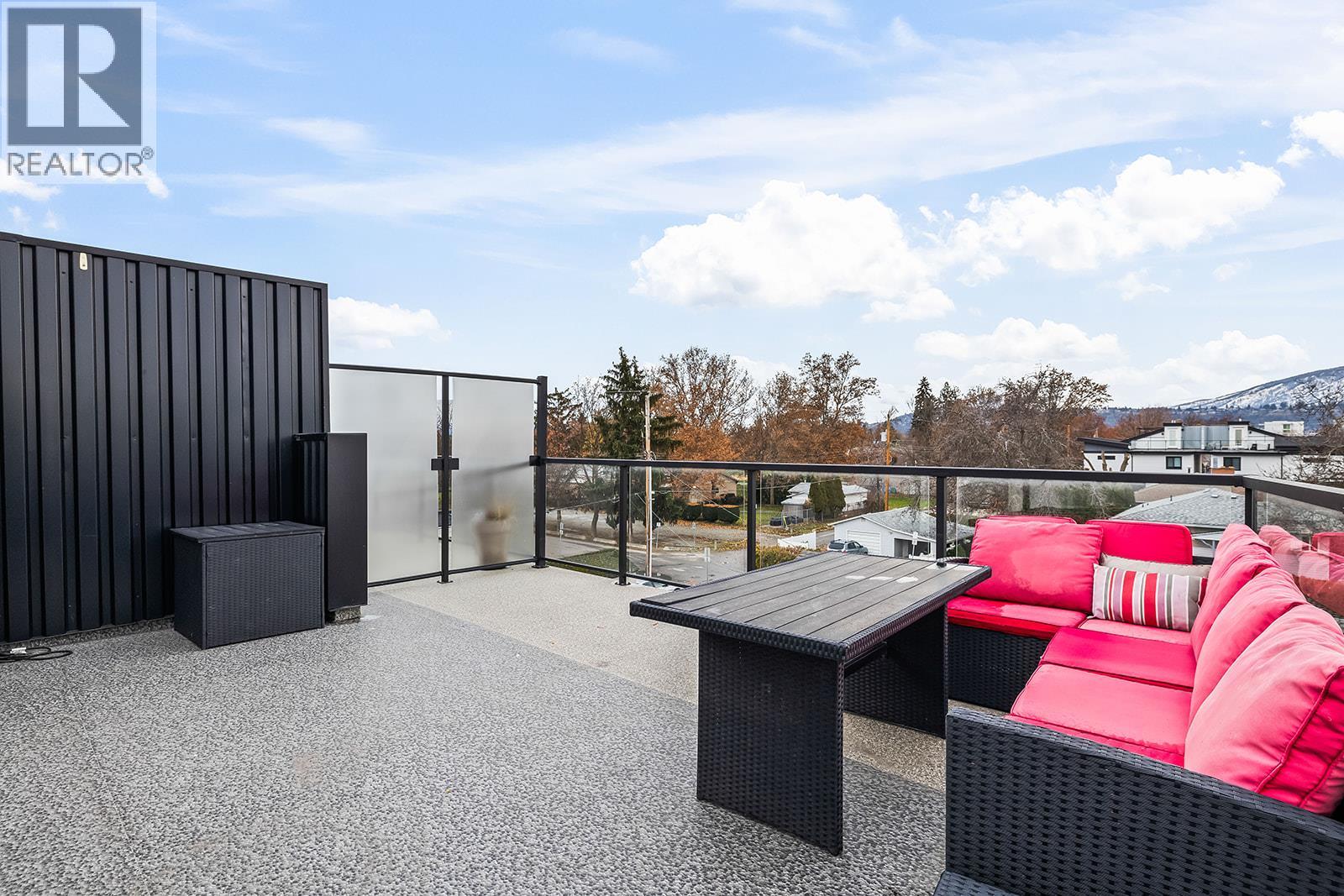 Stunning contemporary style townhome located in desirable South Kelowna - just a short walk to the beach, hospital, and South Pandosy shopping. 4-plex design with low strata fees & high-end finishings. Fantastic outdoor space featuring private roof top deck which is engineered for a hot-tub and plumbed for gas barbeque, plus there is a main floor side yard deck. 2 storey design unit with 2 beds, 2 baths and laundry on the 2nd floor. Open main floor with oak hardwood floors, built-in dining room bar with wine fridge, island kitchen with high quality stainless steel appliances including 5 burner gas range, plus half bath. Lower level consists of a large rec room which could be converted into a den plus a flex room. This level also features a full bathroom. Quality upgrades include quartz counter-tops, engineered hardwood floors, 3 zone home audio system, tank-less hot water heating frame-less glass shower, epoxy garage floor with glass/aluminum garage door. No rental or pet restrictions & low strata fees! Fantastic location, gorgeous designs and high-end finishings!
