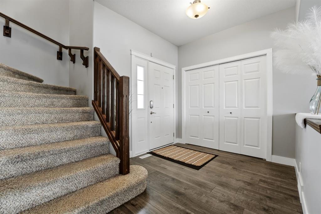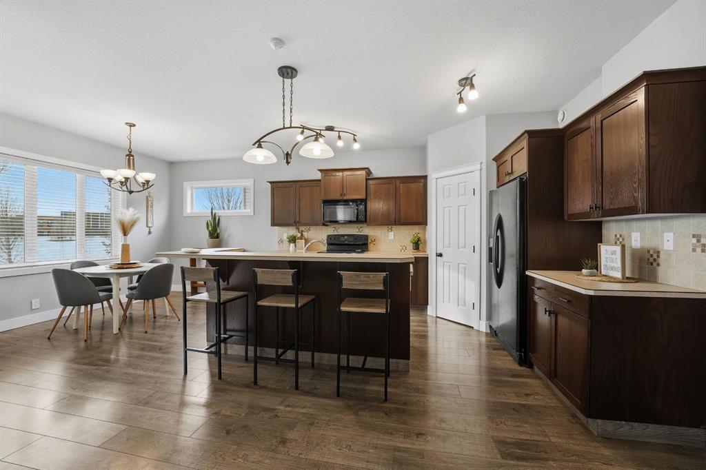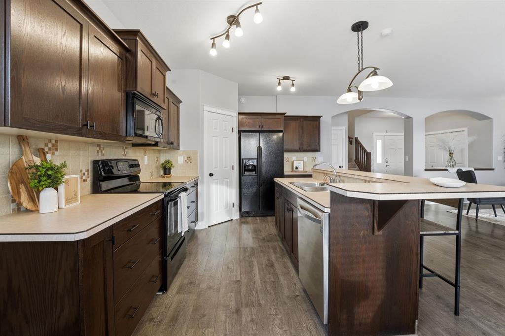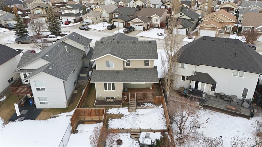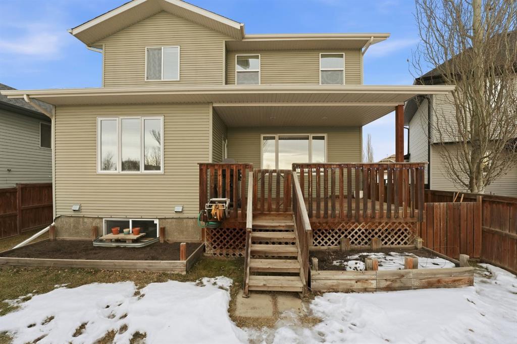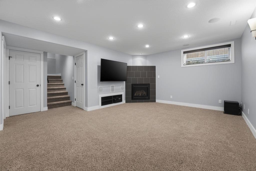 Welcome to this beautifully maintained two-storey home tucked away on a quiet close in desirable Kingsgate, backing onto a large green space. Offering nearly 2,000 ft of living space, 4 bedrooms, and 3.5 bathrooms, this home delivers exceptional space, functionality, and long-term value in a family-friendly setting. The bright, open main floor is filled with natural light and creates a warm, welcoming atmosphere. The layout flows effortlessly through the kitchen, dining, and living areas, making it ideal for both everyday living and entertaining. This level also features a 2-piece bathroom and a convenient mudroom with built-in storage, thoughtfully designed for daily use. Upstairs includes a large bonus living area, upper-floor laundry, two bedrooms, a 4-piece bath, and a spacious primary suite with a 4-piece ensuite, walk-in closet, and additional storage. The fully finished basement expands the living space and includes a gas fireplace, recessed lighting, built-in sound system, and an additional bedroom. A versatile flex room provides excellent potential for a home office, music studio, or recreation space, along with additional storage. Outside, enjoy a covered deck, BBQ gas line, tiered landscaping, and a patio area perfect for evenings around the fire. Additional highlights include RV parking, back alley access, and an attached double garage with custom built-in storage. This home has been meticulously cared for and clearly reflects pride of ownership throughout. Recent updates include air conditioning (2022), shingles (2018), hot water tank (2018), and updated paint and trim (2021). Conveniently located close to schools and quick highway access, this property truly checks all the boxes for comfortable family living.
