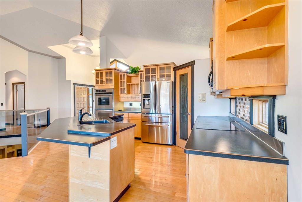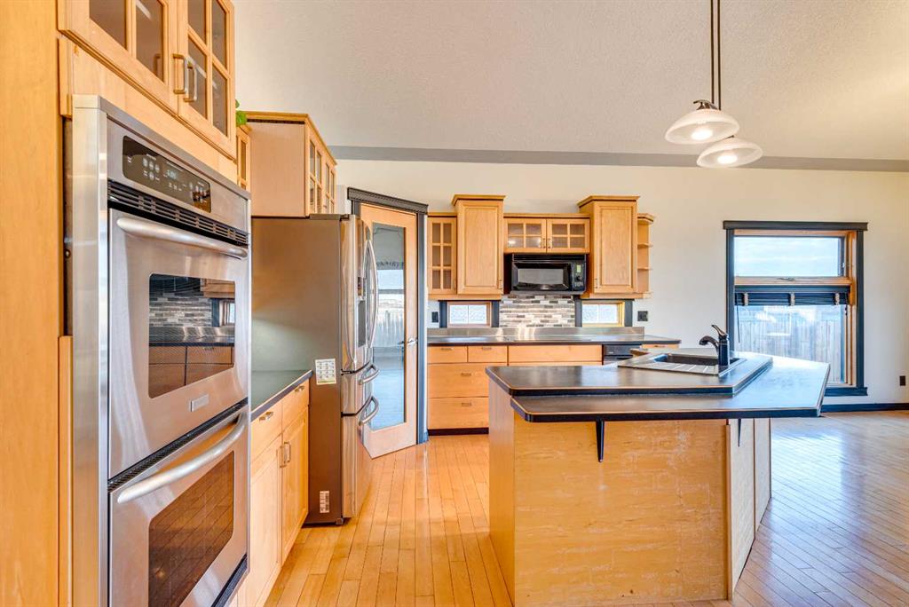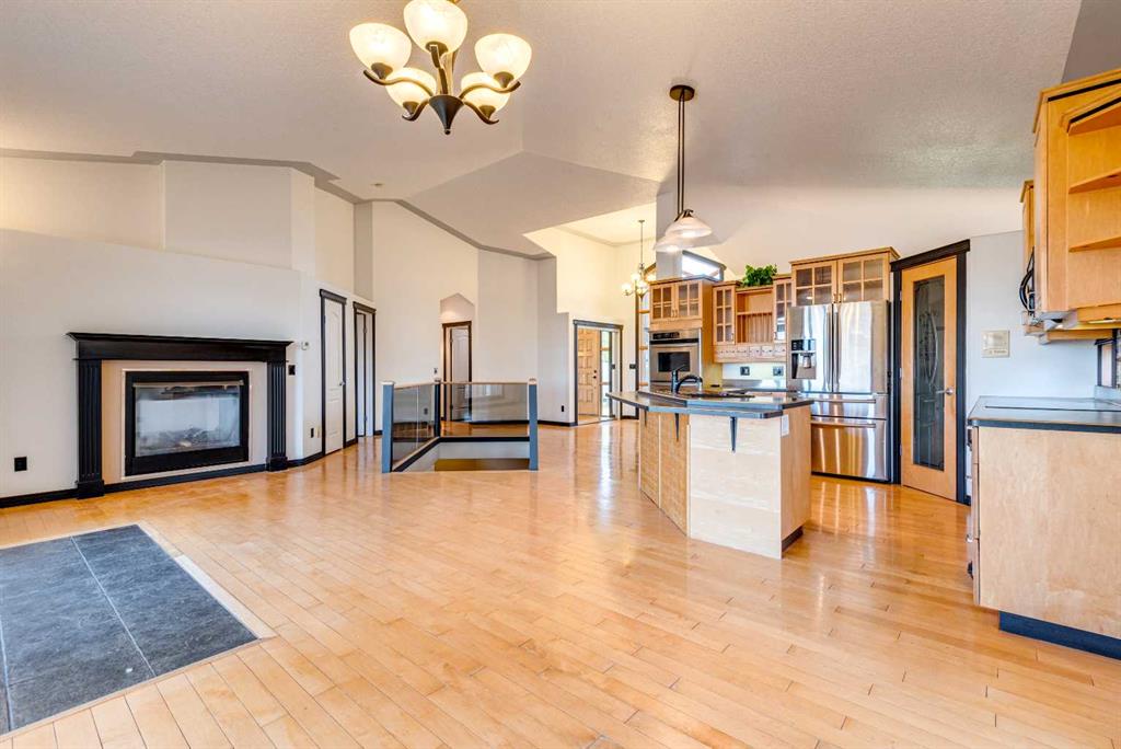 Looking for the perfect combination of classic style, modern comfort, and convenient bungalow living—all designed with your family in mind? Your search ends here! From the moment you step through the oversized, majestic front door, you’ll feel the open, spacious design of this exceptional home. The large, bright kitchen offers open views of the backyard and open fields behind featuring dual ovens, an island with sink, and a handy breakfast bar with open concept dining and family room - ideal for family meals, entertaining or everyday living. Guests will love relaxing in the formal living room with its own fireplace, while the fully developed lower level with high ceilings provides an expansive rec/family room with fireplace and games area, and plenty of space for family fun. This home features 4 bedrooms (the primary retreat features a fireplace, ensuite, and walk-in closet), 3 bathrooms, hardwood floors, and 3 fireplaces (including one double-sided). The triple heated garage—with a convenient drive-through bay—adds practicality, while the exposed aggregate driveway and sidewalks complement the curb appeal. The large, fully fenced backyard offers space to relax, play, and entertain. This home truly has it all—style, comfort, and thoughtful design in every detail.
