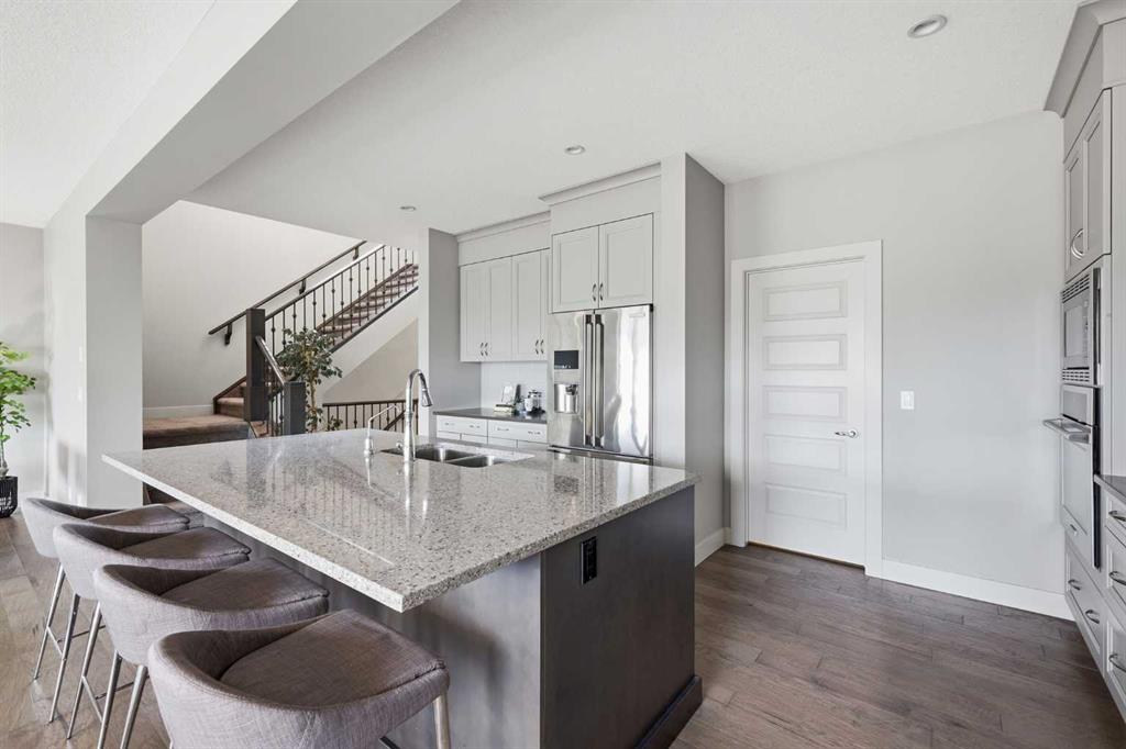 Welcome to Panorama Hills! Offering over 3500sqft of finished living space, this beautifully finished 5-bedroom, 4.5-bathroom home checks every box for discerning buyers seeking room to grow without compromise. The thoughtfully designed main floor features an executive home office — ideal for today's hybrid lifestyle — alongside open living and dining spaces that flow effortlessly for both everyday living and entertaining. Upstairs, you'll find four generously sized bedrooms, including a primary suite with ensuite, a spacious secondary ensuite, and two more secondary bedrooms. The cozy bonus room perfect for a media space, playroom, or homework hub. With 3.5 bathrooms on the upper level alone, morning routines are never a battle. The walk-out basement extends your living space with a private fifth bedroom and full bathroom — a perfect retreat for guests, a teenager, or extended family. Set on a prime lot backing directly onto green space with no rear neighbours, this home offers the rare gift of privacy and nature right outside your back door. Large windows throughout the rear of the home capture beautiful morning sun, flooding the living spaces with natural light and making every day feel like a fresh start. The original owners take great pride in ownership that shows in the updates and maintenance throughout the property. NOTABLE MENTIONS: New roof, soffits, and eavestroughs (2025) | New garage door (2025) | Hot water tank (2023) | Water softener | Central AC (2021) | Roughed in for built-in speakers Conveniently close to main roads, this home is easily accessed through Stoney Trail, 14 Street, and Panatella Blvd. For young families, the home is minutes away from Buffalo Rubbing Stone School (K-5), Captain Nichola Goodard School (6-9), and North Trail High School (10-12). The neighbourhood is bustling with young families and cannot wait to welcome the next homeowners - that could be you!