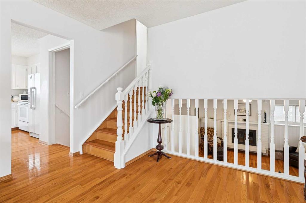 **Open house Sat April 18 from 2-4pm, and Sunday April 19 from 12-2pm** In the desirable community of Edgemont, this 4-level split offers 1,866 sq ft of developed living space with a functional layout. The living room showcases a large bay window that fills the space with natural light, complemented by beautiful oak hardwood flooring. A dedicated dining area offers ample space to accommodate a full-sized table and hutch. The kitchen features an eat-in dining area along with plenty of counter space for everyday living. Upstairs, the spacious primary suite includes a three-piece ensuite. Two additional bedrooms and a full bathroom complete this level. Down from the main floor you’ll find a generous sized recreation room that is open to the main floor, with a cozy wood-burning fireplace and the same hardwood flooring, creating a warm and welcoming atmosphere. This level also includes an additional bedroom and full bathroom, with convenient access to the backyard. The basement remains unfinished, offering a blank canvas for your future development needs. Outside, the backyard provides a perfect setting for summer enjoyment, with mature trees offering shade while still allowing for plenty of sunshine. There is a double detached garage and the charming curb appeal of this home is enhanced by a decorative window box at the front of the home. The home has a rubber sidewalk – perfect for Calgary winters (and spring)! The furnace is a year old. The home is a 12 minute walk to Edgemont School, with Tom Baines and Sir Winston Churchill High School an easy drive away. The home is also close to Nose Hill Park for the outdoor enthusiasts! This home must be viewed in person to be appreciated, book your showing today!