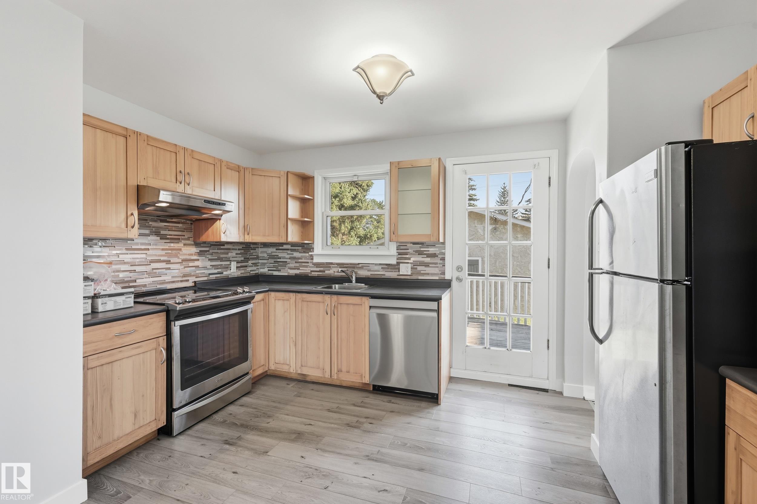 **This is HOME**Centrally located UPDATED character home in Idylwylde! This bungalow sits on a corner lot and offers an open concept living space with a large backyard and fully finished basement. As you enter the bright living room it will make you feel right at home; few steps down is a small yet elegant dining area just steps from the kitchen. Kitchen looks out onto the backyard and offer plenty of counter space for cooking; 3 bedrooms and renovated full bath complete the main floor. The basement has a separate entrance for potential income suite and has received some updates including new flooring and paint; it offers 2 bedrooms, full bath, living room and laundry room. This property has RV parking, a large gazebo for late night hang outs and a double detached garage with plenty of extra parking. Walking distance to new LRT line and Bonnie Doon Mall. Located on a mature street with easy access to downtown and Whyte Avenue.