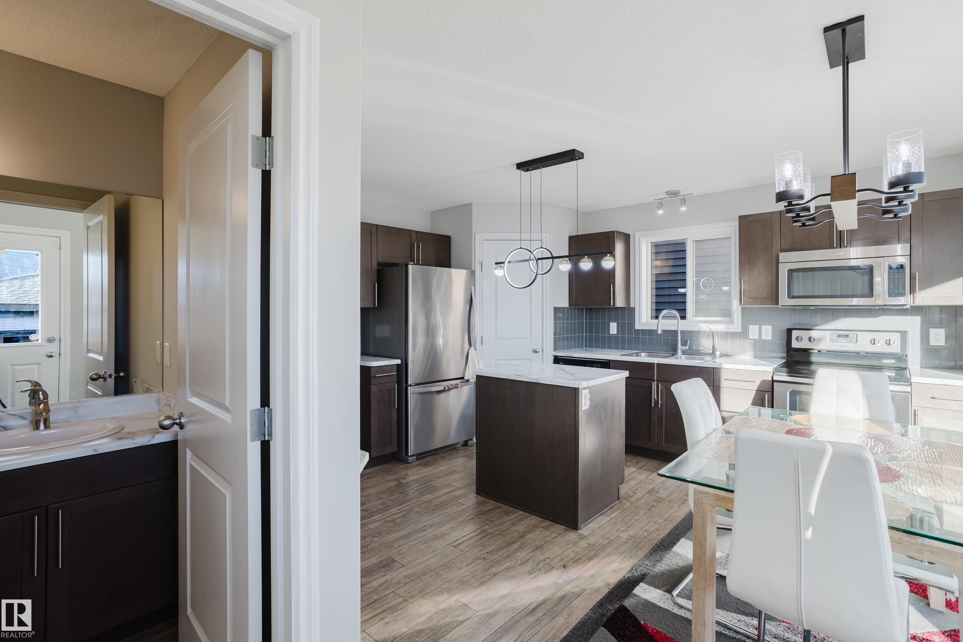 Welcome to this well-maintained 2015-built 2-storey detached home in the sought-after West Edmonton community of Rosenthal, offering 3 spacious bedrooms, 2.5 bathrooms including a primary ensuite and a generous walk-in closet, an open-concept main floor with plenty of natural light, and an extended detached garage with high ceilings—perfect for extra storage, a workshop, or larger vehicles. This home provides efficient use of space and low-maintenance living, all within a vibrant neighbourhood known for parks, trails, and family-friendly amenities, with easy access to schools, shopping, and major roadways. A fantastic opportunity for first-time buyers or families seeking a modern, versatile home in a growing community.