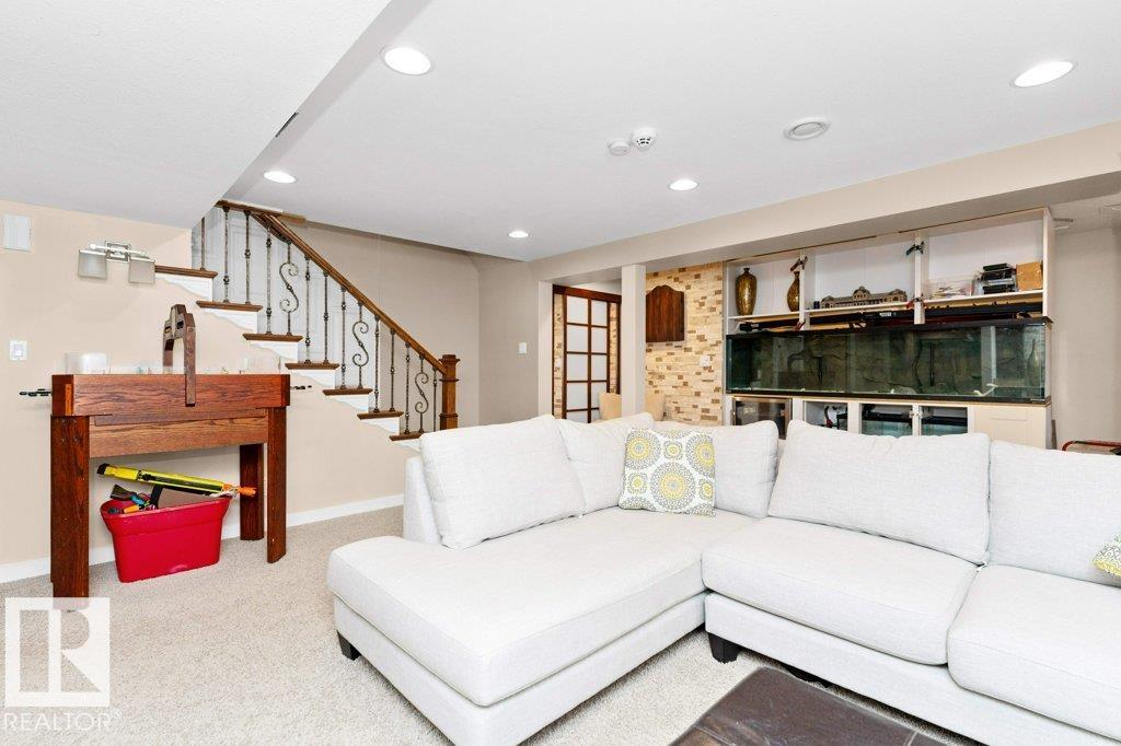 Welcome home to this significantly renovated 4-bedroom, 4 bathroom, 2500sqft property in Twin Brooks, featuring a heated double attached garage and newer asphalt shingles for worry-free living. Enjoy custom touches like a black walnut bench, gleaming hardwood floors, elegant porcelain tile, + wainscotting. The fully renovated kitchen is the star with gorgeous custom cabinets, premium Wolf gas stove, and Dacor fridge. Main flr layout includes a spacious den, living rm, family rm, and dining rm. The fully developed bsmt offers extra space for family + entertainment, including a theatre rm! Retreat to your private pie-shaped yard with mature trees + hot tub, ideal for quiet evenings. Upgr incl: newer 3-pane windows, Hardie Board siding, eaves and downspouts, newer furnace + water tank, and A/C. The mstr suite is lrg and boasts a freshly renovated ensuite w/tile shower + soaker tub. Located on the right side of the tracks and just steps from the future LRT, this home combines comfort, style, and convenience!