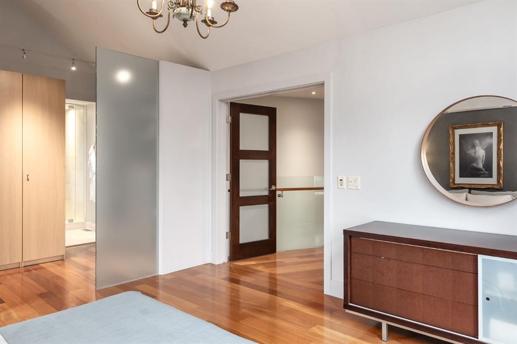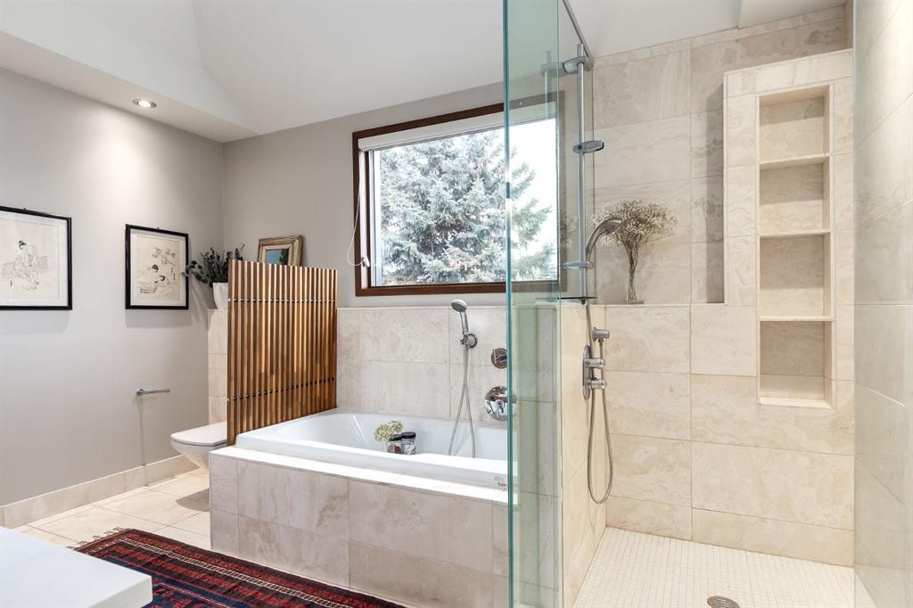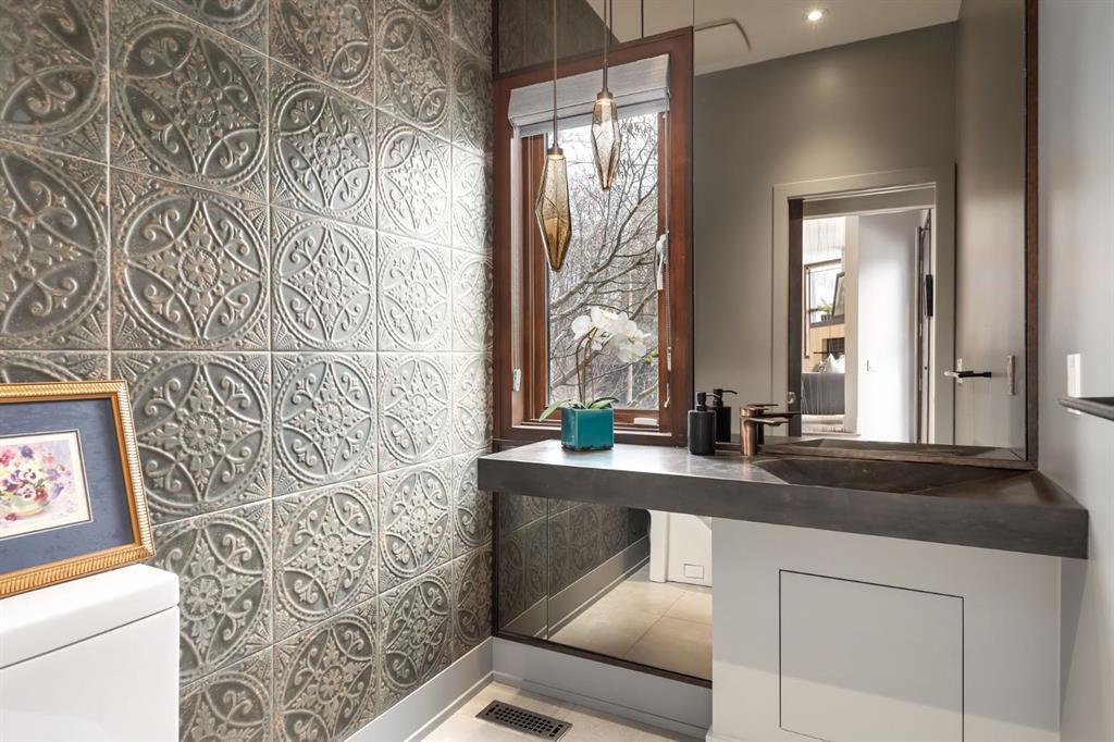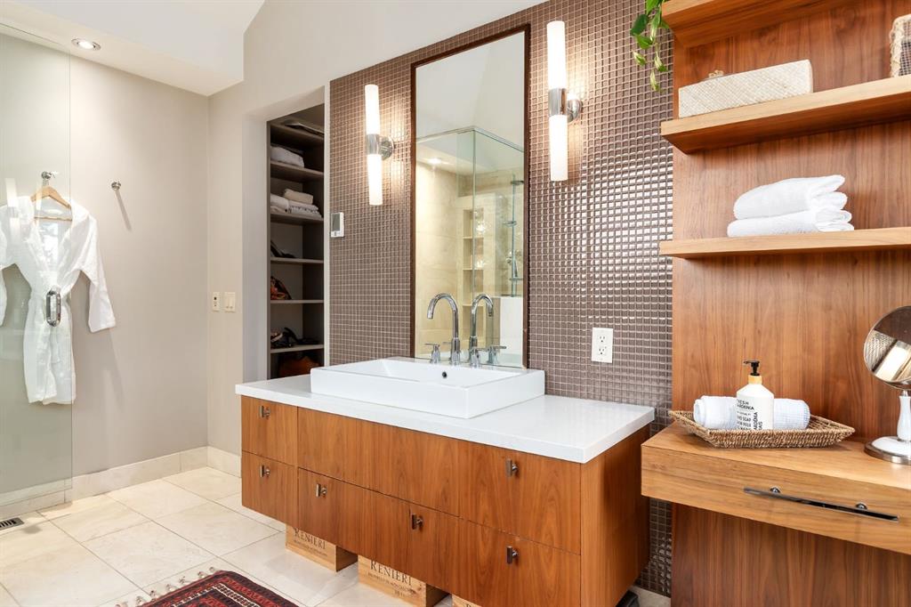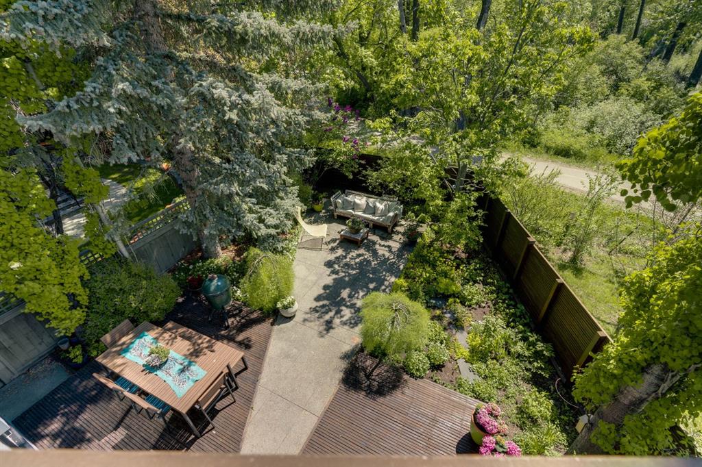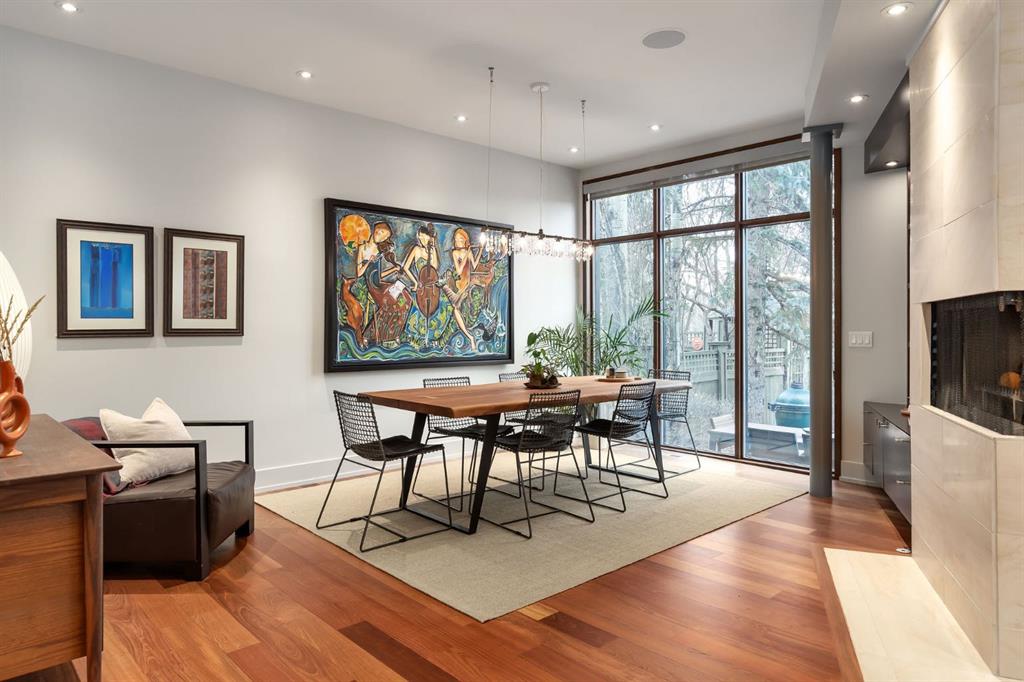 A rare offering nestled along Rideau Road - combining history, nature, and modern luxury— a prized river & park adjacent location. Opportunities like this in Rideau Park are few and far between, making this home a truly one-of-a-kind find. Inside, Brazilian cherry hardwood floors set the tone for timeless elegance. The main floor is designed for both connection and privacy, with a central glass staircase anchoring the layout. Enjoy the front library/den, an elegant living room, or dining with a view of the trees. The Porcelanosa kitchen is a showpiece—flooded with natural light and overlooking the park and river. Outfitted with a full Miele appliance package, induction cooktop with hidden hood, beverage center, walk-in pantry, and Porcelanosa finishes, it’s both functional and striking. A floor-to-ceiling window and wood-burning fireplace create a warm dining atmosphere. Upstairs, the southwest-facing primary retreat offers vaulted ceilings, a private balcony with river views, spa-like ensuite with natural stone, walnut cabinetry, heated floors, soaker tub, walk-in shower, and custom wardrobe system. Two additional bedrooms complete this level—one with cheater ensuite and steam shower, the other with rare river views. The finished basement includes a gym, rec room, 4th bedroom, full bath, laundry with sink, storage, and access to the front attached garage. The backyard flows seamlessly into one of Calgary’s most scenic parks, with the Elbow River Pathway just outside your door. Whether for morning jogs or evening strolls, this location is unmatched for lifestyle and connection to nature. Rooted in legacy, Rideau Park is one of Calgary’s most prestigious communities, once home to CHCT-TV’s first studios. Rarely do homes of this caliber on Rideau Road come to market—this is more than a home, it’s a once-in-a-generation opportunity to own a piece of Calgary’s history in an irreplaceable location.