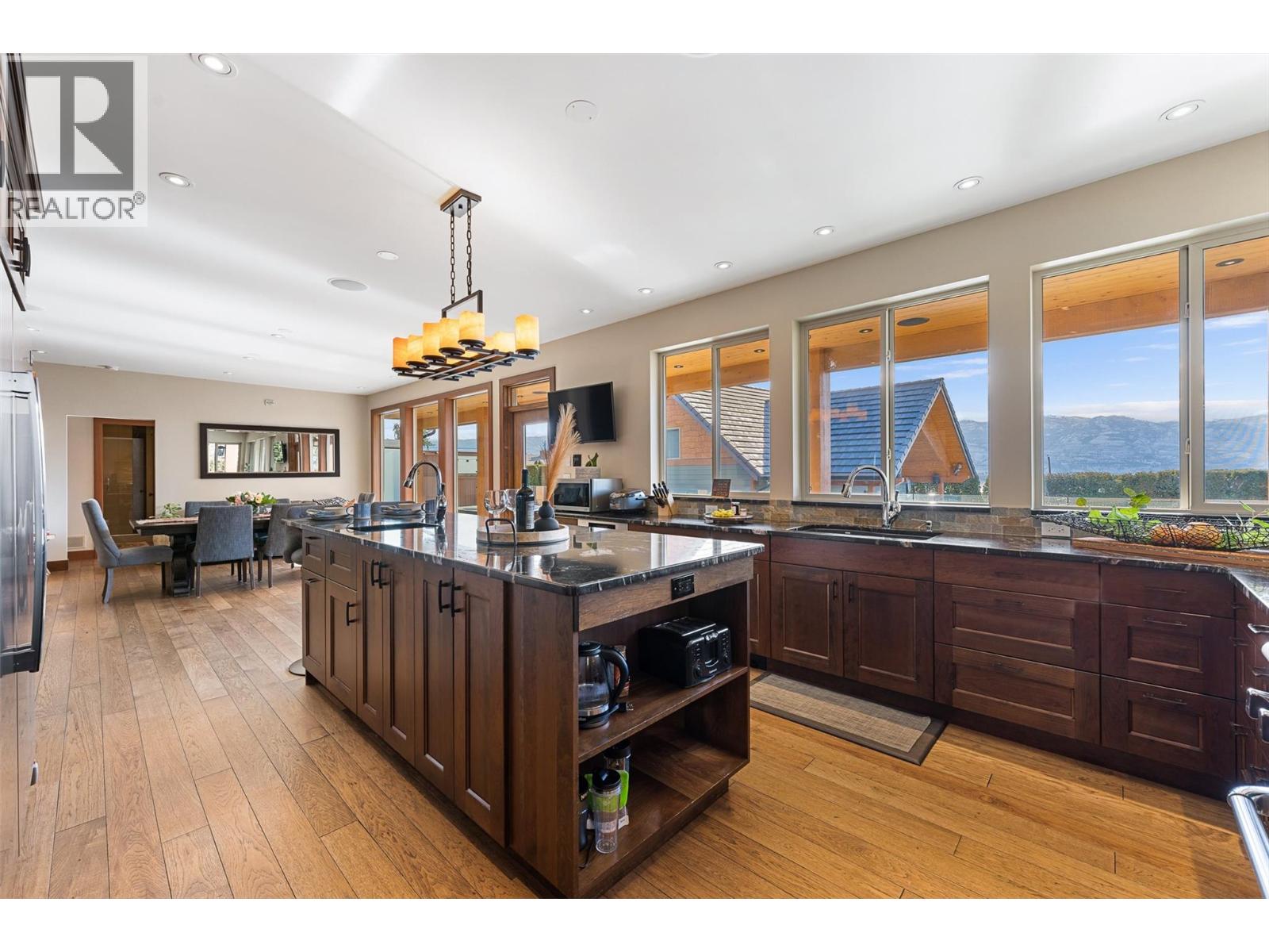 Set on a private 0.36-acre lot in the heart of West Kelowna’s wine country, this West Coast Craftsman offers an exceptional blend of luxury and versatility. Framed by stone, cedar and fibre cement, the home showcases strong architectural lines, soaring ceilings and quality finishes, hickory plank hardwood, cherry and bamboo cabinetry, fir doors and premium quartz and granite throughout. Designed for gathering, the main level opens to a chef’s kitchen with titanium black granite, Culinarian 6-burner gas range, Miele steam oven and expansive island, all flowing seamlessly to dining and living spaces with in-ceiling audio and Lutron lighting. A covered patio off the dining room extends to an spacious covered deck with a hot tub. The backyard features a saltwater sports pool and multiple lounge areas surrounded by stamped concrete, cedar privacy hedging and wired, covered patios with wood inlay ceilings, speakers and gas hookups, crafted for effortless entertaining. Upstairs, the primary suite is a sanctuary with fireplace, private covered deck and spa-inspired steam ensuite. Three additional beds complete the upper level. A suite above the garage offers income or guest flexibility, while the detached pool house, with bed, bath, kitchenette and separate garage/workshop, adds rare multigenerational potential. With RV parking, wine cellar, climate control systems and walking access to Boucherie Road’s trail, wineries and beaches, this is refined Okanagan living.