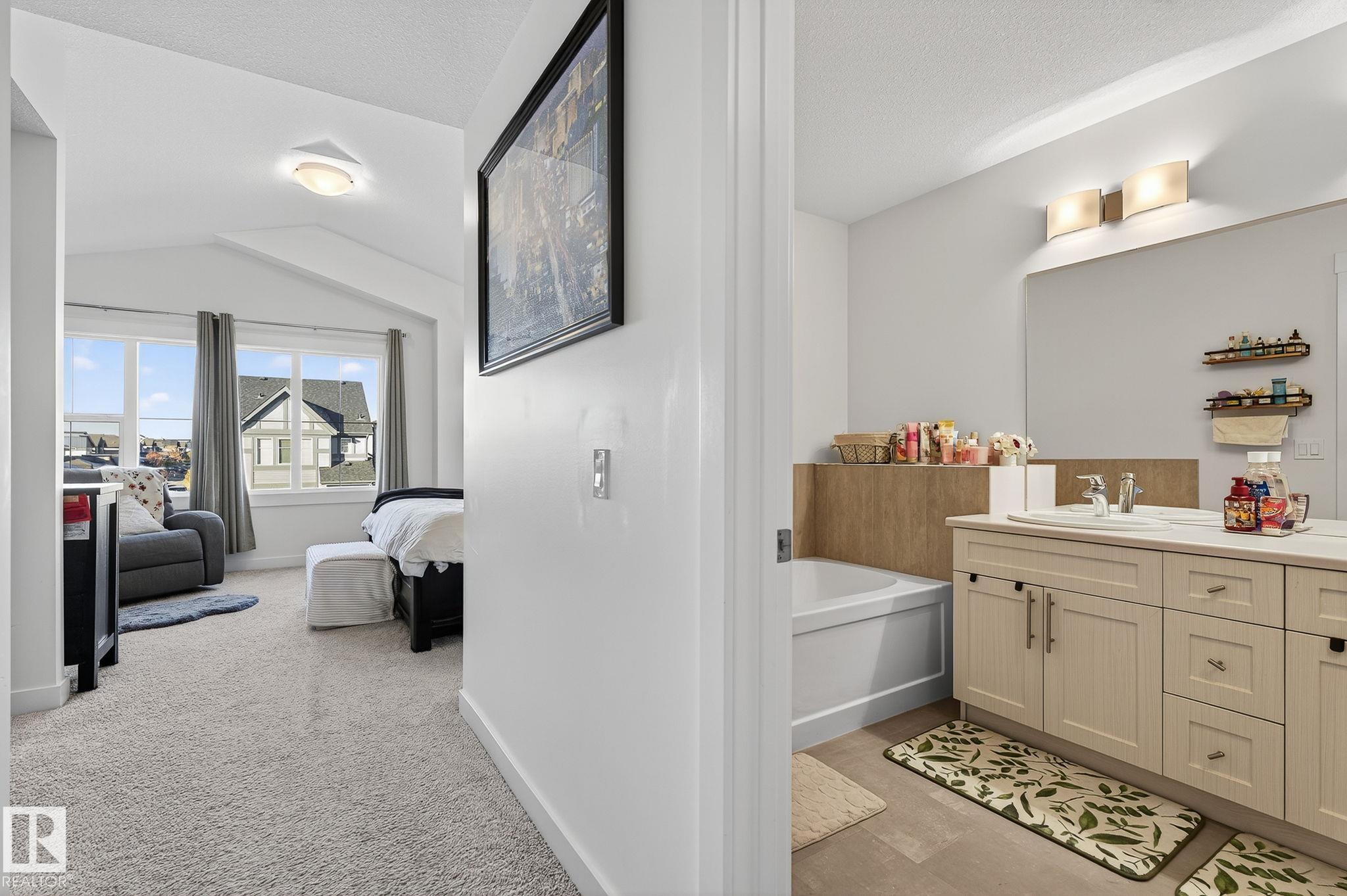 Exceptional Value in Secord! This beautiful 3+1 bedroom, 3.5 bath home by award-winning City Homes Master Builder offers designer finishes and family-friendly functionality. The bright open-concept main floor with 9FT CEILINGS features a chef-inspired kitchen w/ quartz counters, massive island, deluxe built-in stainless appliances, gas cooktop & a massive professional double door fridge/freezer. Enjoy the convenience of AIR CONDITIONING, a walk-through pantry, large foyer, and back entry with built-in closet. Upstairs you’ll find two spacious bedrooms, laundry, a versatile den/OFFICE or playroom & a luxurious primary suite w/ vaulted ceiling, fireplace, oversized walk-in closet & a spa-like 5-pc ensuite with his & hers sinks & deep soaker tub. The FULLY FINISHED BASEMENT includes a rec room, 4th bedroom/gym, full bath, and even a custom rock climbing wall! Outside, relax on your large deck in the landscaped yard. Don't miss this stylish, move-in-ready home that truly has it all!