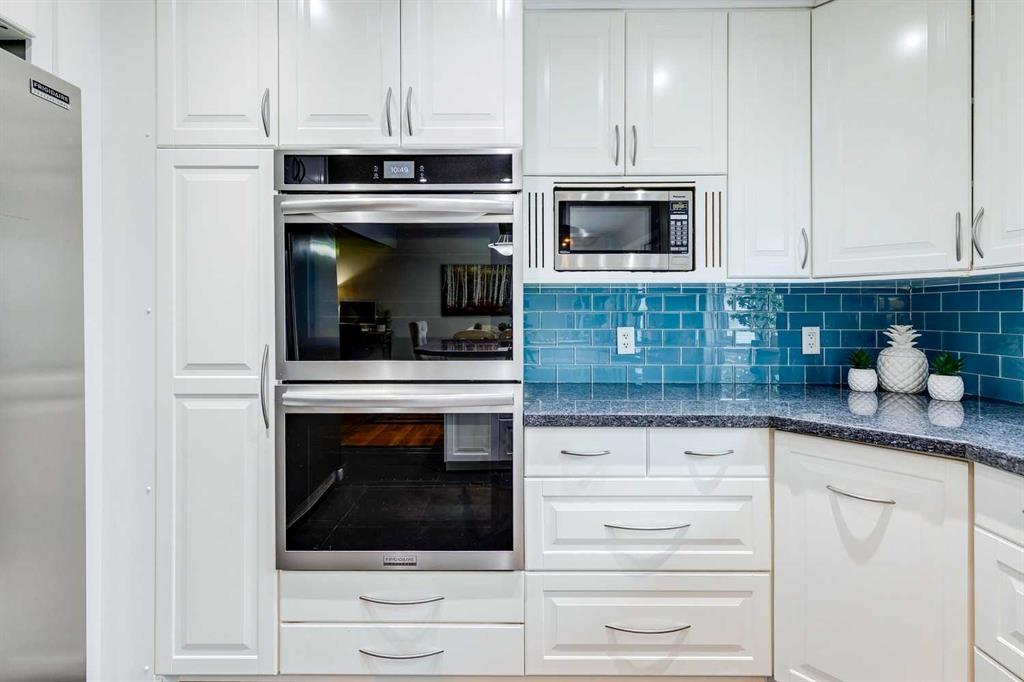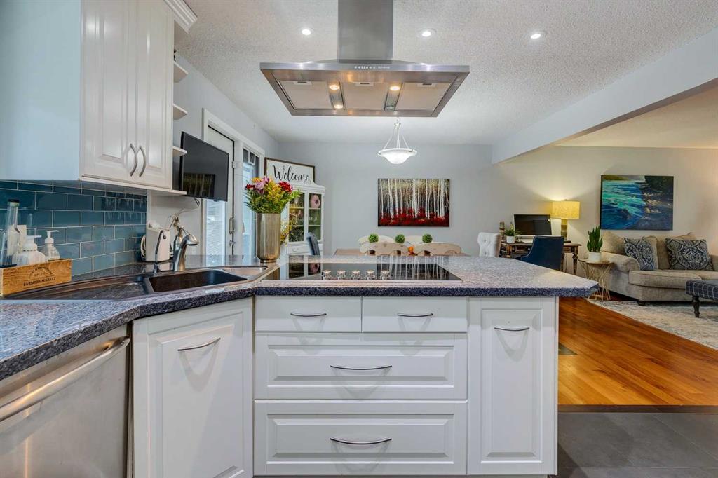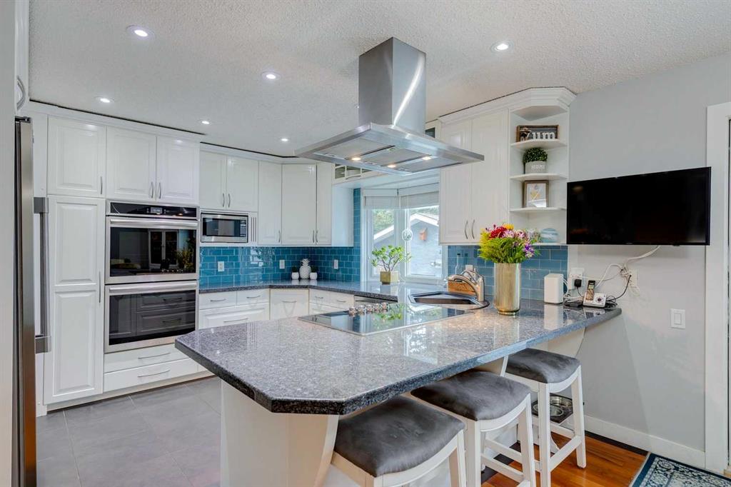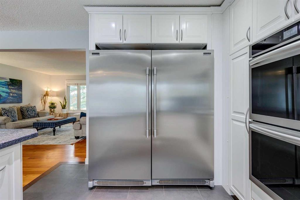 Nestled in the highly sought-after community of Oakridge, this beautiful bi-level home offers the perfect blend of comfort, style, and convenience. Surrounded by mature trees, scenic pathways, off-leash parks, and a warm neighbourhood atmosphere, this open plan home is ideal for families, professionals, or anyone seeking a suburban lifestyle on a larger lot. The stunning kitchen is sure to impress with white cabinetry, granite countertops, and premium appliances including a Side-by-Side fridge/freezer, dual wall ovens, R/O system, 5 burner cooktop, and chimney hood fan. A breakfast peninsula provides a casual dining space, while the adjacent dining area with inlaid hardwood floors opens to the new tiered composite rear deck and stone patio—perfect for entertaining or enjoying peaceful evenings outdoors in the fully fenced West facing yard. The inviting living room features a large picture window overlooking the green space, filling the home with natural light. The primary bedroom includes a private 2-piece ensuite, while two additional bedrooms share an updated 4-piece family bath. Downstairs, the fully developed lower level offers a spacious family room with a cozy gas stove fireplace, a 4th large bedroom, den, 3-piece bath, open pantry under the stairs, storage room with plenty of shelving and a dedicated laundry room. Recent updates include central A/C, triple-pane windows, newer doors, updated soffits and eaves, and a newer furnace. The oversized heated double garage and RV parking pad provide ample space for vehicles and storage. New exposed aggregate sidewalk and an underground sprinkler system complete this lovely home. Located within walking distance of the Glenmore Reservoir, South Glenmore Park, and Heritage Park, this property offers endless opportunities for recreation and family outings. Enjoy convenient access to the new Costco, shops, and restaurants, while the Oakridge Community Centre enhances the neighbourhood with activities such as soccer, hockey, tennis, pickleball, and other community programs. Commuting is effortless with easy access to Stoney Trail, Southland Drive SW, and 90 Avenue. Nearby top-rated schools include Louis Riel, Nellie McClung, and John Ware Schools. This is your opportunity to own a beautiful family home in one of Calgary’s most established and desirable communities—a place where comfort meets connection.