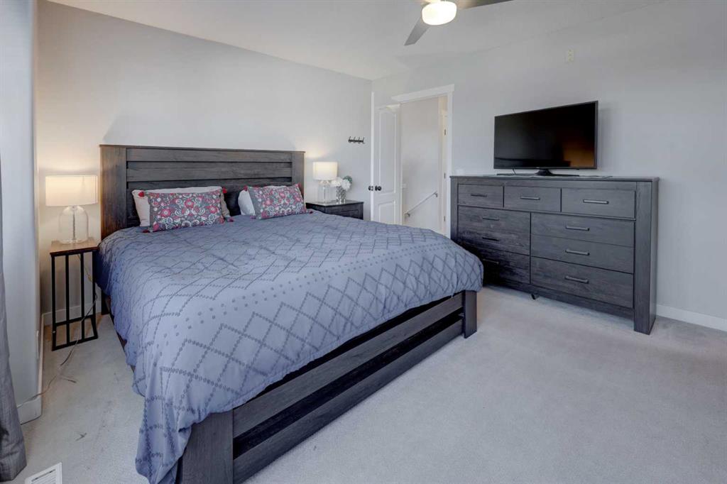 Welcome Home to this well cared for & modern feeling home - perfect for young & growing families! Stonegate is a wonderful, family friendly community offering walkability to Superstore, restaurants & everything north Airdrie has to offer, including the TriSchool site - k to 12 learning in either English or French! This fully finished home shows pride of ownership throughout & big ticket items already taken care of - FURNACE is 2 years old & HOT WATER TANK is 4 years old. Walk up your front drive and note the timeless stonework, covered front veranda & storm door. You are greeted by a spacious foyer w/soaring ceilings & soft, muted modern paint colors throughout. Off to your right is the half bath updated w/modern floors & colors & your MAIN FLOOR LAUNDRY. OPEN CONCEPT main floor living is highlighted by modern lighting, SOUTH windows, a spacious living room, white kitchen with large peninsula, funky backsplash & corner pantry. The upper level is host to 2 very spacious secondary bedrooms (one is the size of some primary bedrooms) serviced by a 4 pc bathroom. The private master retreat is massive (almost 180 sq ft) & features a WIC & spacious 4 pc ENSUITE. The lower level of this home is fully finished, featuring a large rec room, 2 pc. bathroom (w/room to put in a corner shower if desired) as well as lots of storage. Come on outside to your SOUTH BACKYARD featyring a huge tiered deck perfect for relaxing on a warm summer day! There is lots of space to watch the kids run & play & if you find it warm one day An attached double garage, double driveway & some street parking complete this package. Close to schools, parks, shopping, playgrounds and parks! This home is a great property for any family - come and have a look!