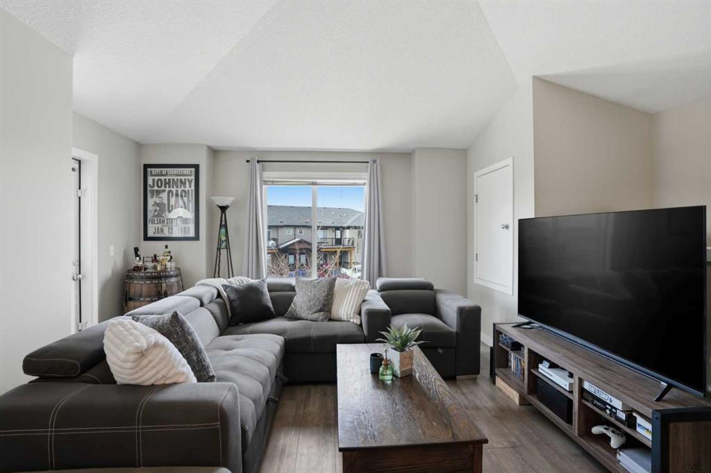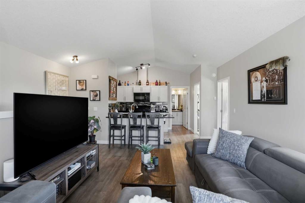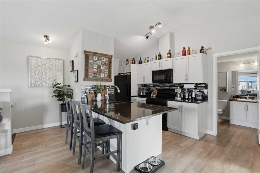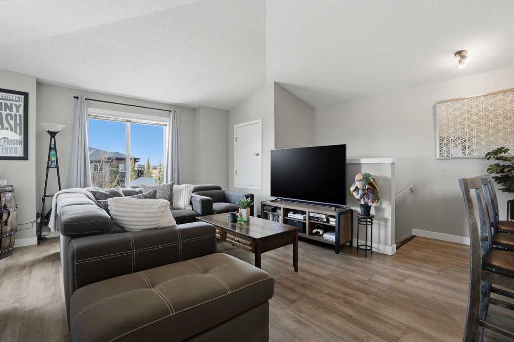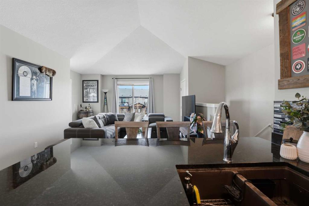 Welcome to this beautifully designed 2-storey condo offering style, space, and functionality in a prime Airdrie location—right next to Chinook Winds Regional Park! Enjoy easy access to scenic walking paths, green space, and outdoor activities all summer long. The main level foyer provides a private entrance and leads upstairs to a bright, open-concept living area featuring soaring vaulted ceilings and large windows that fill the home with natural light. The spacious kitchen is ideal for everyday living and entertaining, complete with granite countertops, black appliances, ample cabinetry, a closet pantry for extra storage, and a breakfast bar with barstool seating. The kitchen flows seamlessly into the dining and living areas, creating an inviting atmosphere. From the living room, step out onto your private balcony—perfect for BBQs and relaxing evenings. This well-appointed unit features 2 comfortable bedrooms with plush carpet and generous closet space, along with a full 4-piece bathroom. You’ll also appreciate the convenience of in-suite laundry and additional in-unit storage—perfect for seasonal items. To top it off, this home includes an assigned parking stall for added ease and convenience. Hurry and book a showing at this gorgeous home today!