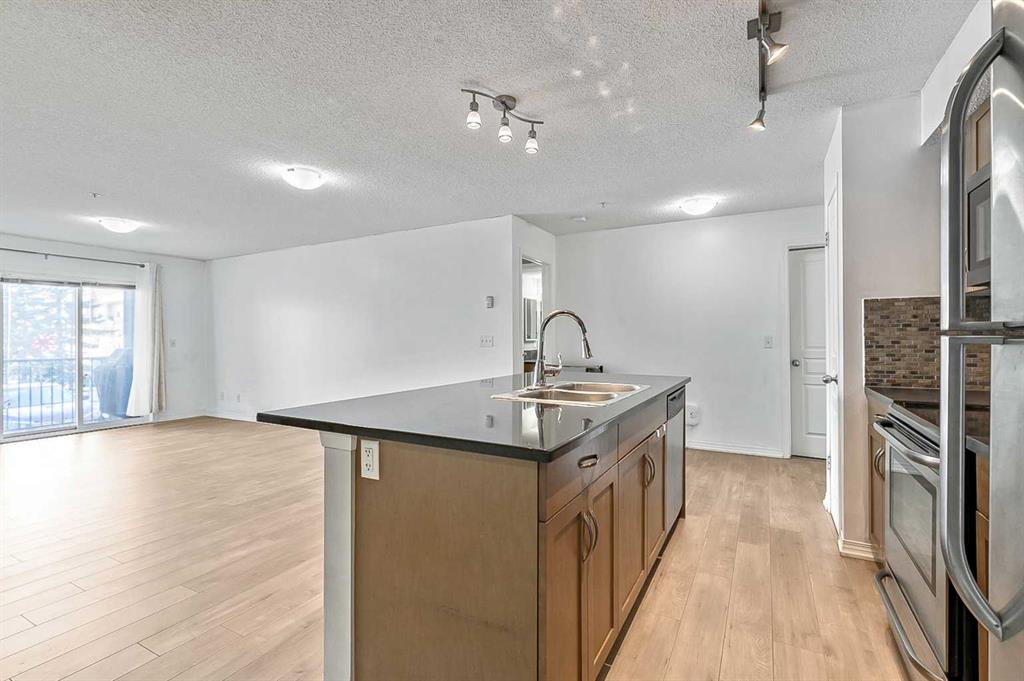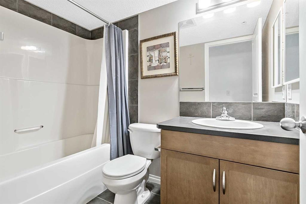 Priced to sell and move-in ready! This is one FABULOUS appointed 2 BED + DEN, 2 FULL BATH unit in a prime New Brighton location! Offering over 894 sq. ft. of bright, open-concept living, this impeccably maintained condo features a smart split-bedroom layout—perfect for roommates, guests, or anyone wanting extra privacy. The beautiful kitchen includes stainless steel appliances, cabinetry, a pantry, and a large island with granite counters and breakfast bar seating. The spacious living/dining area easily accommodates full-sized furniture and provides direct access to a private covered patio. Both bedrooms are generously sized with built-in closets and quick access to their own 4-pc bathrooms. A semi-private den offers an ideal work-from-home space. Additional highlights include in-suite laundry, in-unit storage, heated underground parking, and a separate storage locker. This well-managed building features landscaped grounds, visitor parking, and very reasonable condo fees. Located steps from countless amenities—grocery, dining, coffee shops, fitness, professional services, and the South Health Campus. Move-in ready and perfectly located—don’t miss this exceptional unit!