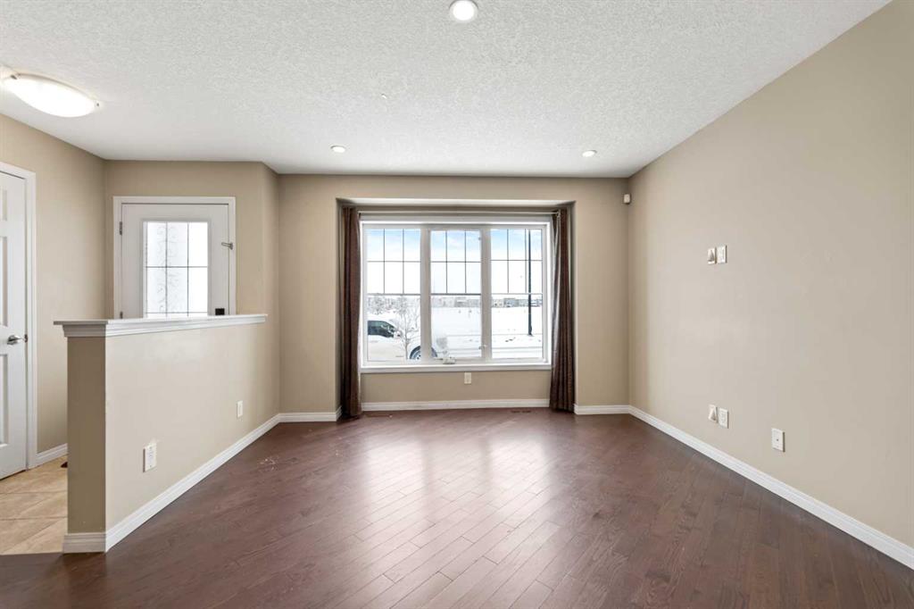 Step into comfort and convenience in this lovely 2-storey townhouse located in the vibrant community of Cityscape. With no condo fees and a rare oversized double attached garage, this home offers everything a growing family or young couple needs. The welcoming main floor features warm hardwood flooring and a bright living room filled with morning sunshine from its east-facing windows. The kitchen is thoughtfully designed with plenty of cabinetry, granite counters, a gas stove, and a stainless steel fridge—perfect for everyday cooking and entertaining. Upstairs, both bedrooms are generously sized, bright, and each comes with its own walk-in closet and full 4-piece ensuite bathroom—an ideal setup for comfort and privacy. The high-efficiency furnace was replaced in 2019, giving you peace of mind for years to come. The unfinished basement is a blank canvas, ready for your personal touches, with plumbing already roughed in for a future half bath. Step outside to a large private balcony equipped with a natural gas line, perfect for BBQ nights and enjoying warm summer evenings. Families will appreciate having a playground right in front of the home and easy walkability to bus stops, nature trails, and scenic pathways. With quick access to major routes, shopping, Costco, the airport, and CrossIron Mills, this is a place where convenience meets comfort. The home is vacant and available for immediate possession.