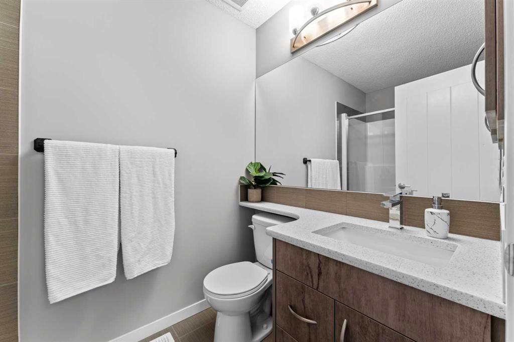 Welcome to this gorgeous 3-bedroom, 2.5-bathroom townhome in the vibrant and family-friendly community of Nolan Hill. This beautifully maintained home offers the perfect blend of comfort, functionality, and modern design. The entry level features a versatile flex room, ideal for a home office, gym, or den, along with convenient access to the double attached garage. Upstairs, you’ll find a bright open-concept main floor with 9-foot ceilings, abundant natural light, and elegant laminate flooring throughout. The modern kitchen showcases stainless steel appliances, quartz countertops, ceiling-height cabinetry, and a large island—perfect for cooking and entertaining. The dining and living areas flow seamlessly to your private balcony with a gas BBQ hookup, ideal for relaxing evenings. Upstairs, the primary suite offers a spacious walk-in closet and a beautiful ensuite featuring dual sinks and a glass shower. Two additional bedrooms, a full bath, and convenient upper-floor laundry complete the level. This well-managed complex boasts durable Hardie Board and stone exteriors, lovely landscaped common areas, and ample visitor parking. Enjoy nearby parks, playgrounds, walking paths, and close proximity to shopping, restaurants, and major routes including Stoney Trail, Sarcee Trail, and Shaganappi Trail. Stylish, functional, and move-in ready—this townhome offers an exceptional opportunity to live in one of Calgary’s most desirable northwest communities. Book your showing today!