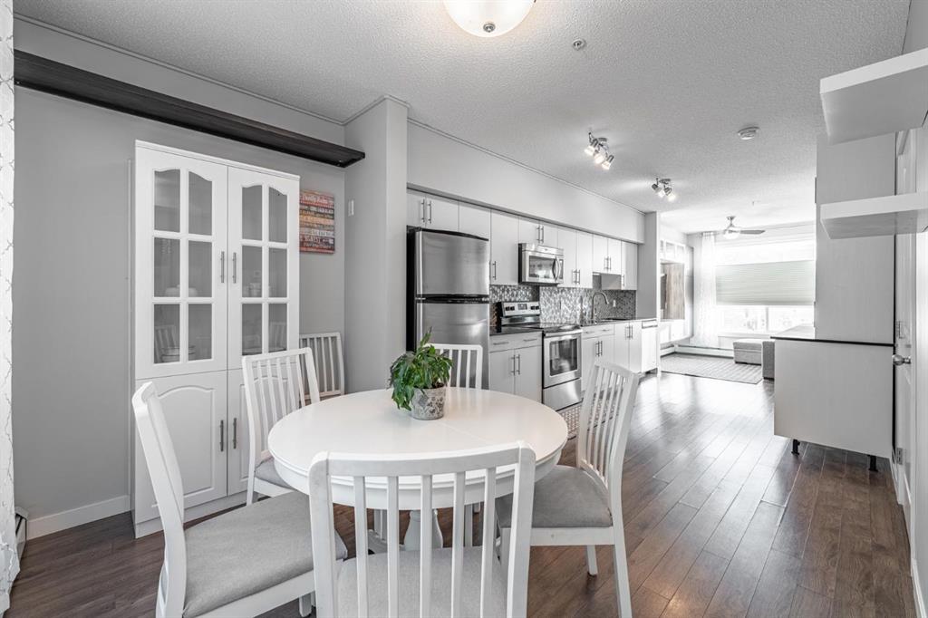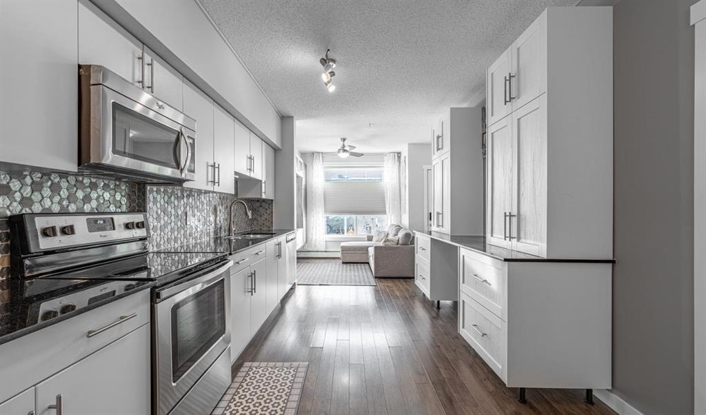 Welcome to this well kept townhome style condo in Mount Pleasant. It sits on a quiet, tree lined street with quick access to SAIT, the CTrain, Kensington, Confederation Park, Riley Park, restaurants, coffee shops and everything else the area is known for. The main floor feels open and bright with large windows and a clean modern look. The kitchen has quartz counters, stainless steel appliances and plenty of cabinet space, and it flows nicely into the living and dining areas. The unit also has air conditioning which is a huge bonus in the summer. You have a front patio for morning coffees and a private back patio for grilling or relaxing. The upper floor has a spacious bedroom and a large loft area. The loft is big enough to use as an office, workout space, guest area or anything else you need. A full four piece bathroom and laundry are also upstairs. The building is well managed and has a central courtyard along with titled underground parking and visitor parking. A comfortable home in a great location with flexible space and modern conveniences. Come see it in person.